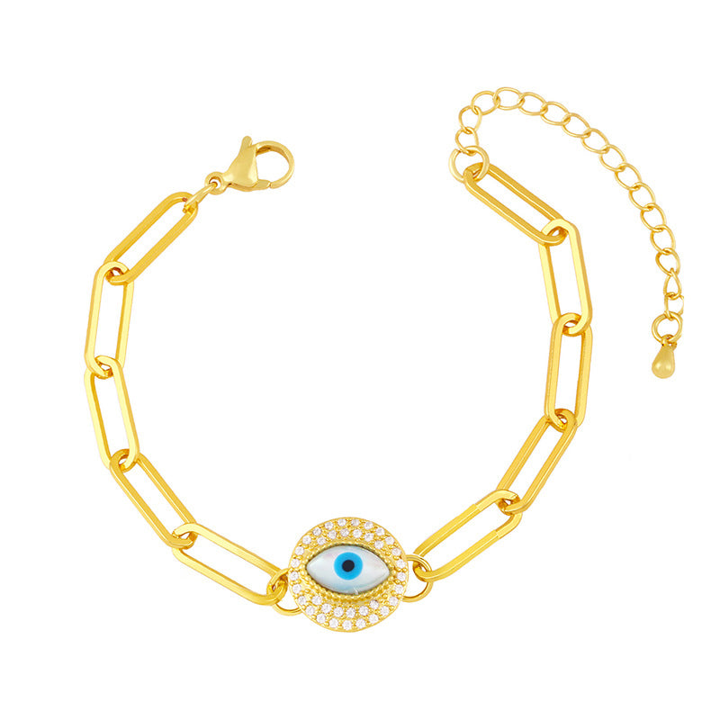 Pulsera de cadena con circonitas y forma de ojo B3193