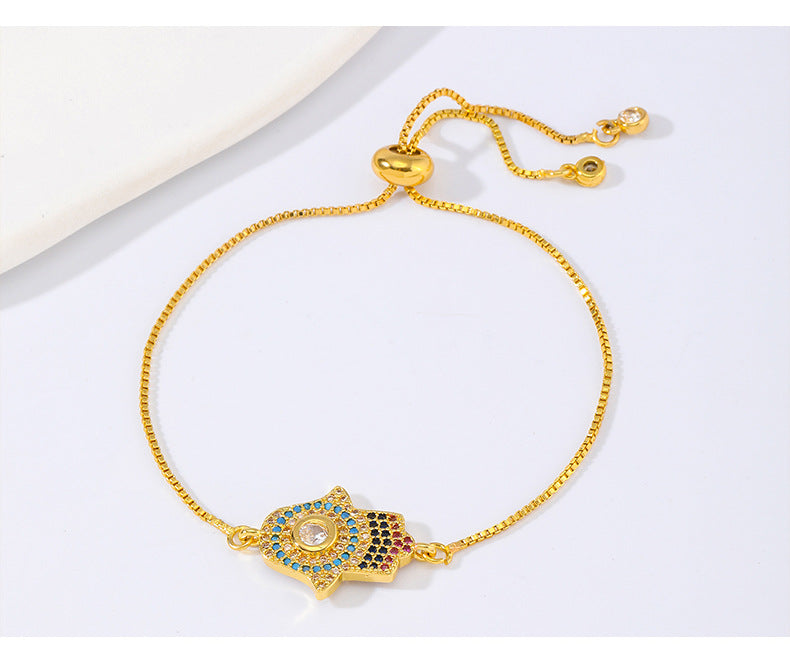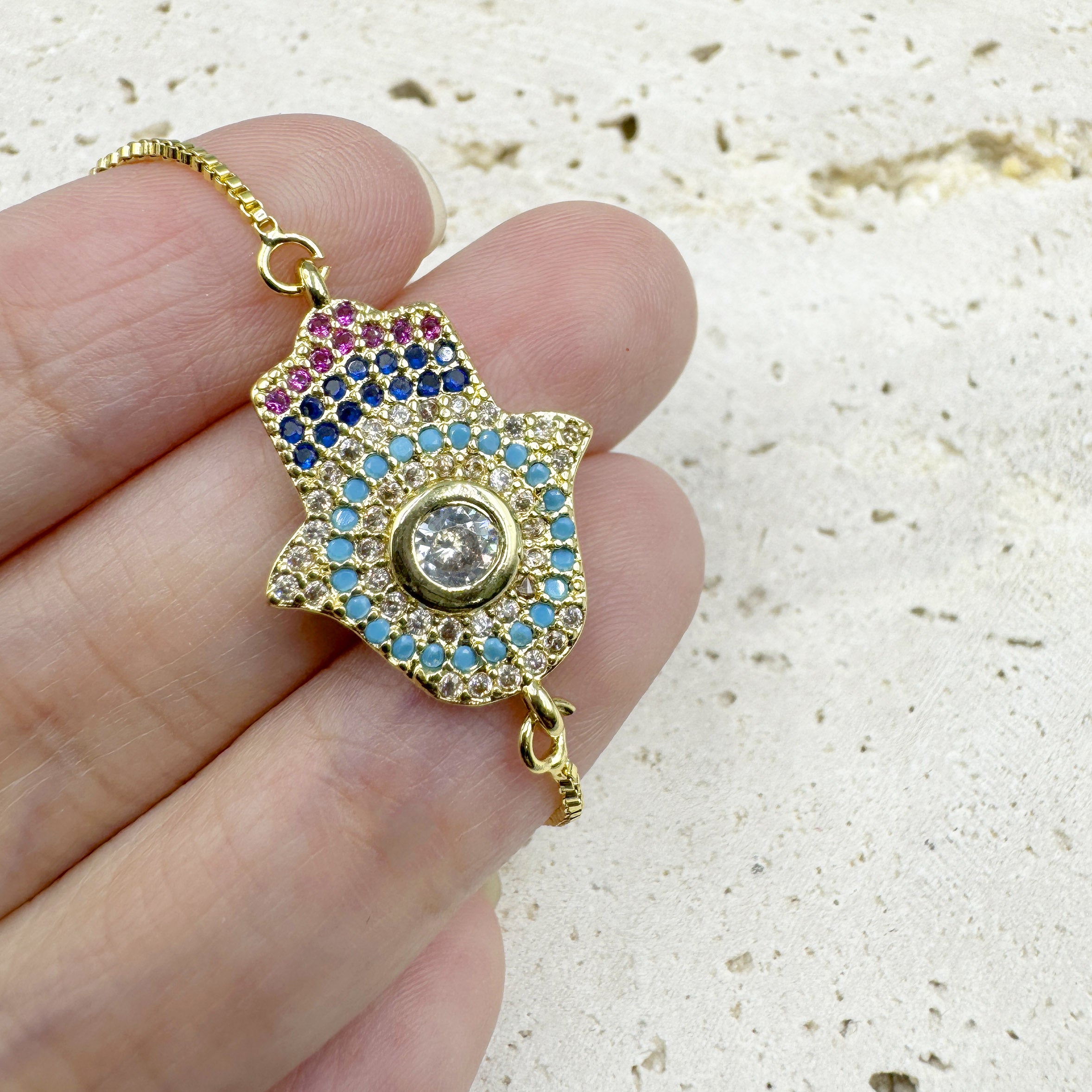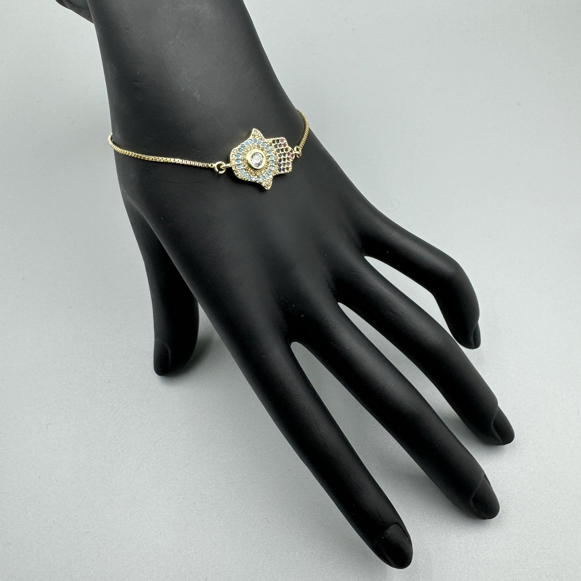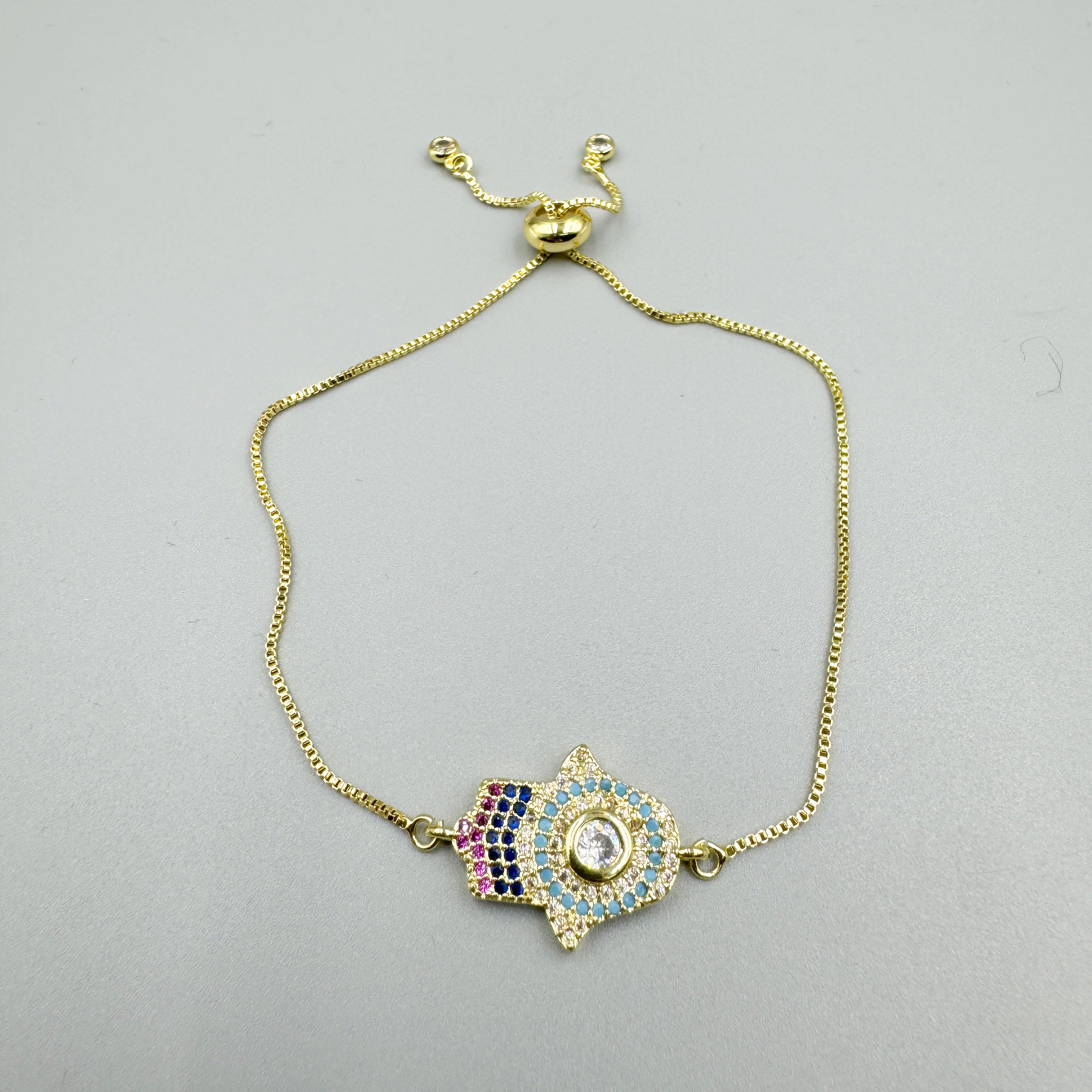 Pulsera de cadena de circonitas cúbicas con palma de Fátima B4102