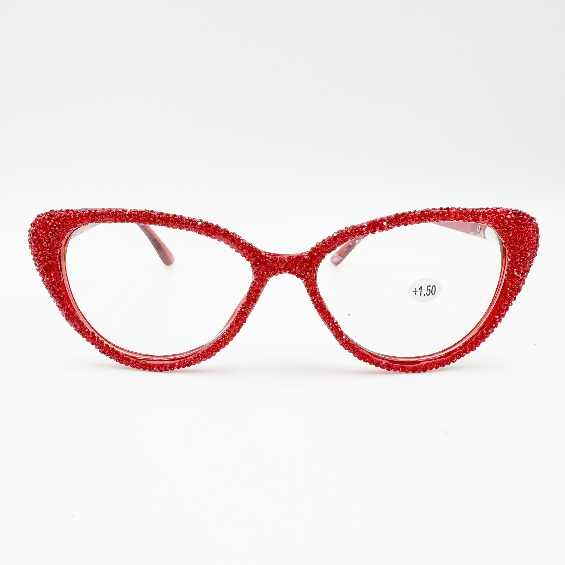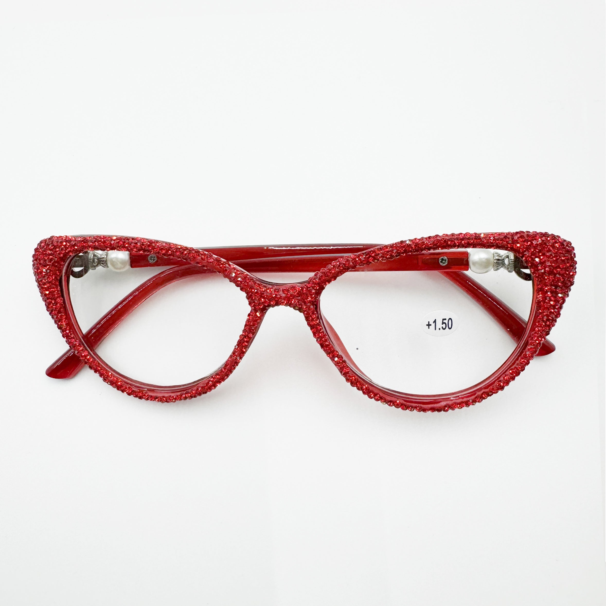 Handmade Rhinestone Cat Eye Reader AG10399 - Red
