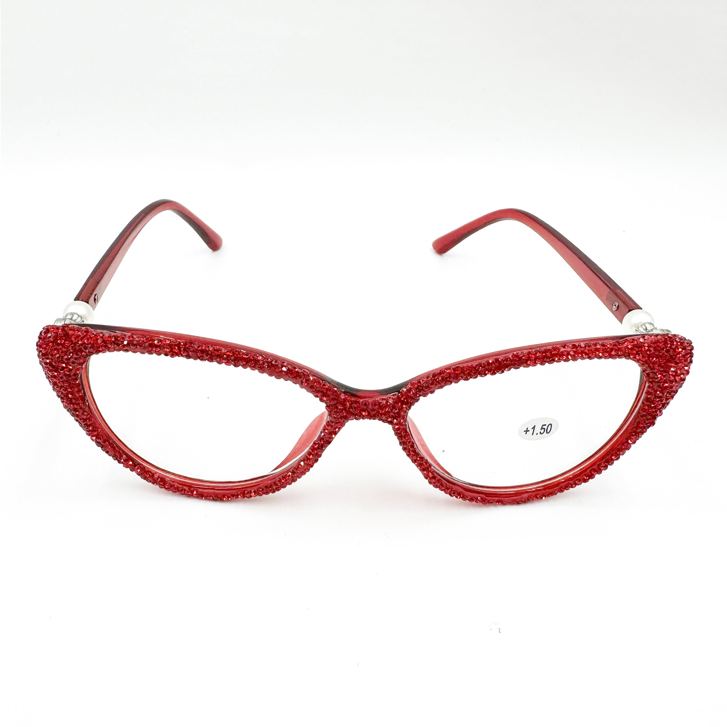 3. Handmade Rhinestone Cat Eye Reader AG10399 - Red
