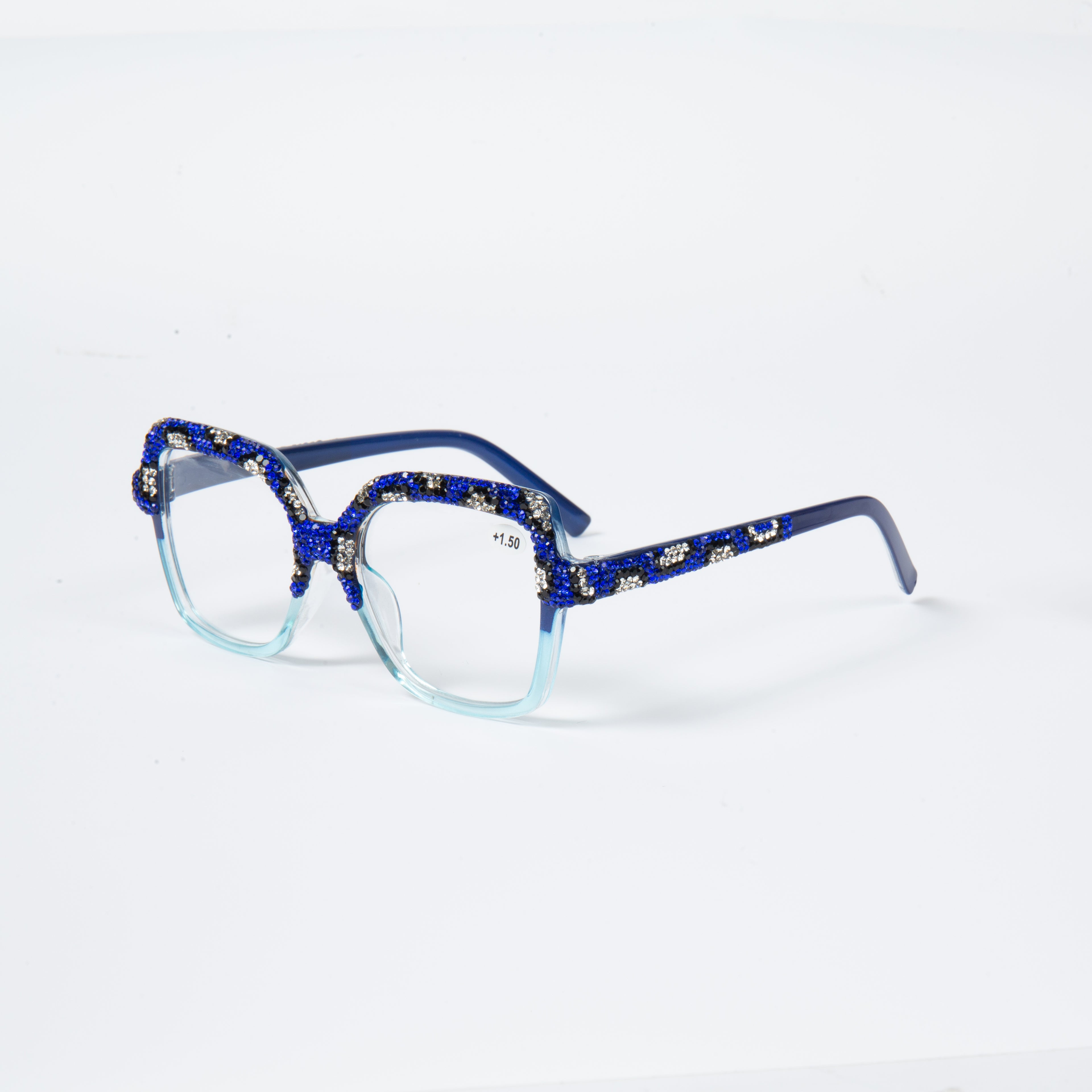 Handmade Rhinestone Rectangle Reader Glasses G0566 - Blue