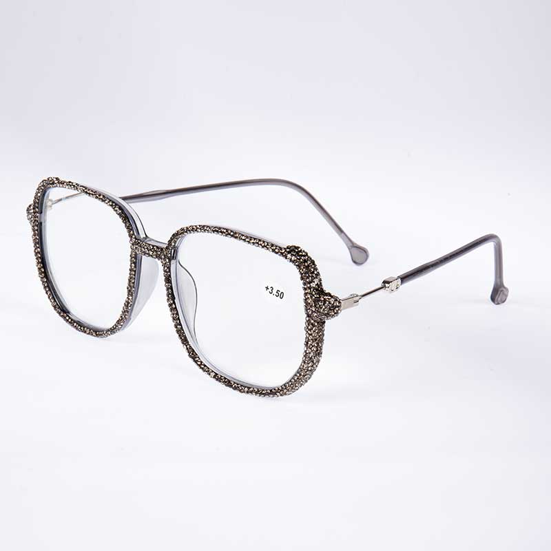 Gafas de lectura redondas con diamantes de imitación hechas a mano G0468-GY