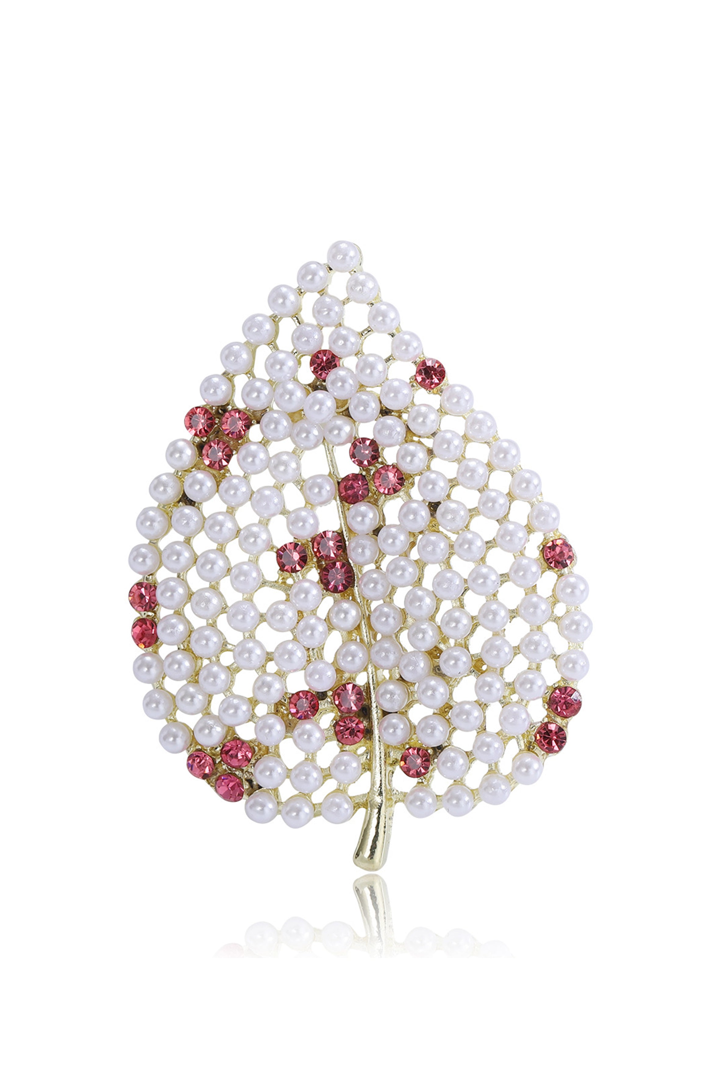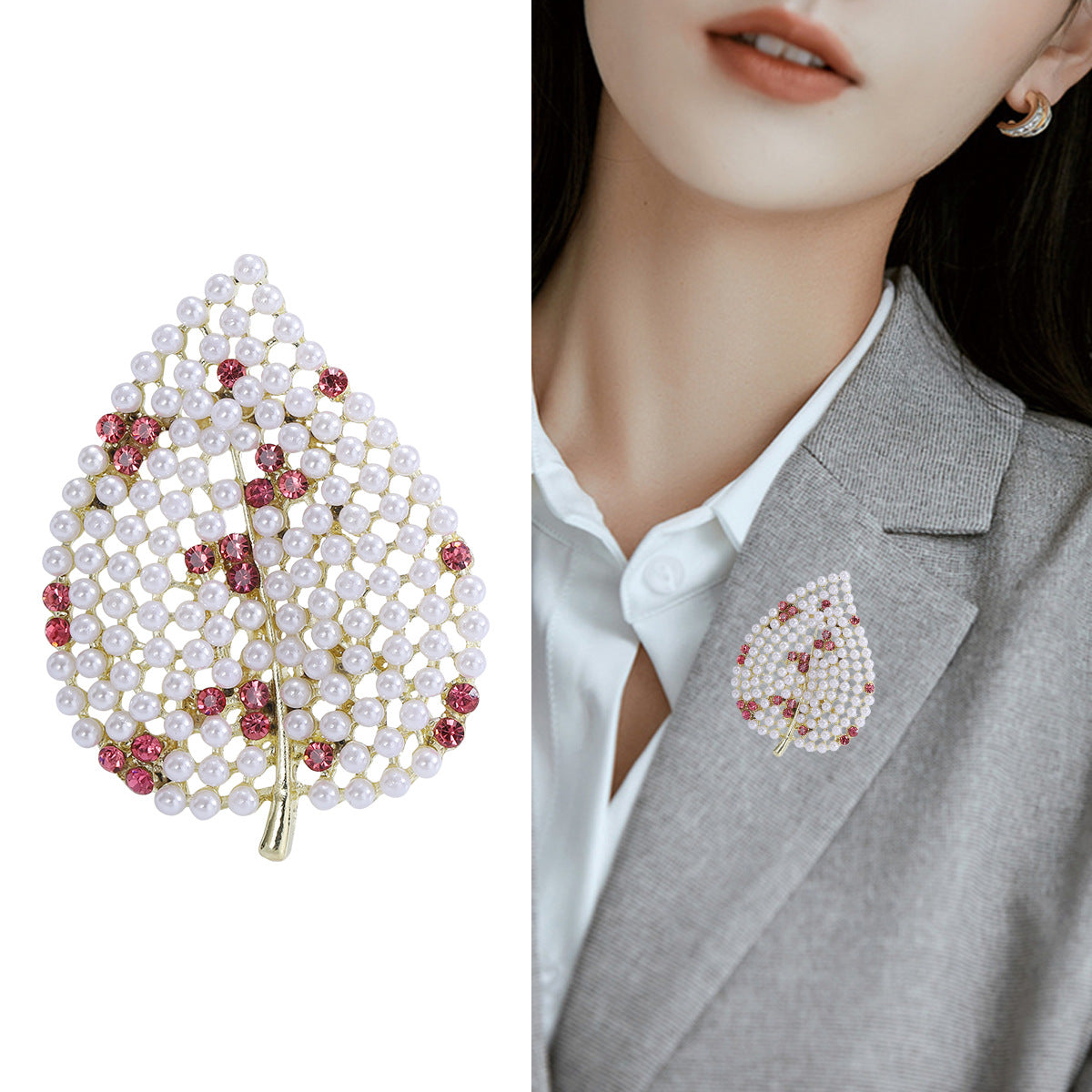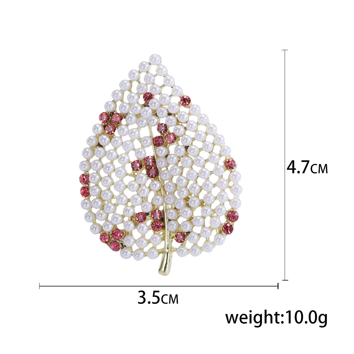 Broche de hoja con diamantes de imitación y perlas PA4908