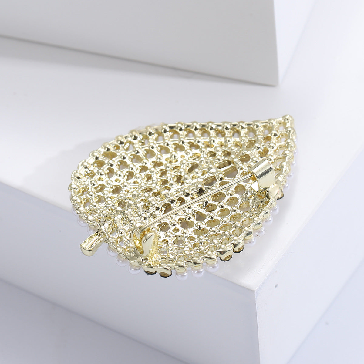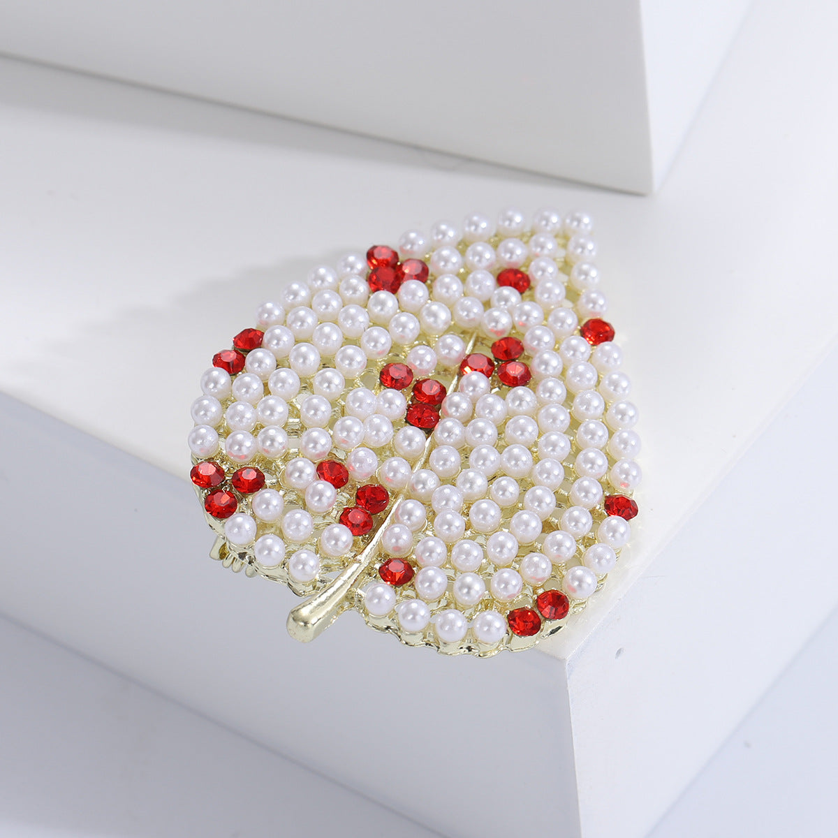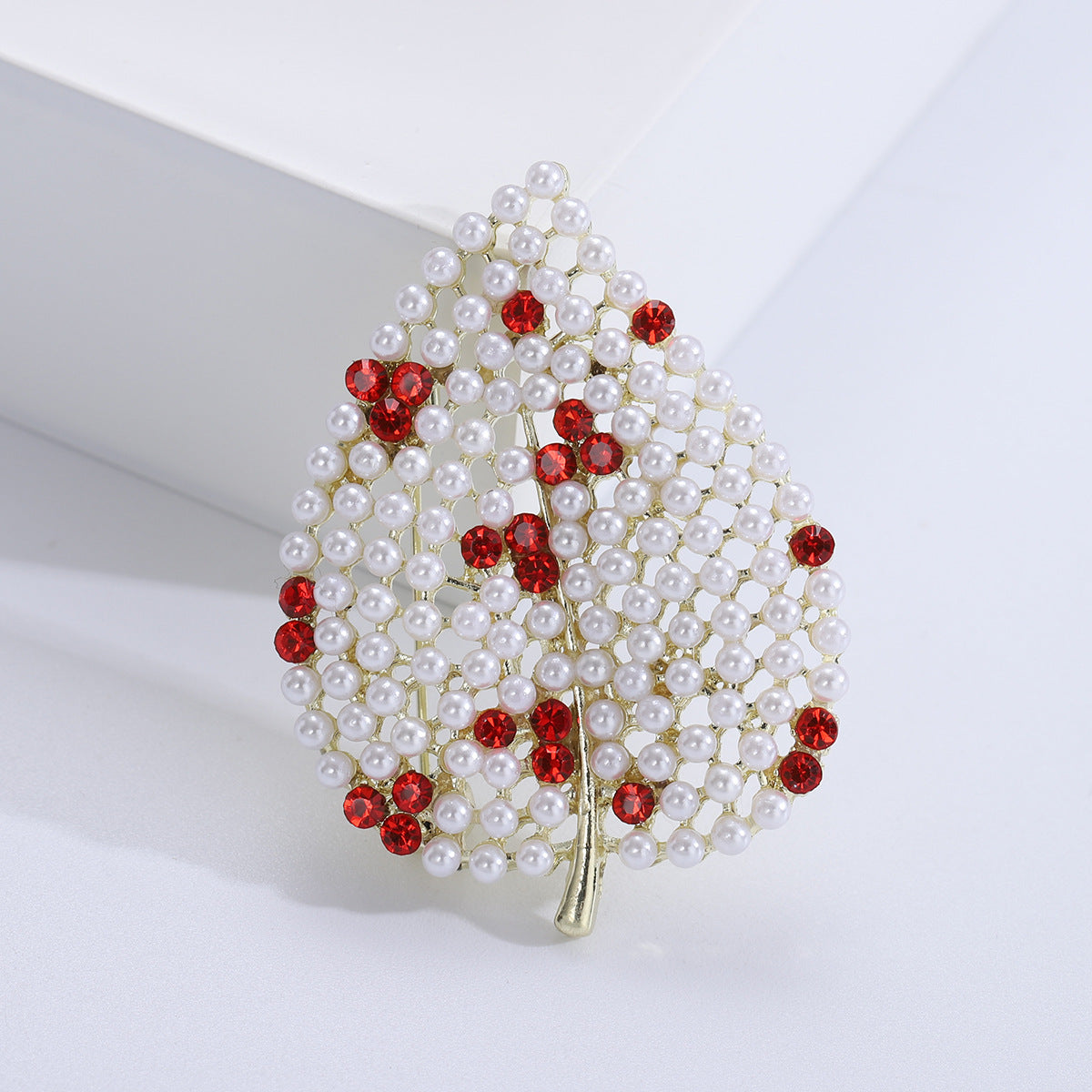 Broche de hoja con diamantes de imitación y perlas PA4908