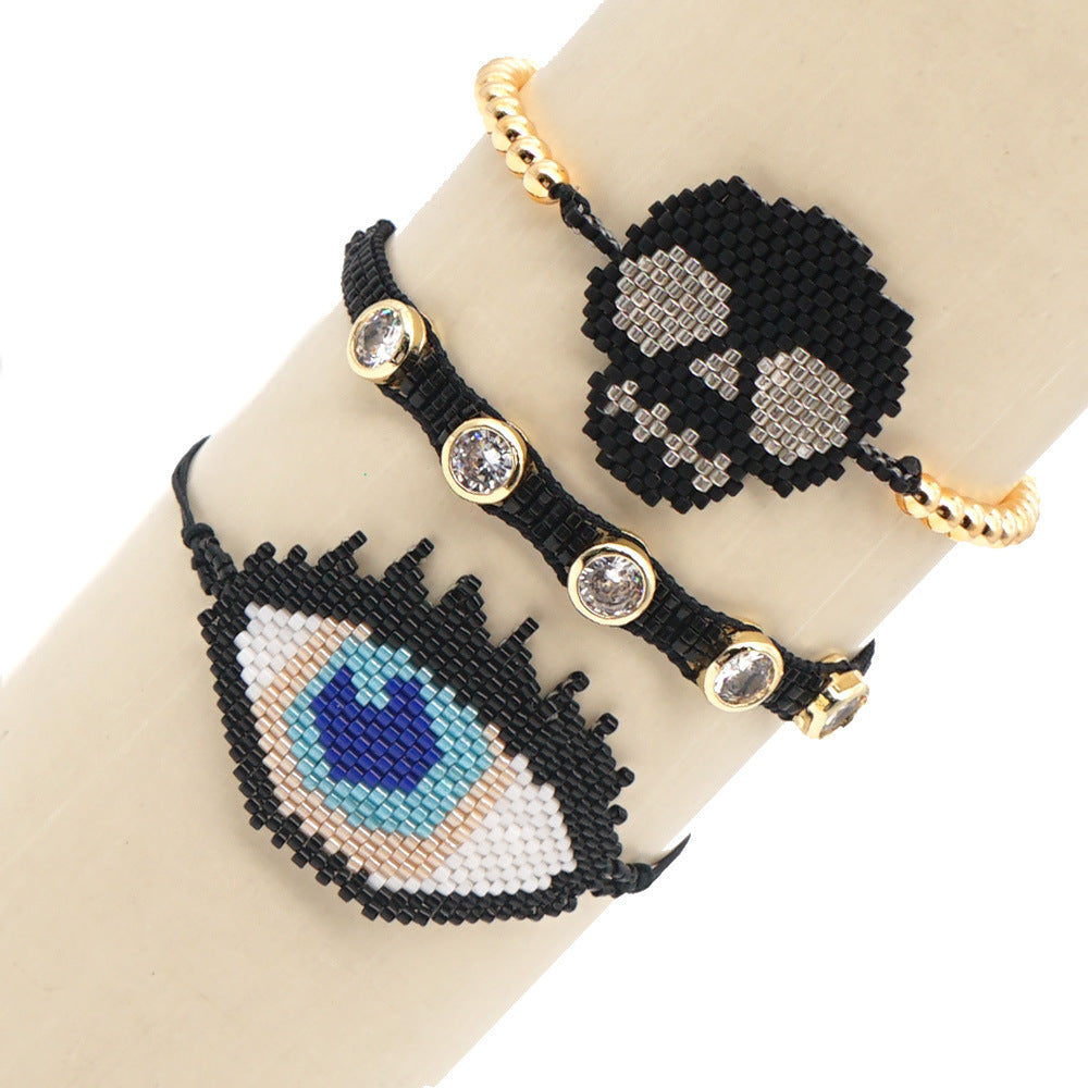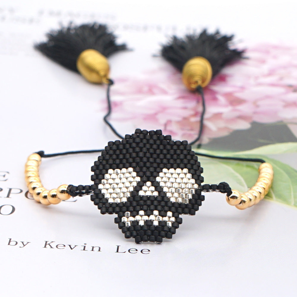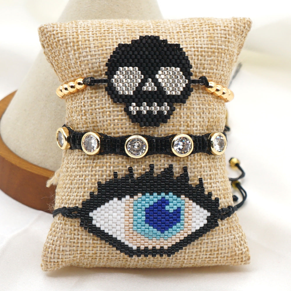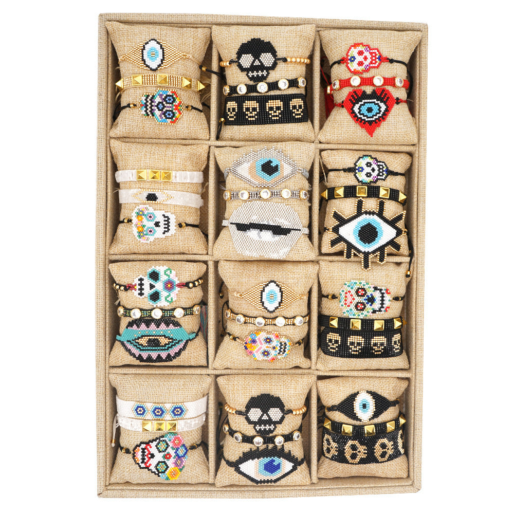 Pulseras trenzadas de semillas de calavera B2296