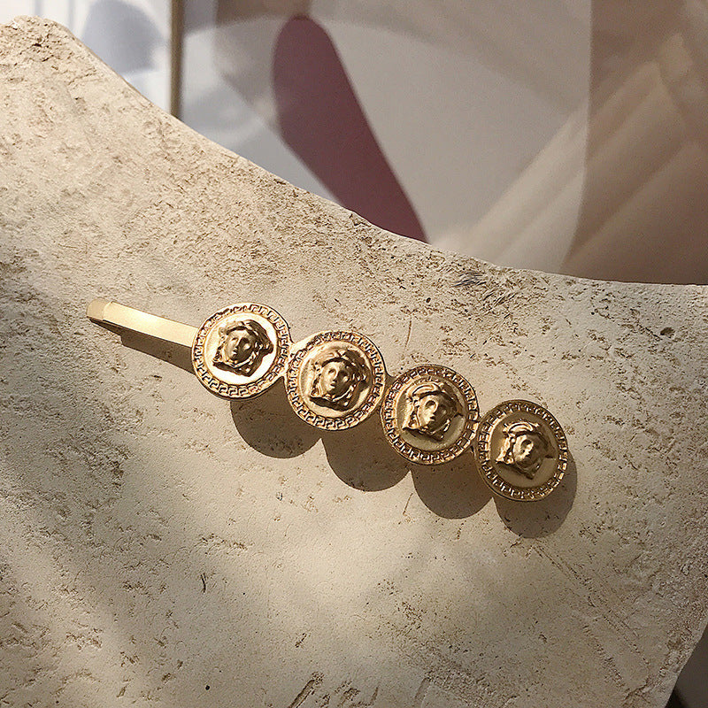 Pinza para el pelo de aleación con forma de moneda y retrato L3262