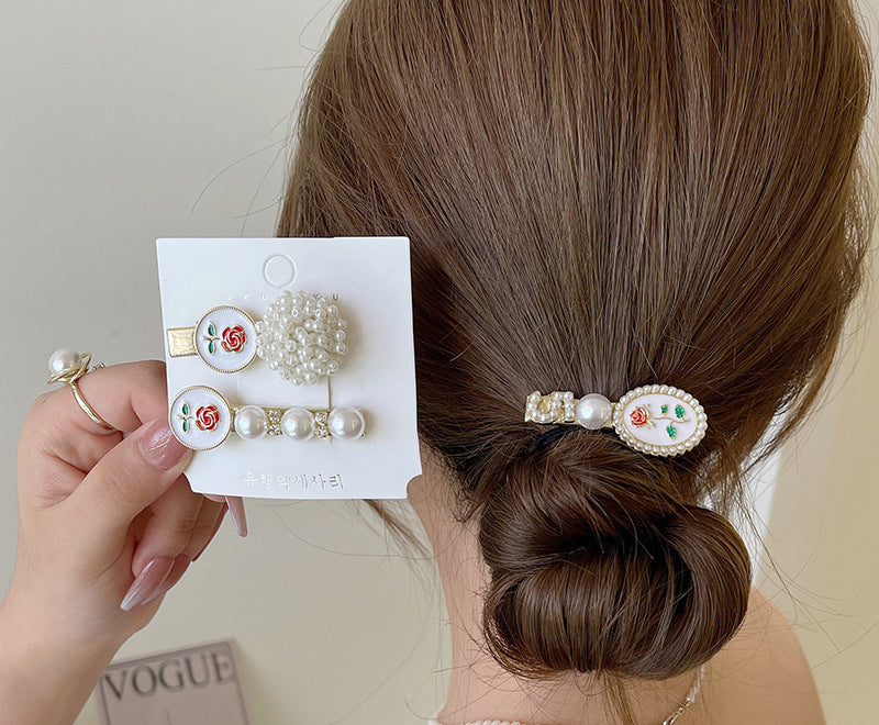 ¡Dale vida a tu peinado con la pinza para el cabello Rose Pearl L3415 hecha de una aleación divertida y acabado perlado!