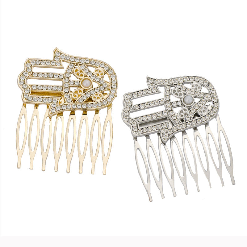 Horquilla de pelo con diamantes de imitación y palma de Fátima L2594