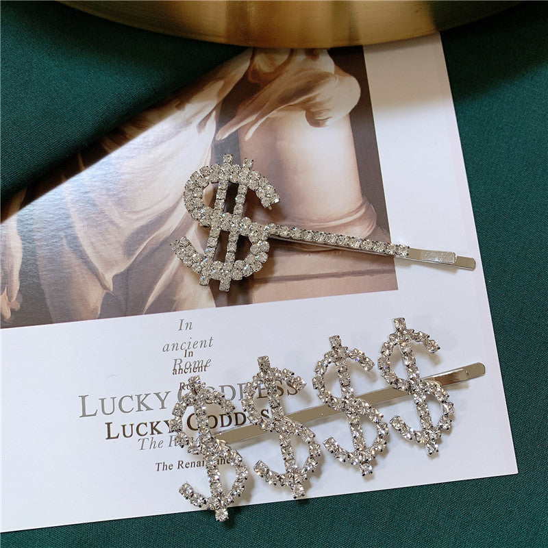 Pinza para el pelo con diamantes de imitación en forma de dólar L2755