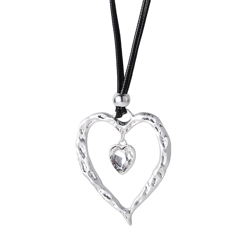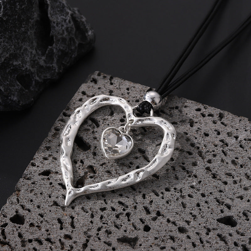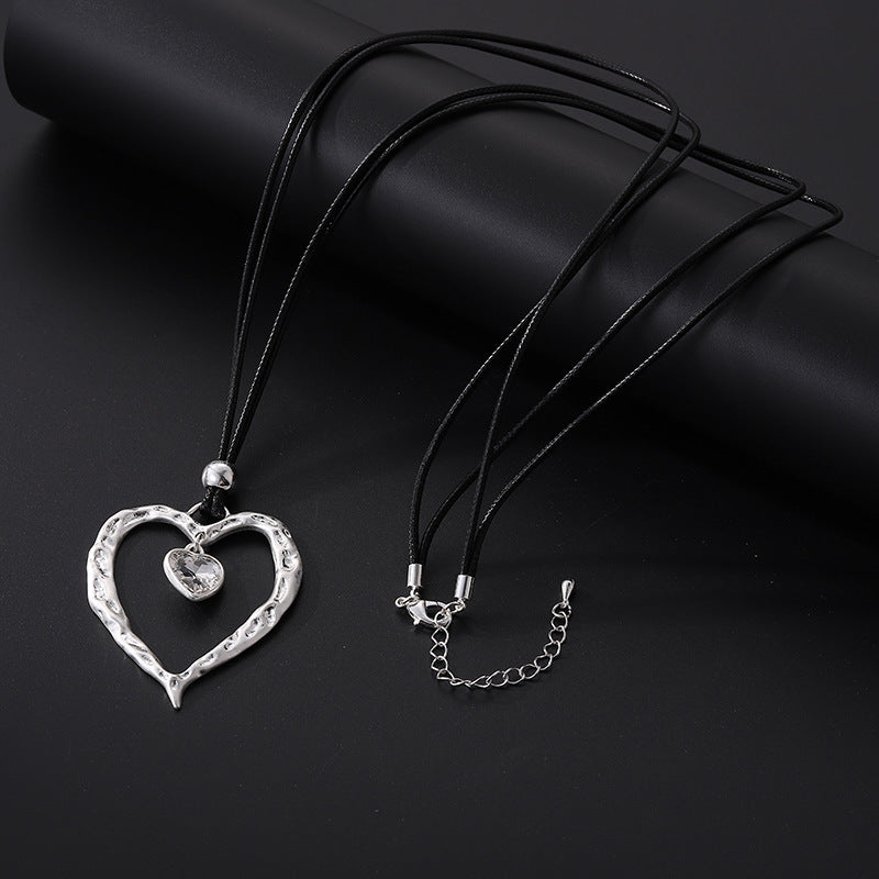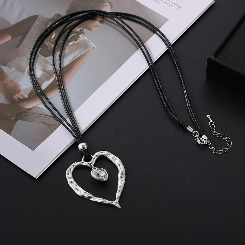 Gargantilla gruesa con colgante de corazón grande, collar largo negro para mujer, joyería de moda