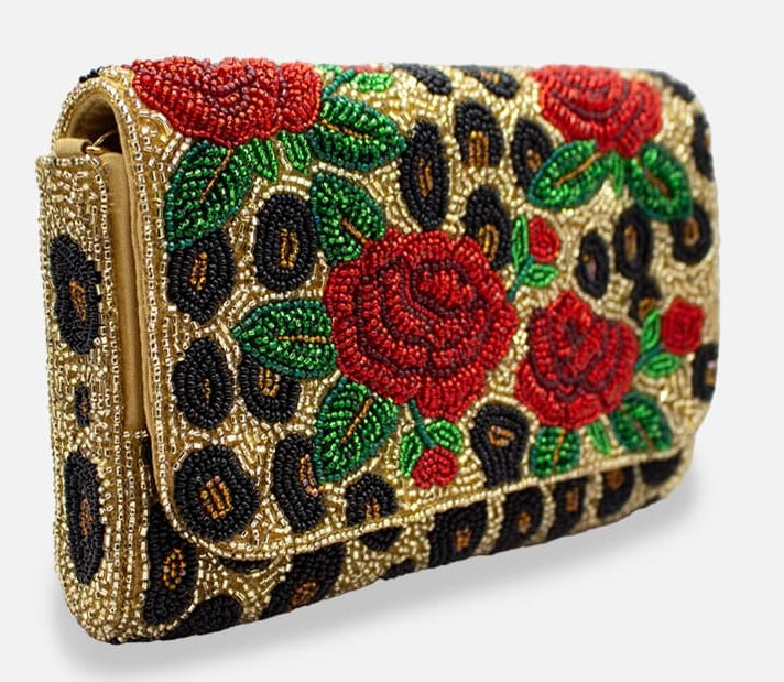 Rose Leopard Beaded Rectangular Mini Clutch LAC-SS-938