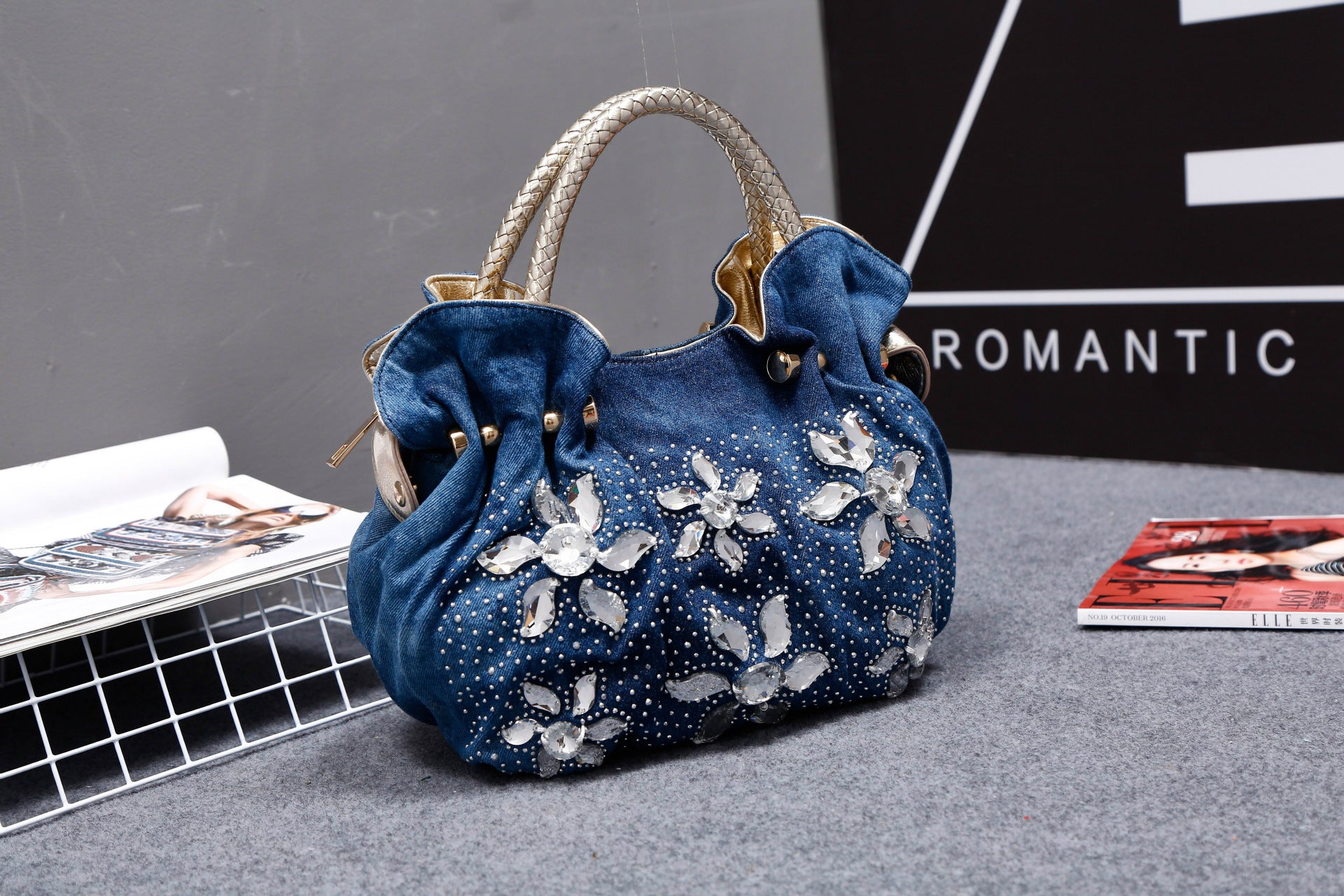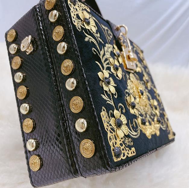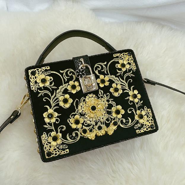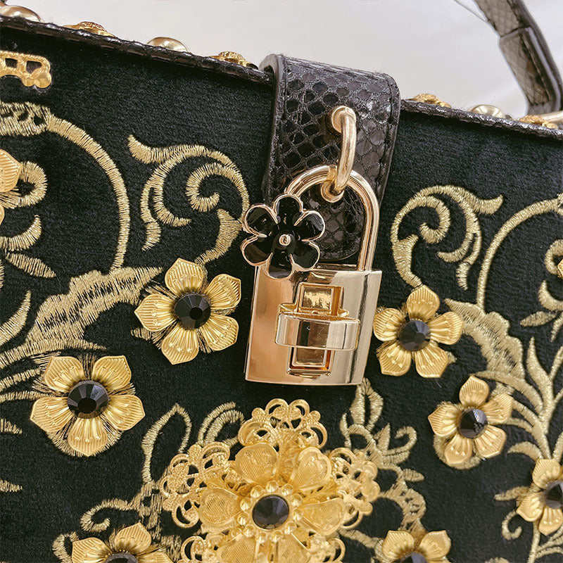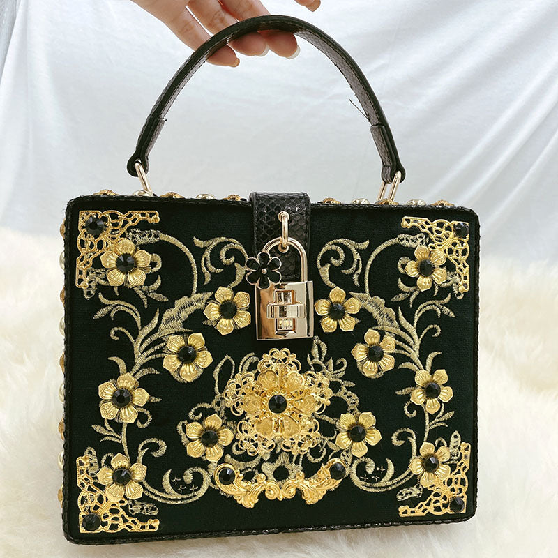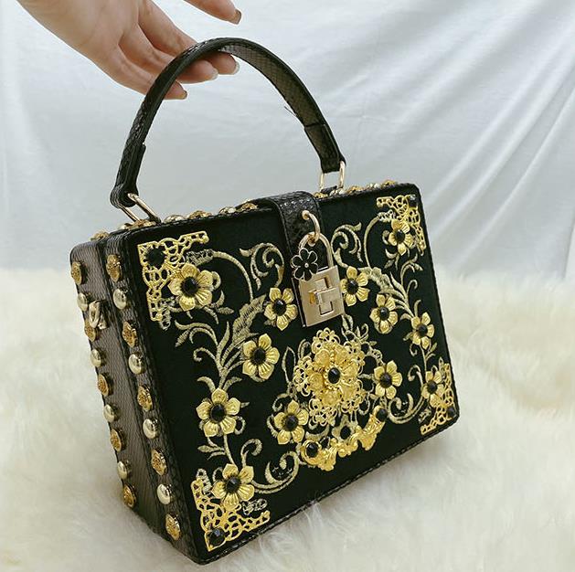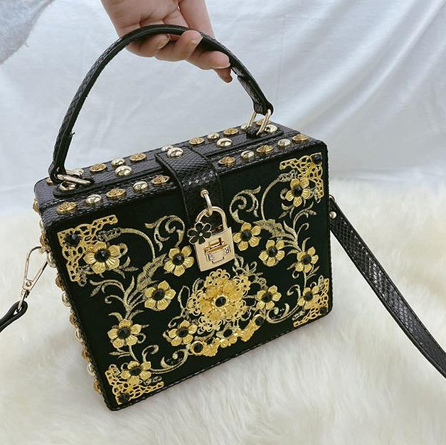 Bolso de mano con hebilla de metal y piel sintética con diseño de flores HB0647