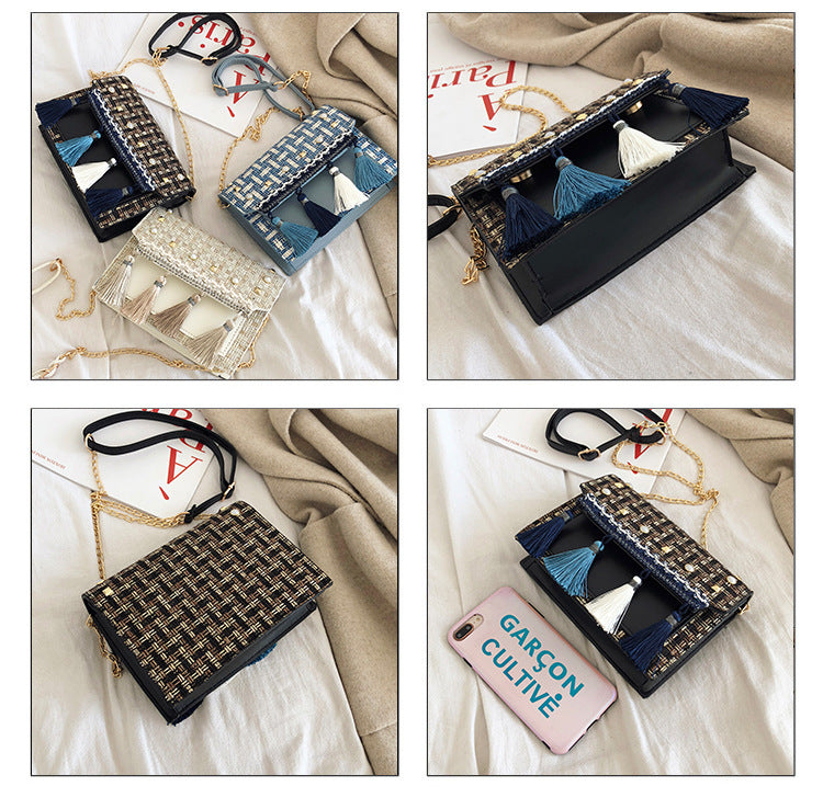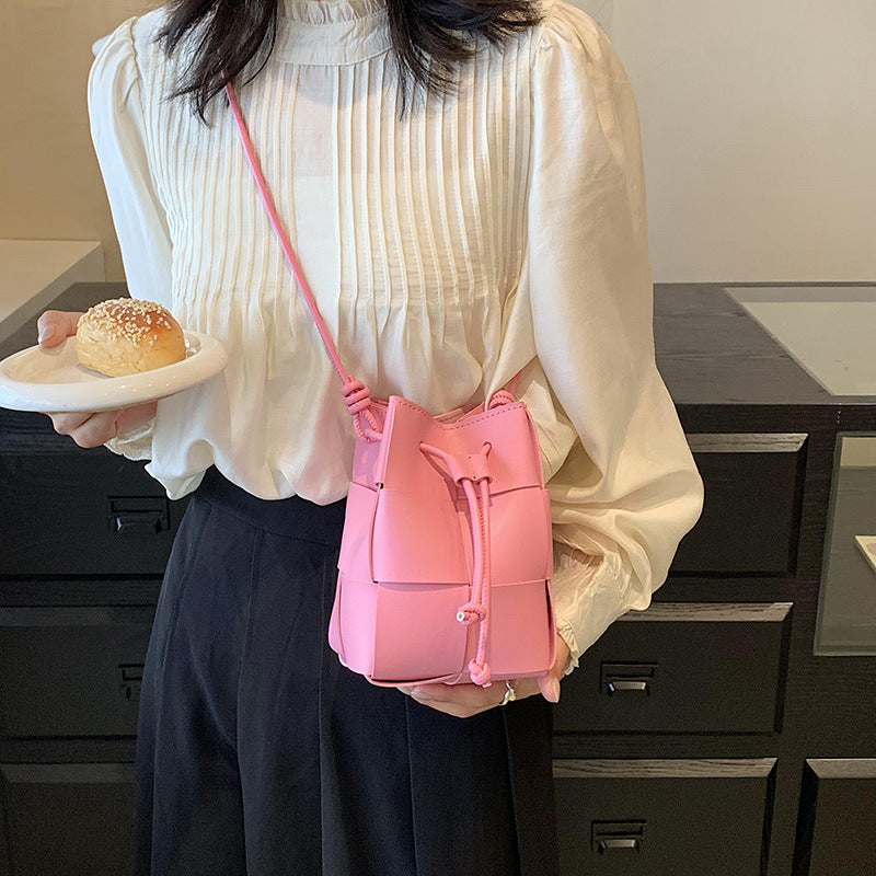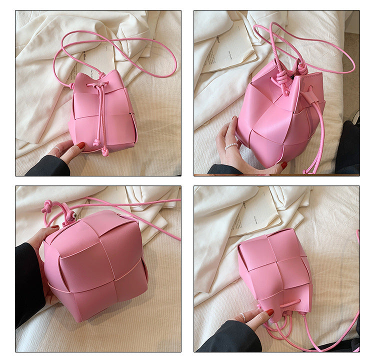 Bolso tipo cubo de poliuretano trenzado HB2645