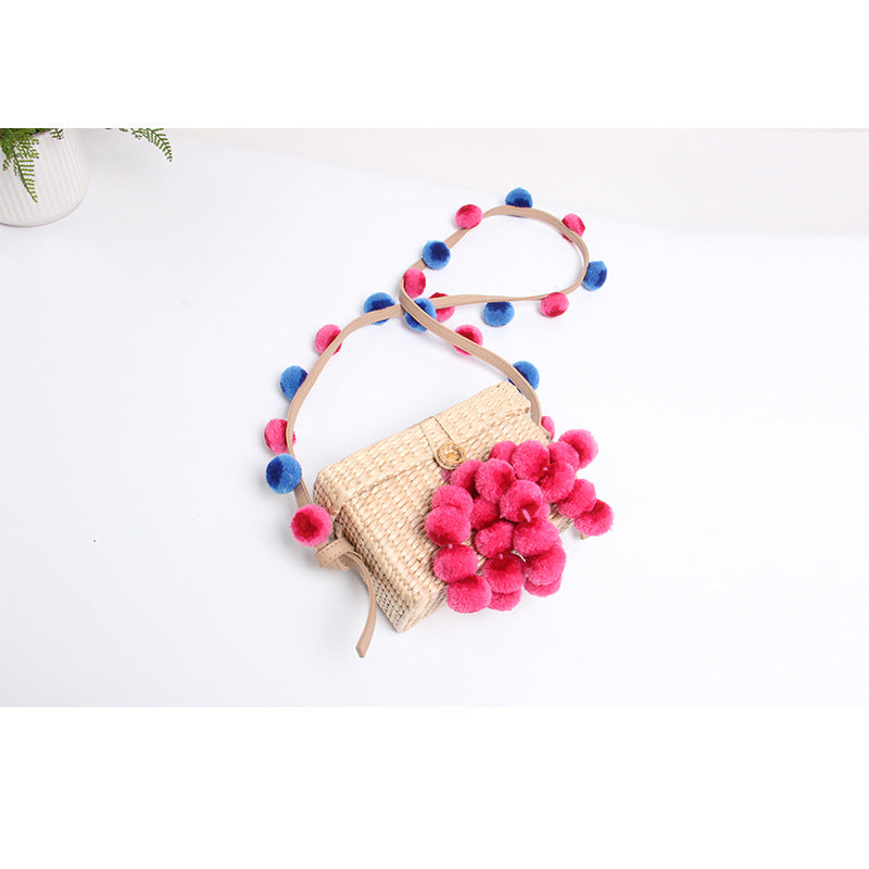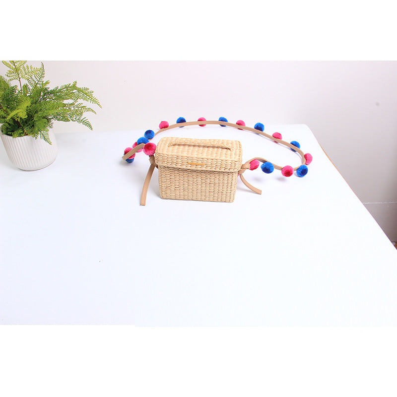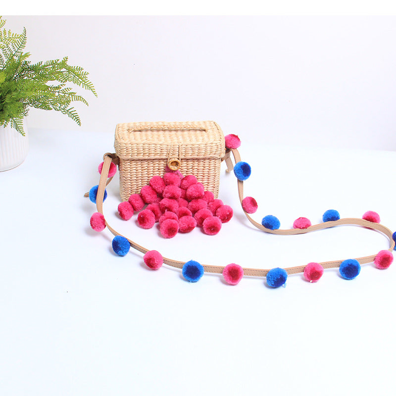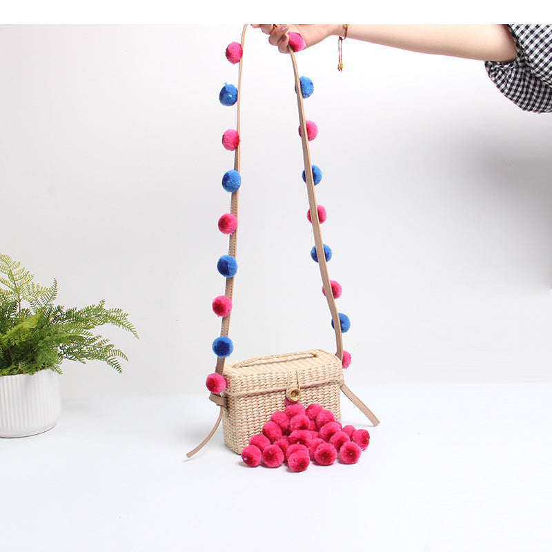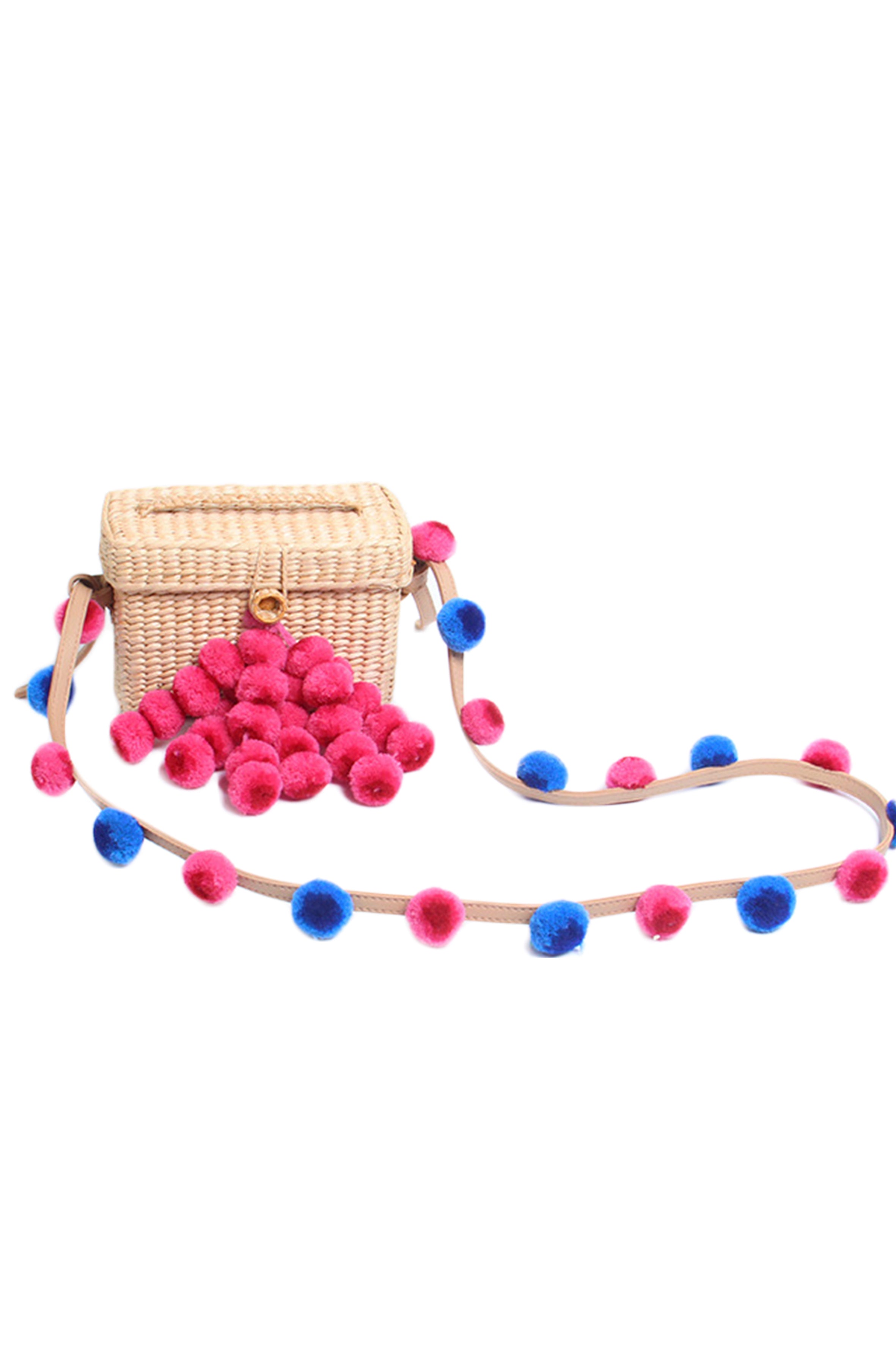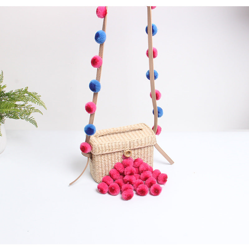 Bolso bandolera tipo caja con pompón de paja HB2178