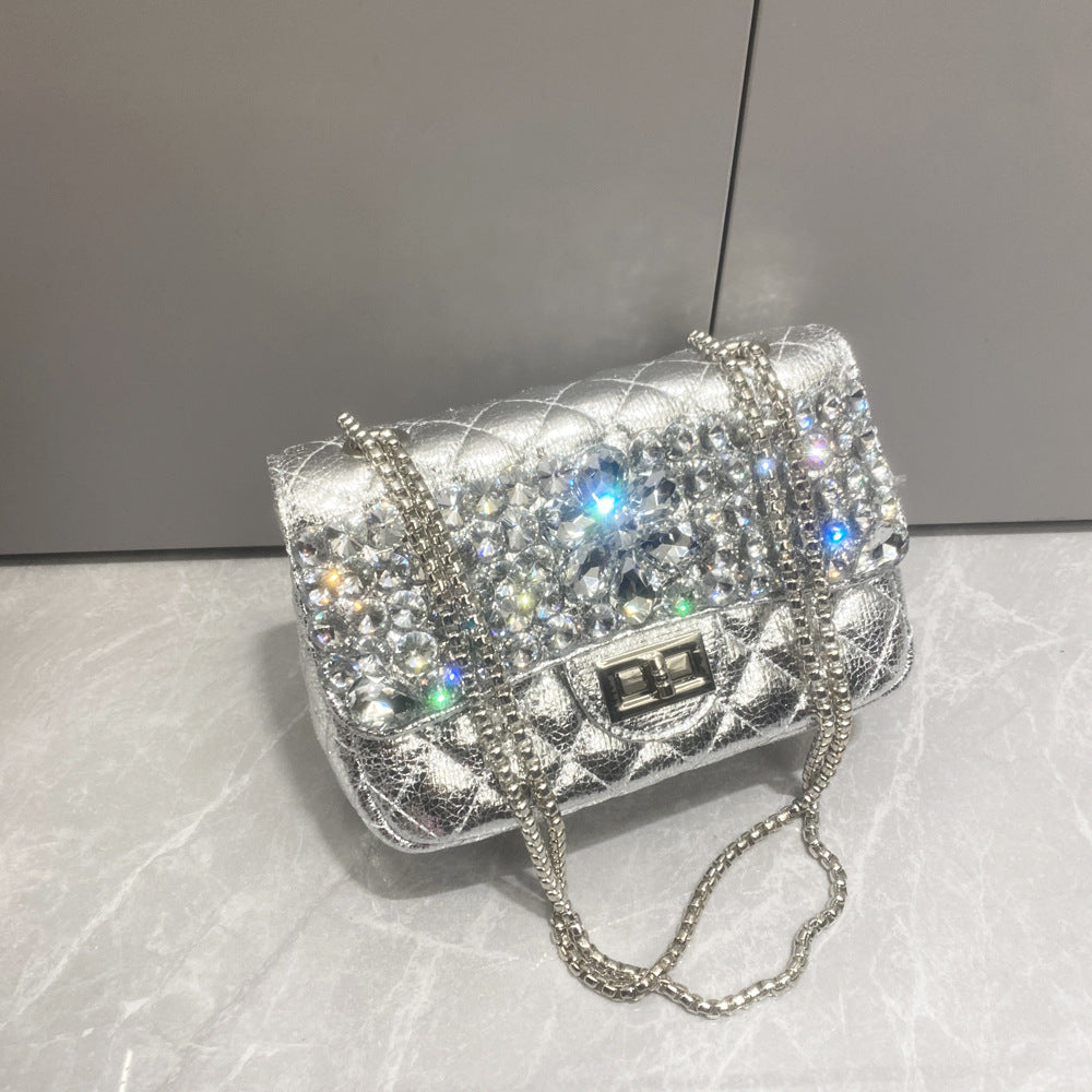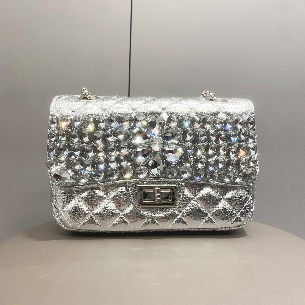Bolso bandolera de piel sintética con diamantes de imitación y rombos HB2554