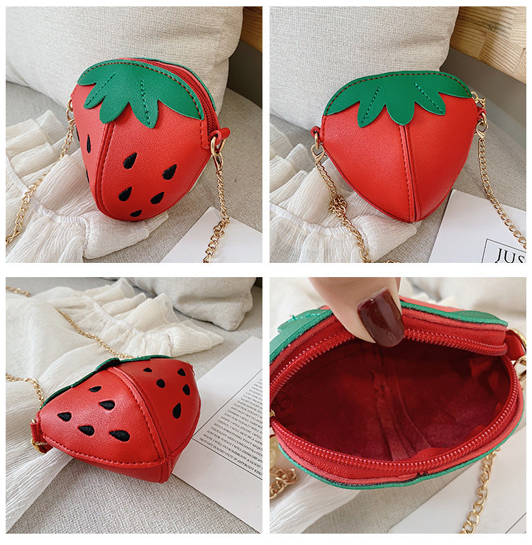 Bolso bandolera infantil de poliuretano con diseño de fresa HB2494