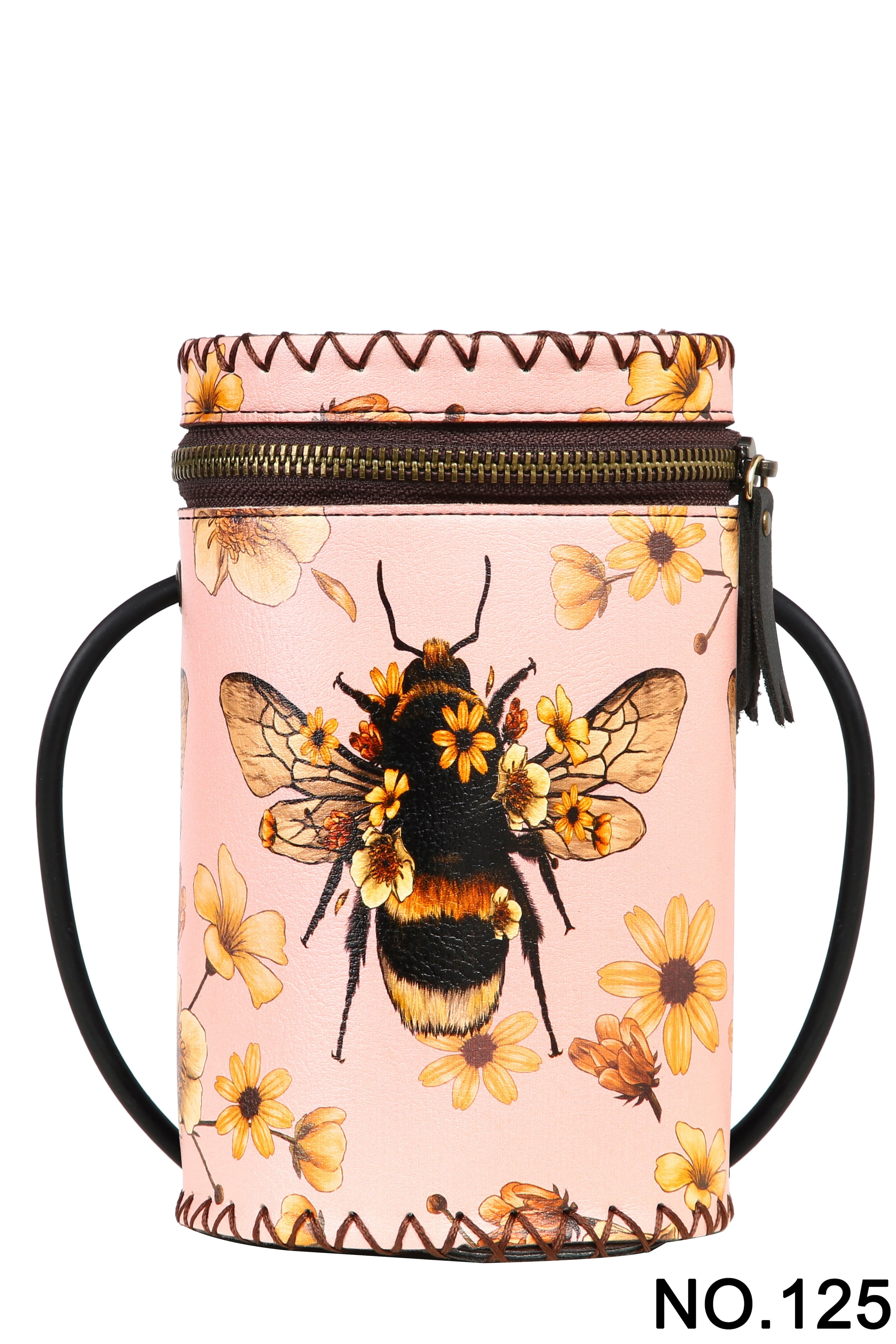 Bolso cilíndrico de piel con estampado de abejas HB1622 - N.º 125PK