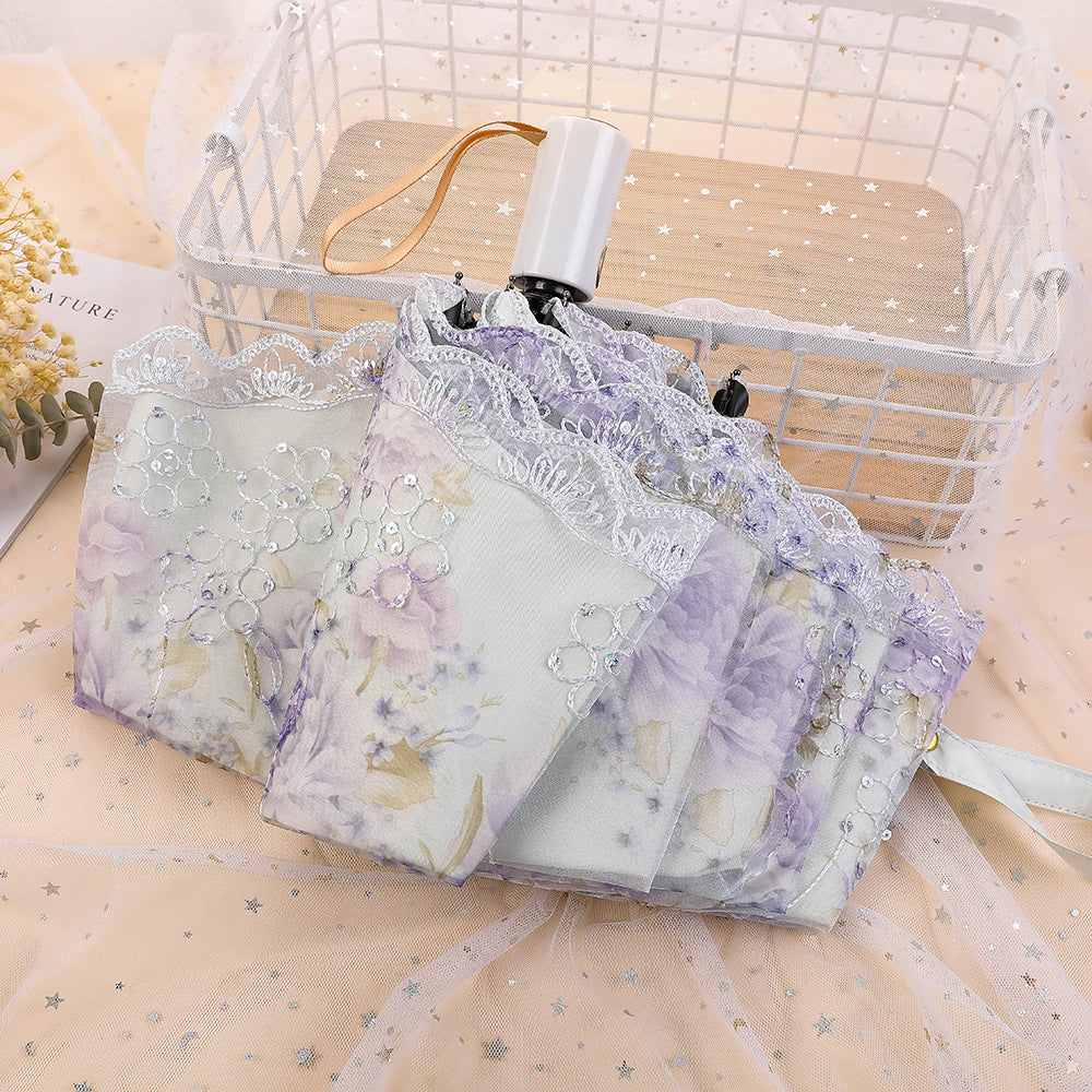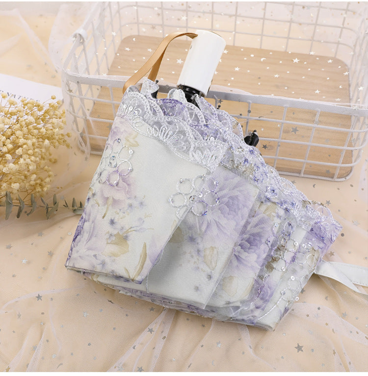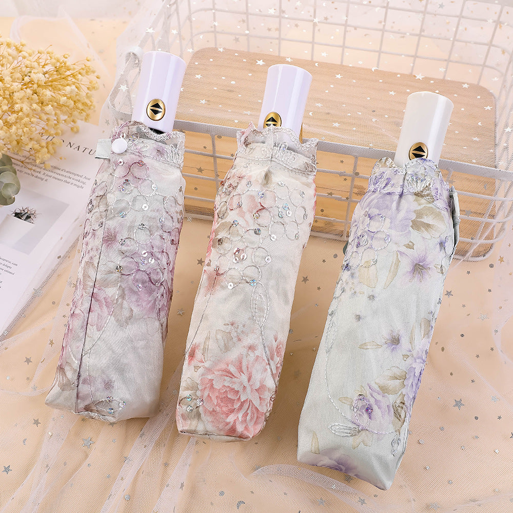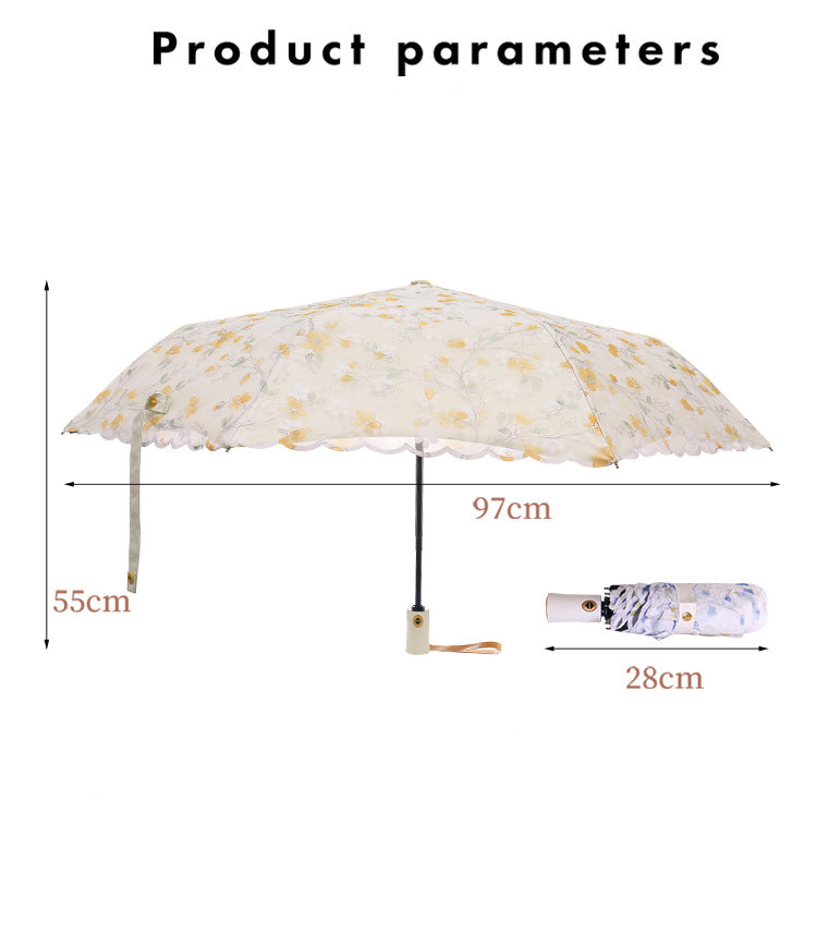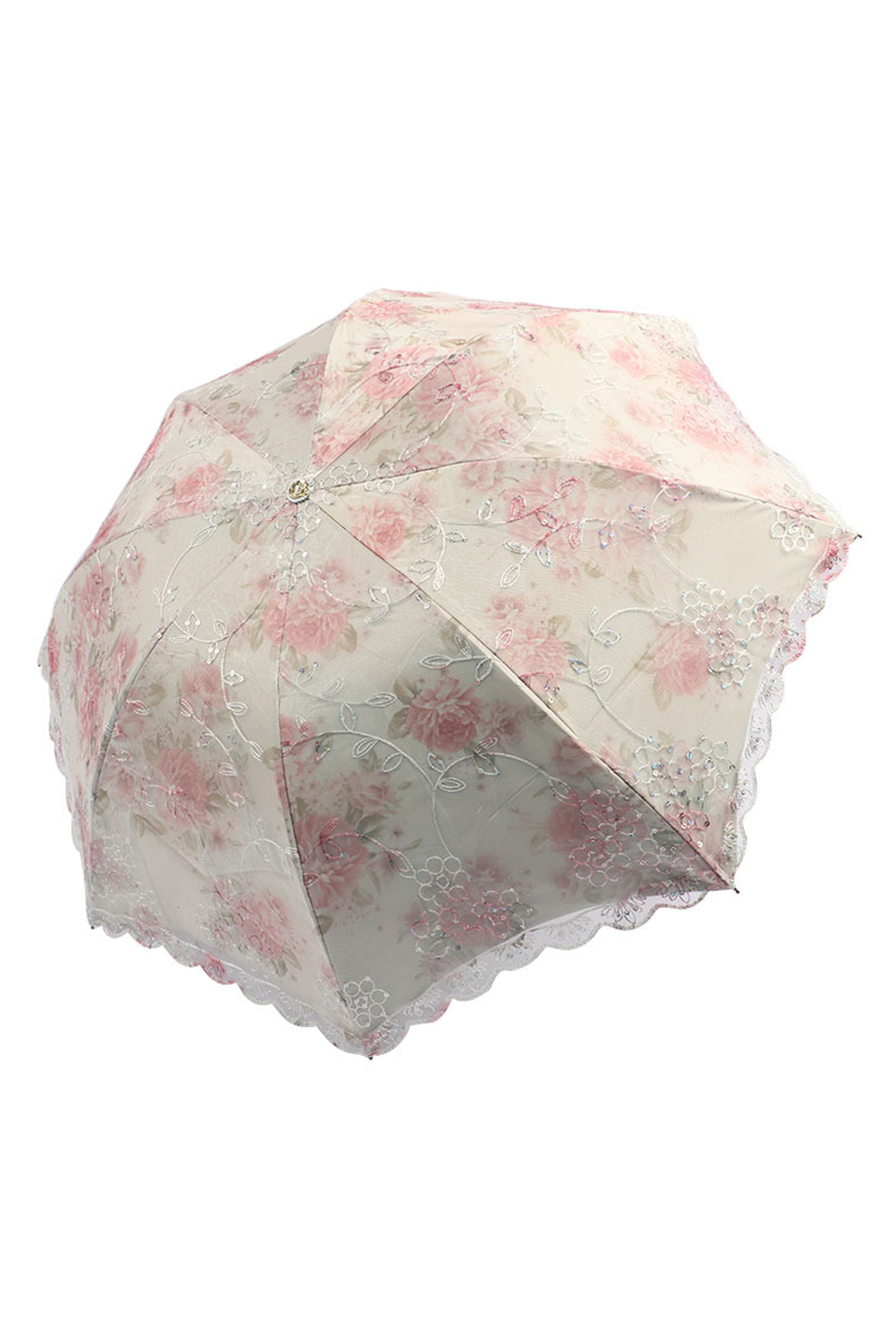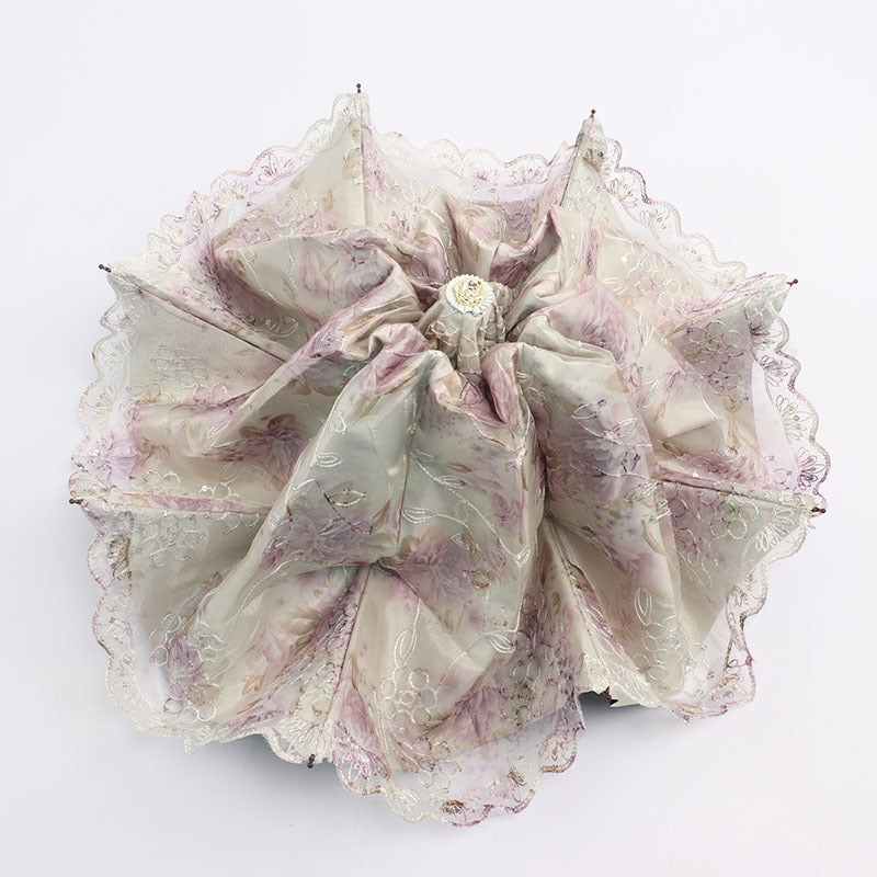 Paraguas plegable con protección solar y encaje bordado con flores MIS0947