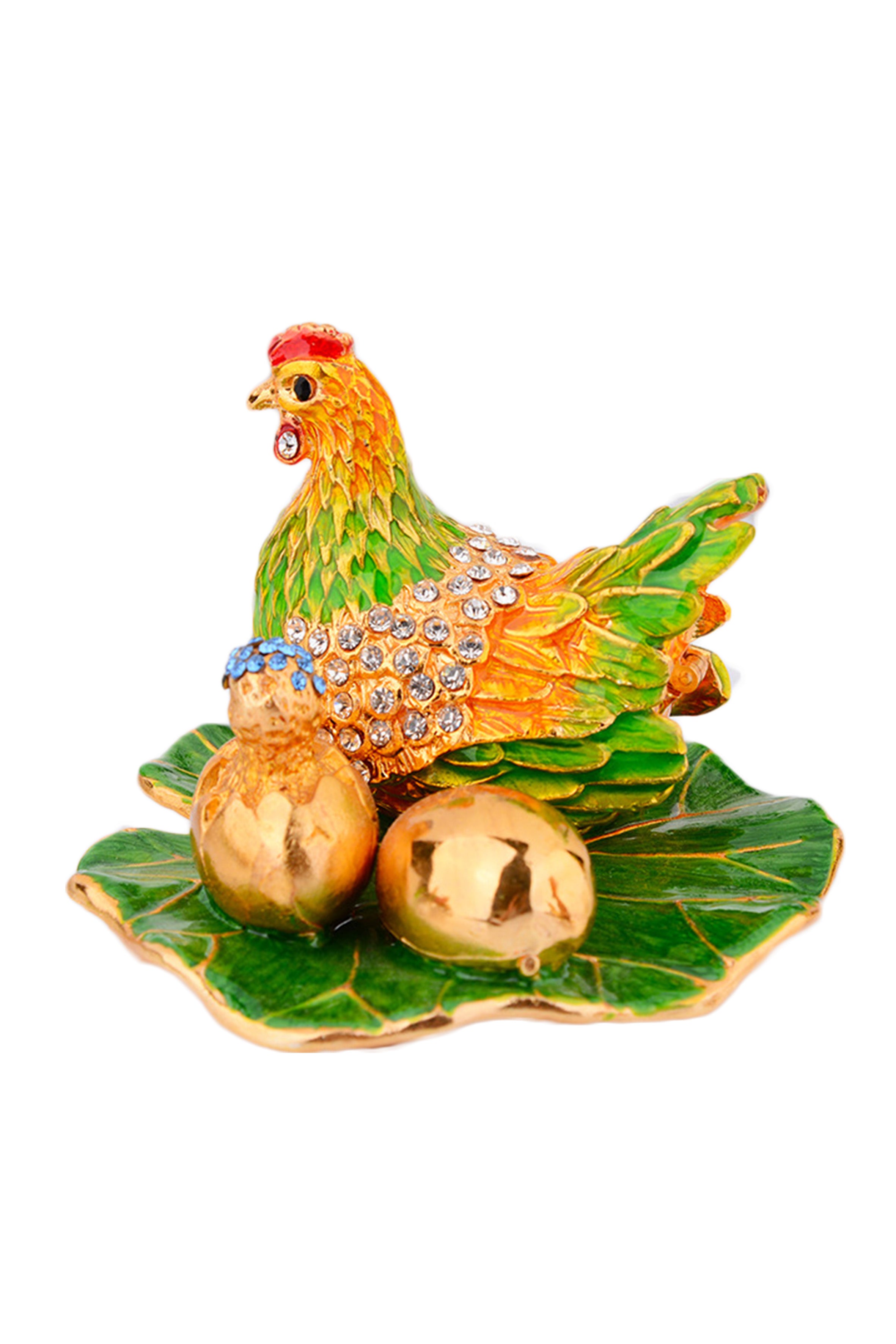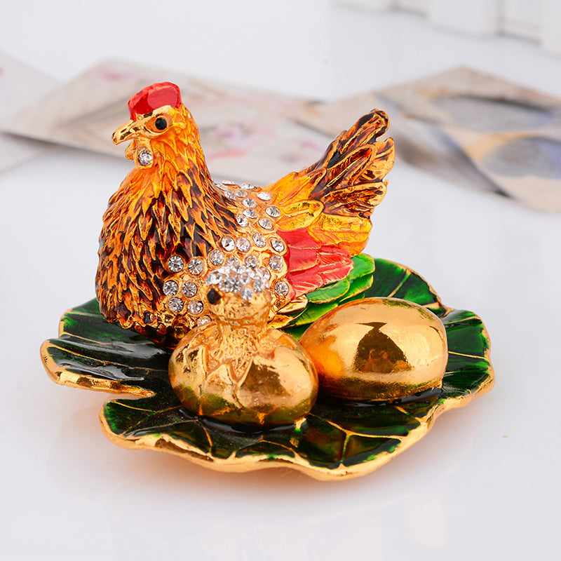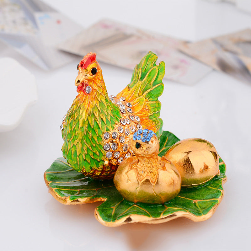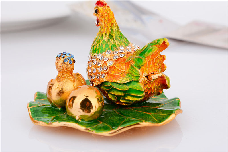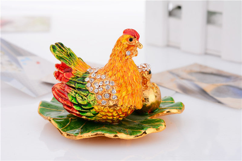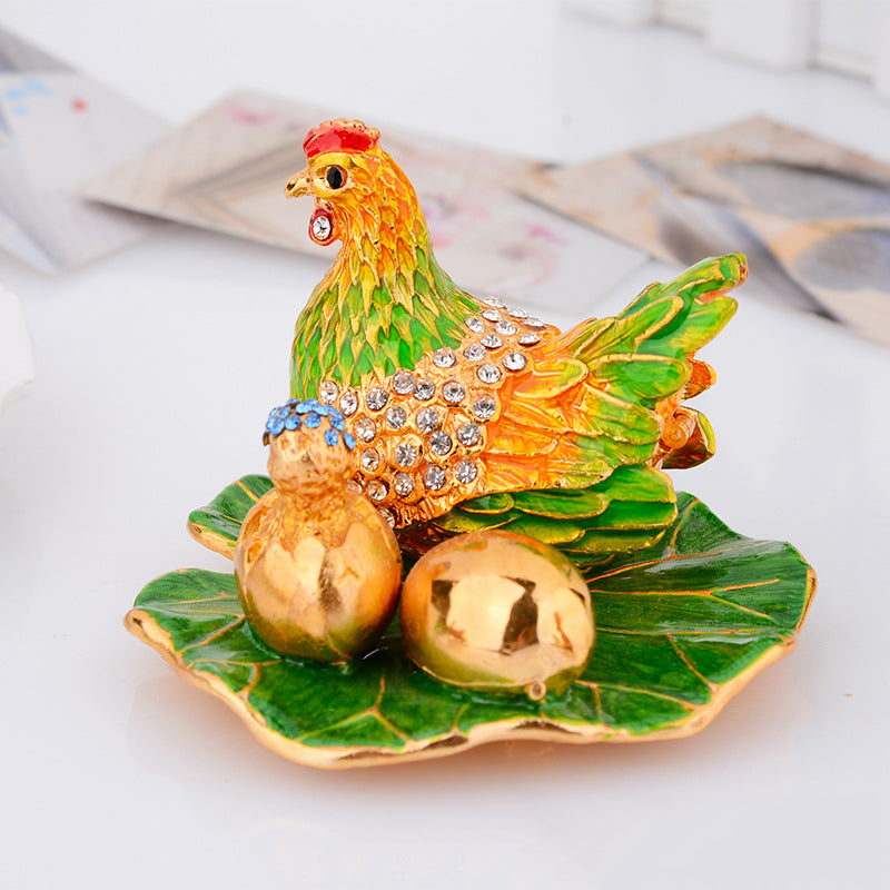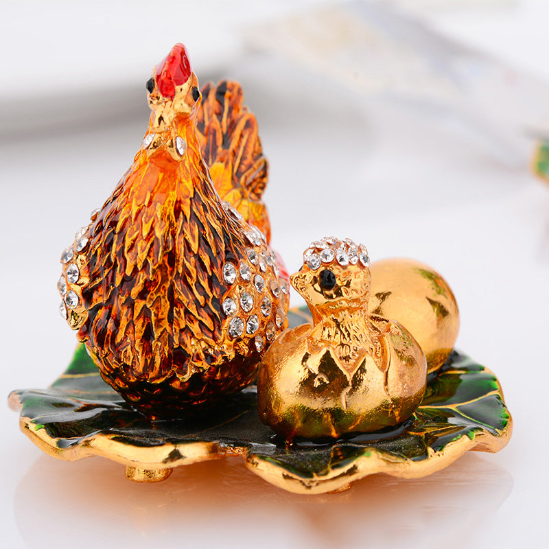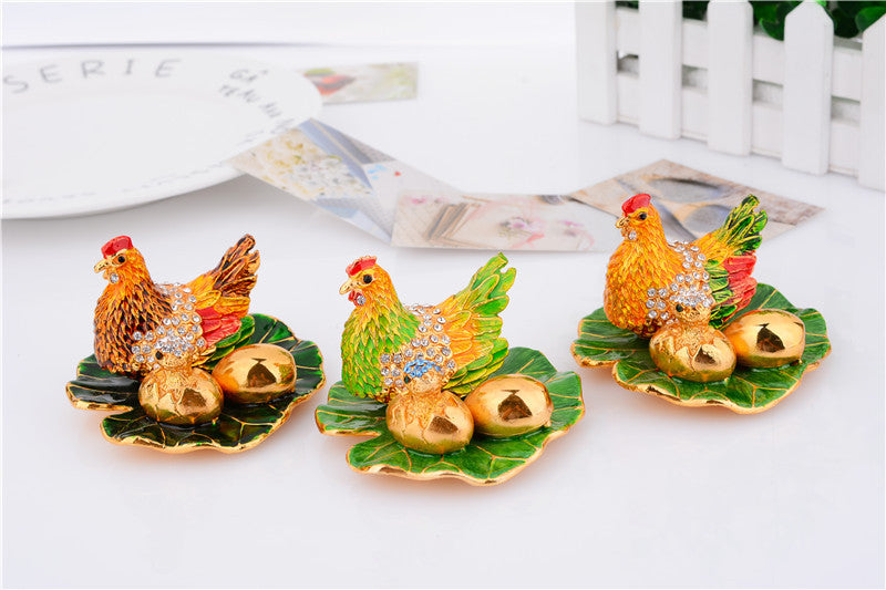 Adornos para joyero con diseño de gallinas ponedoras y diamantes de imitación W1792