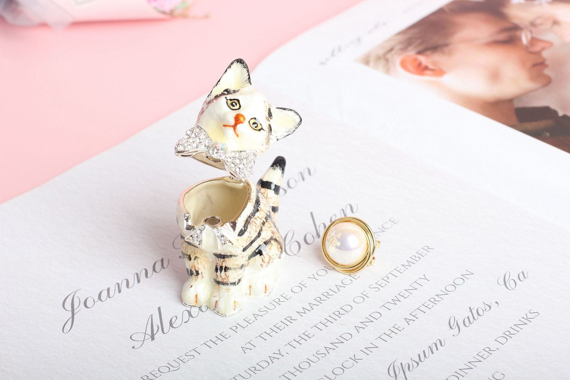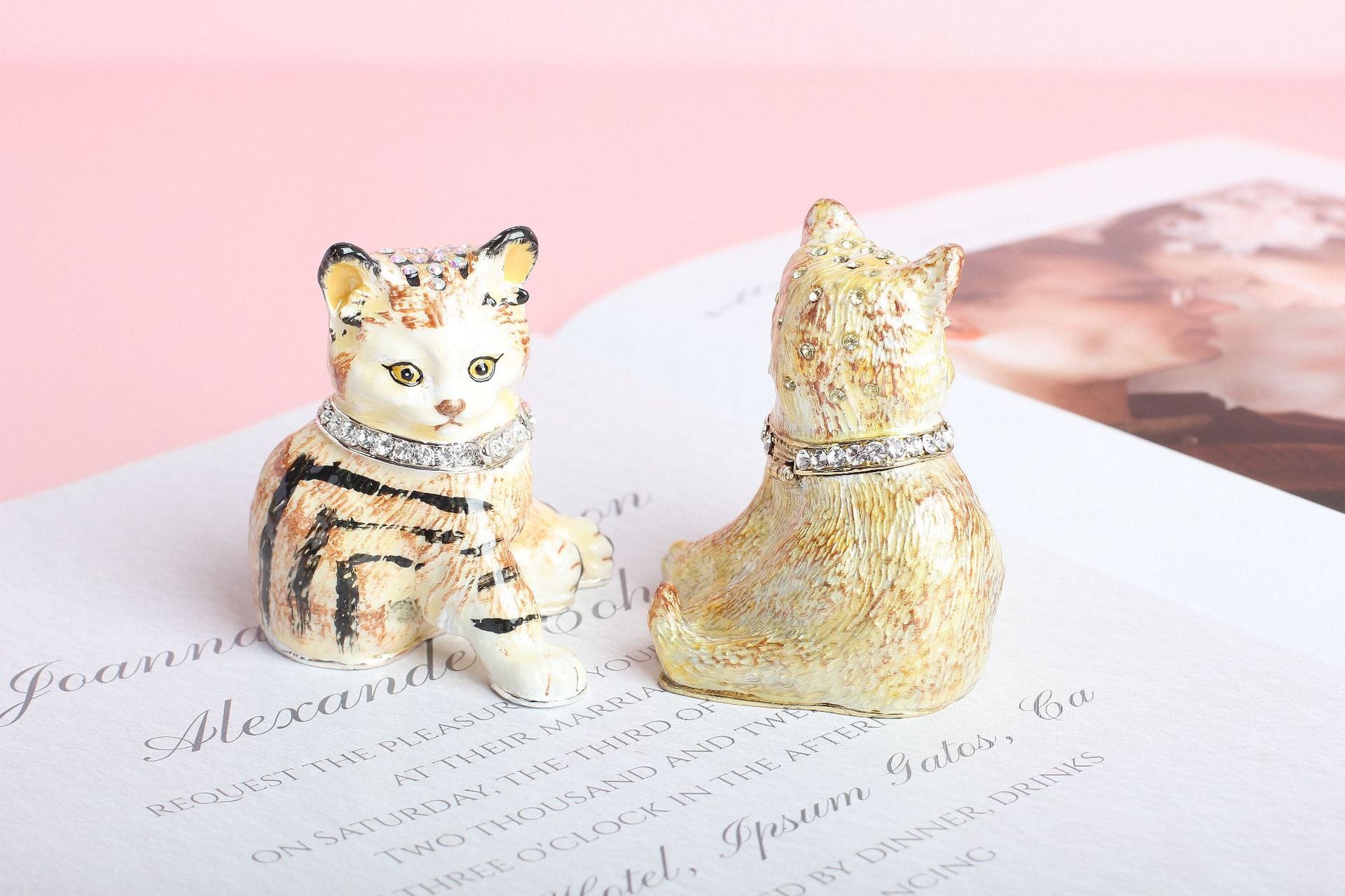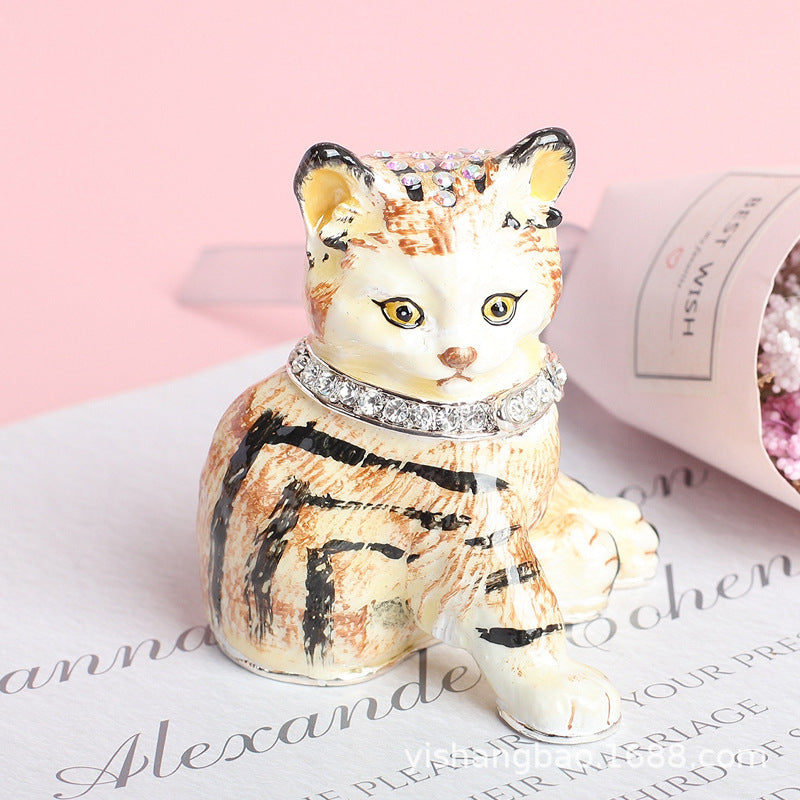 Adornos para joyero de aleación con diamantes de imitación de gatito W1788