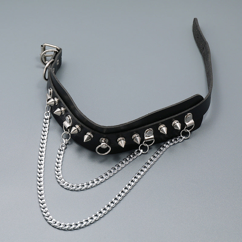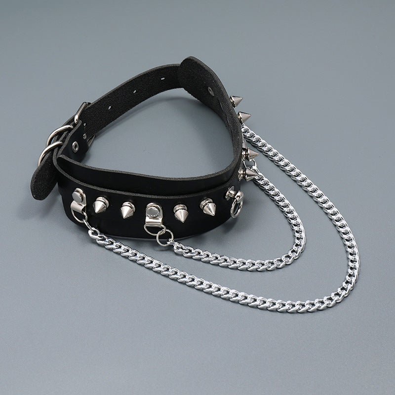Rivet Leather Chain Choker Necklace N4712