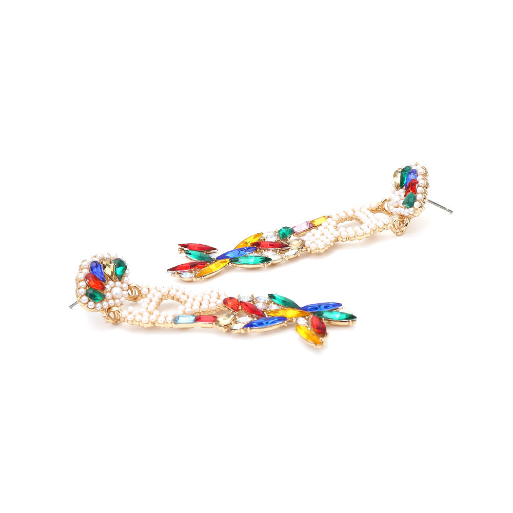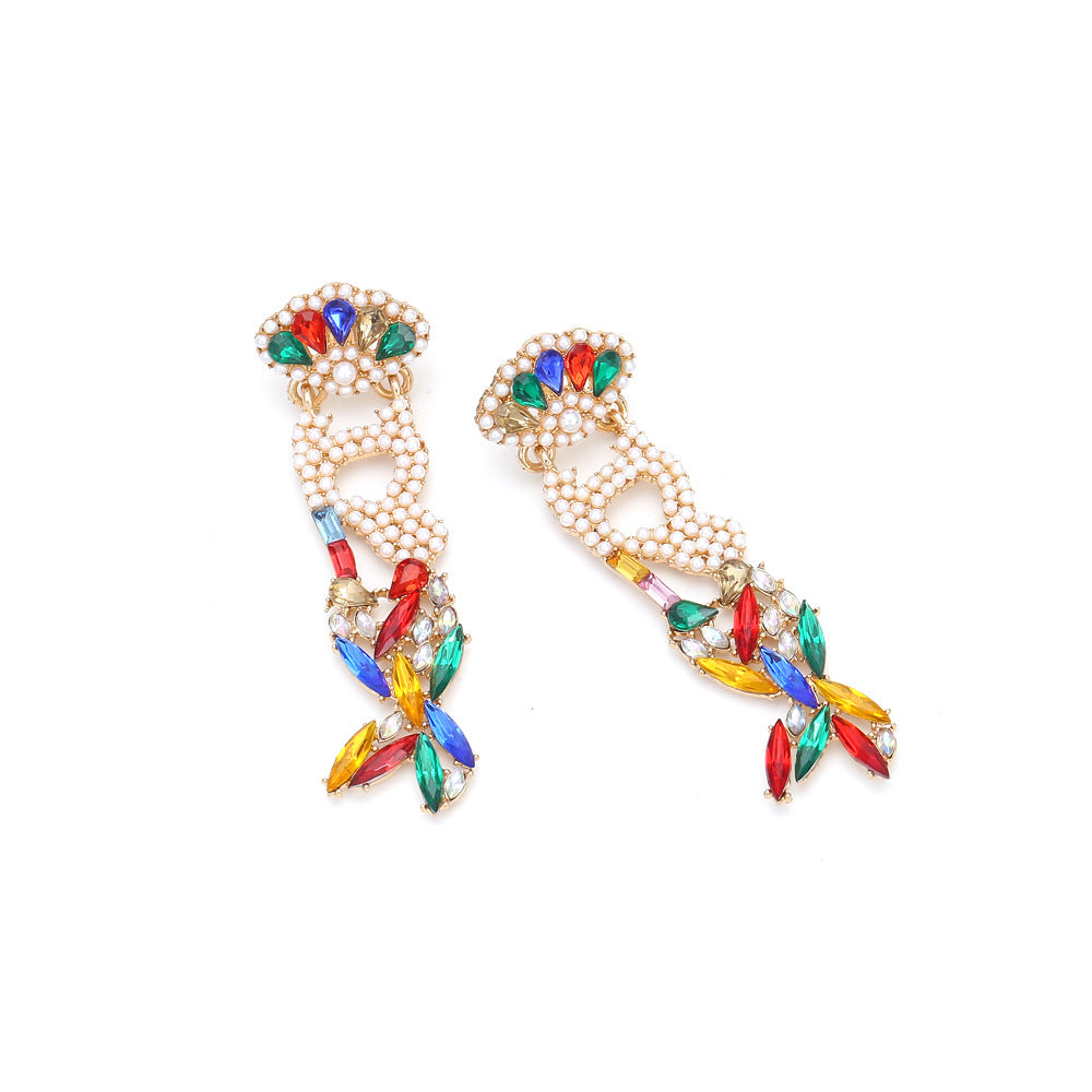 Pendientes de perlas y diamantes de imitación con forma de cola de pez E5507