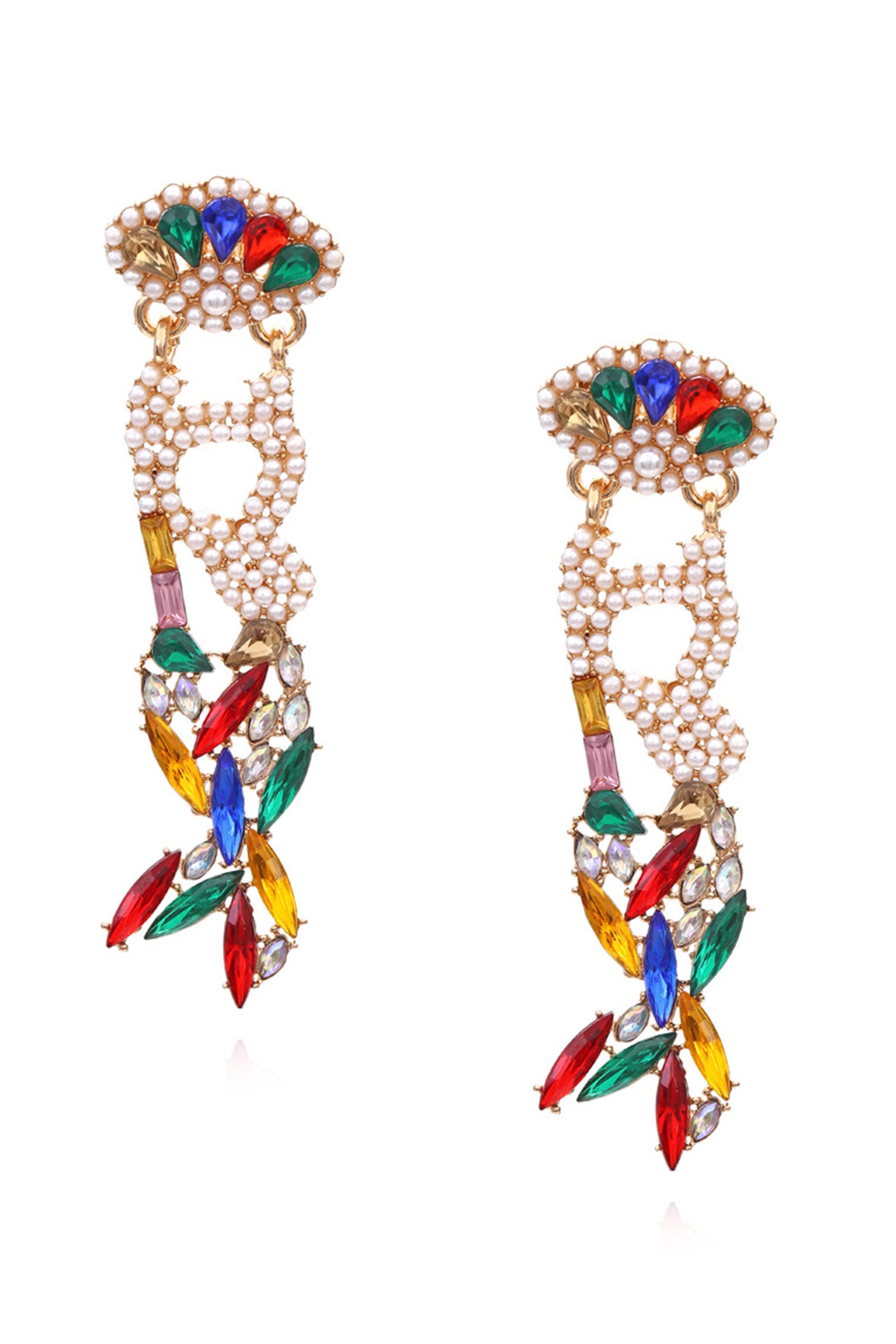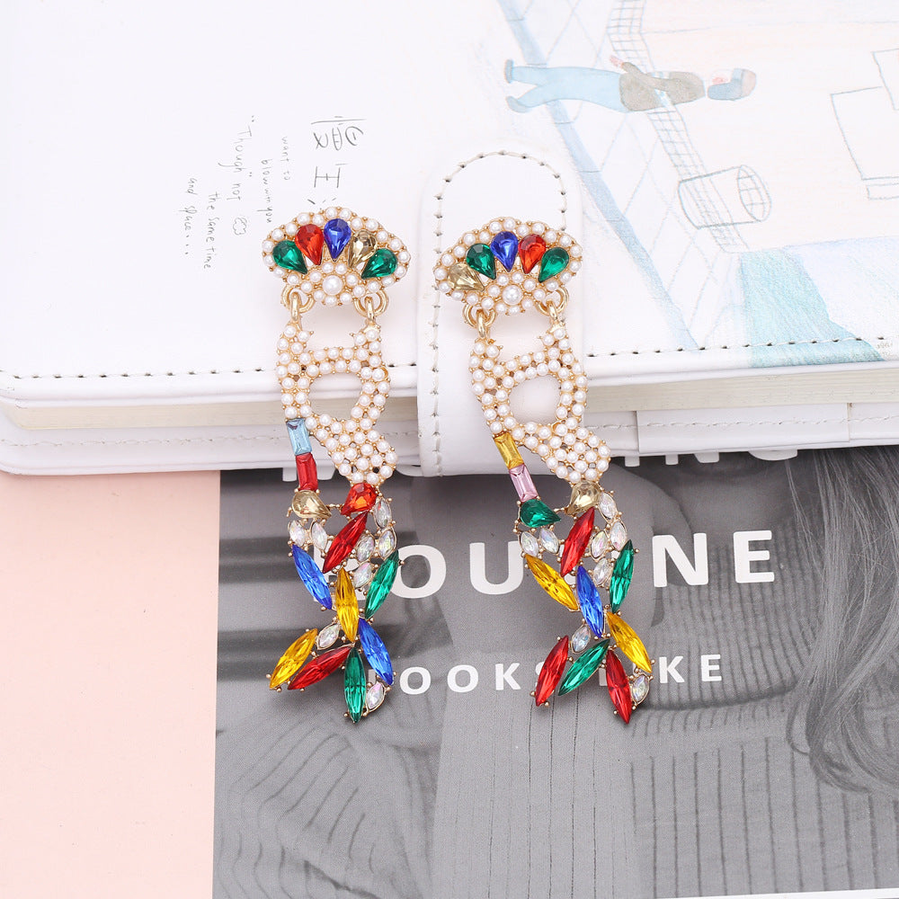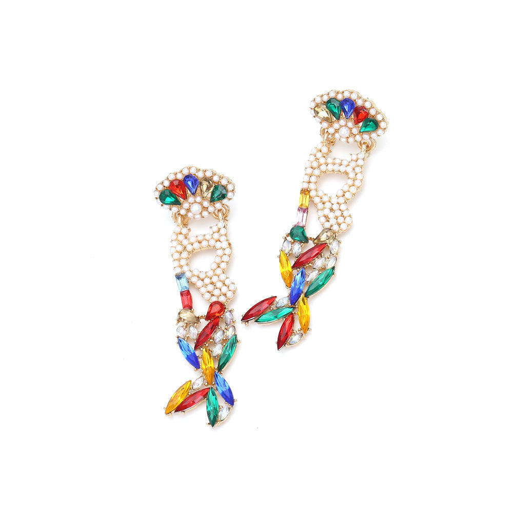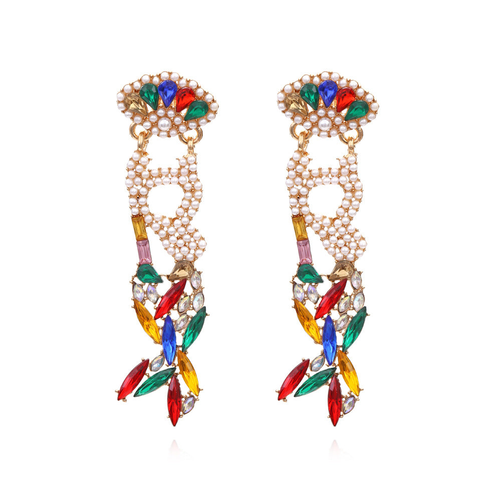 2. Pendientes de perlas y diamantes de imitación con forma de cola de pez E5507