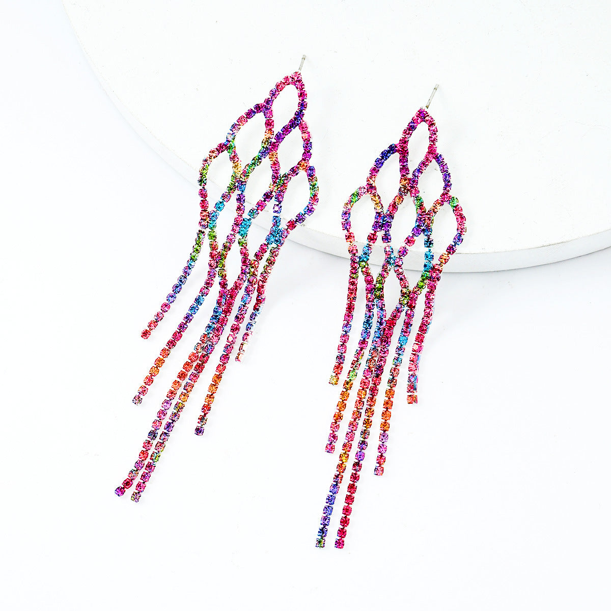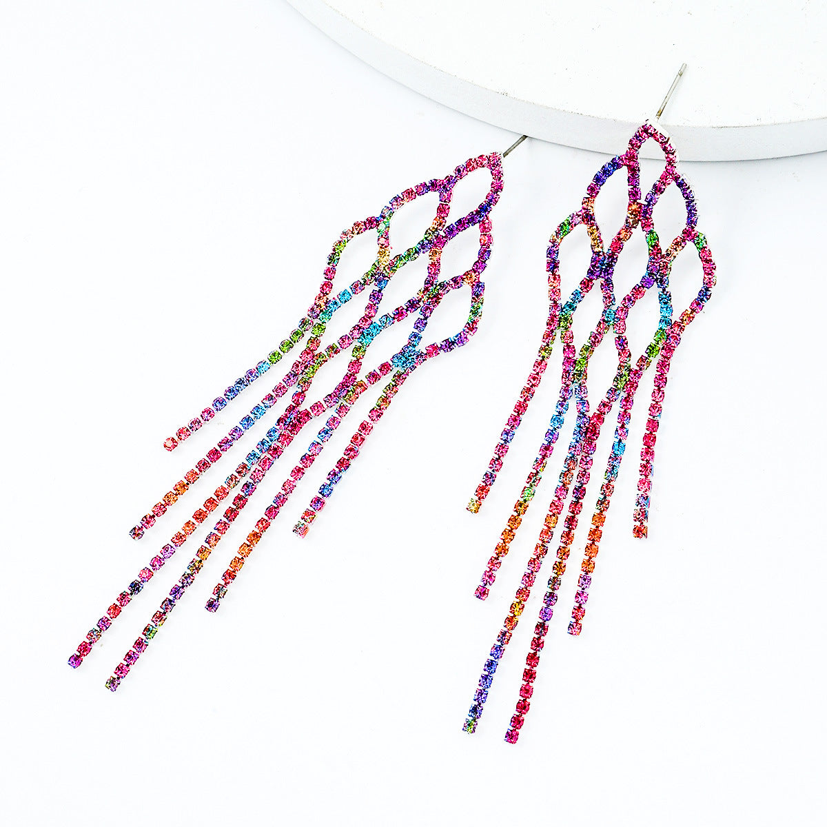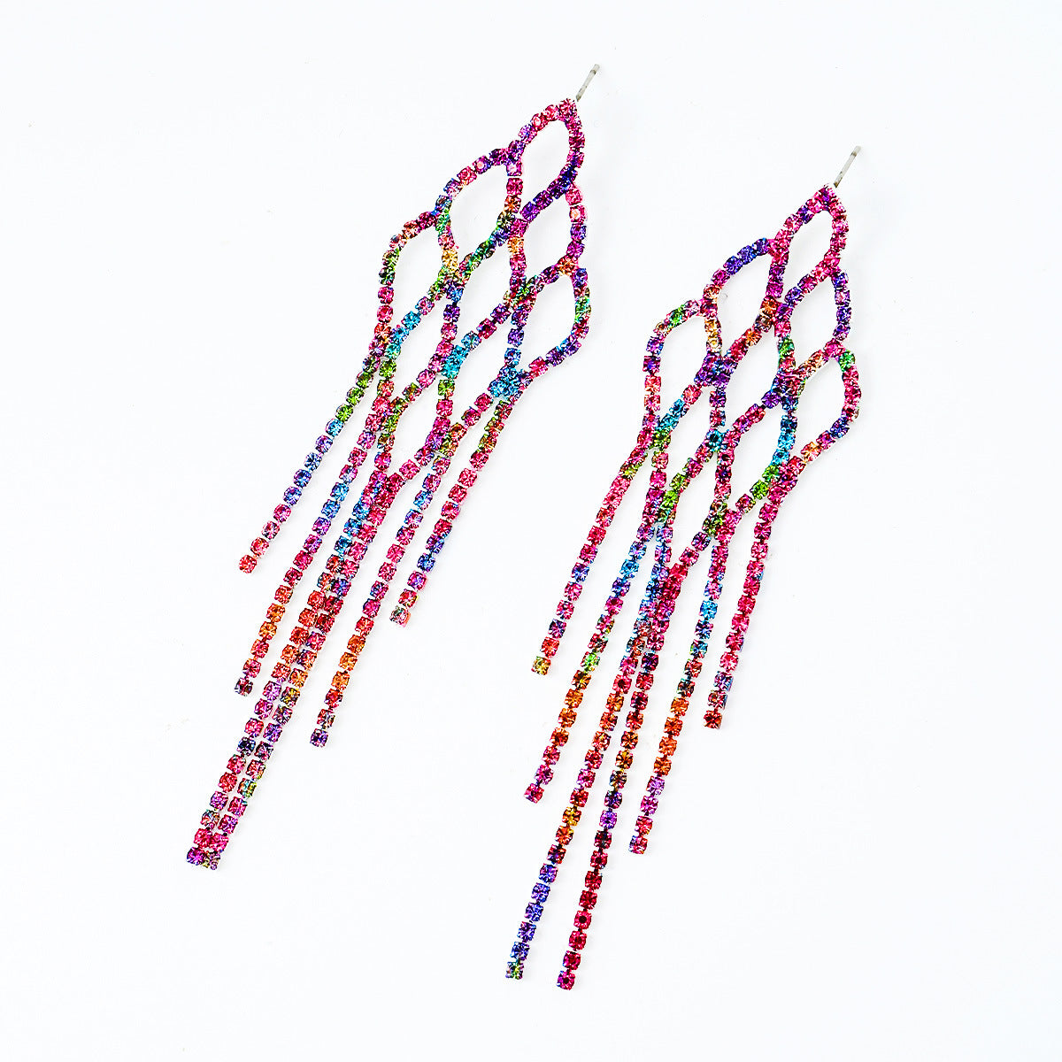 Pendientes de malla con borlas de diamantes de imitación E7874
