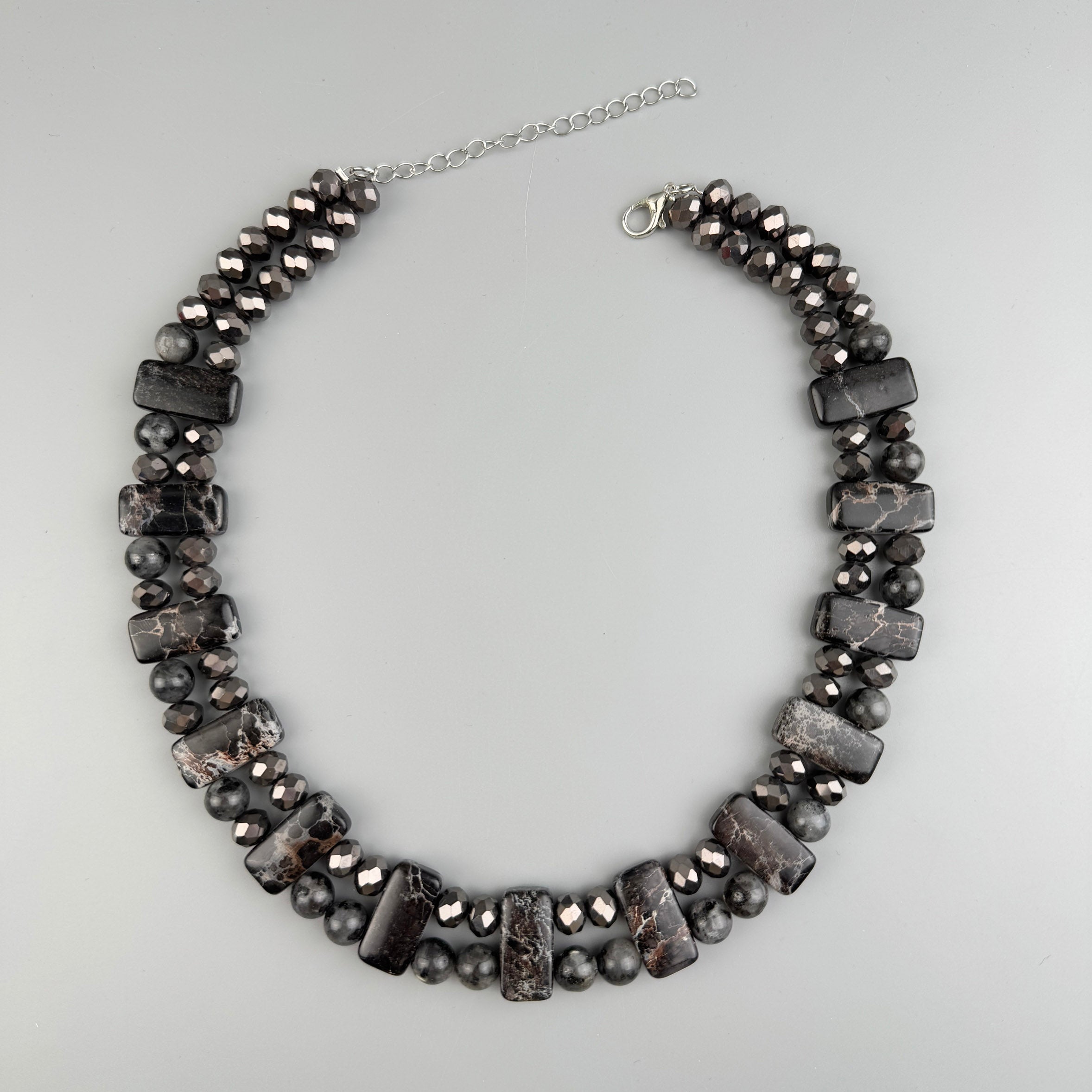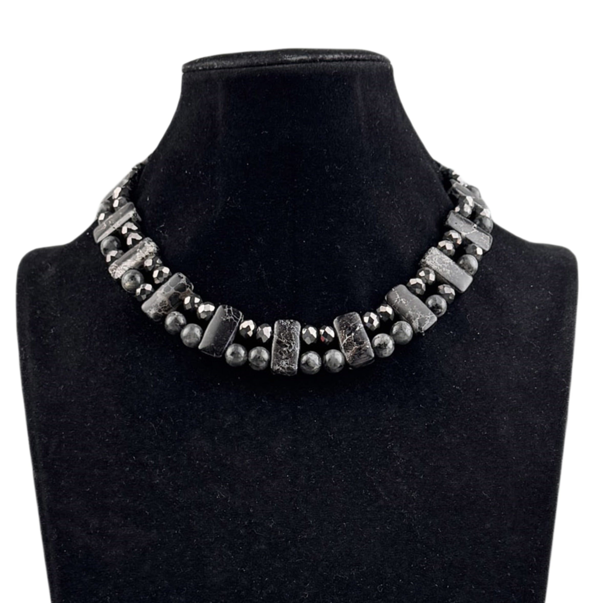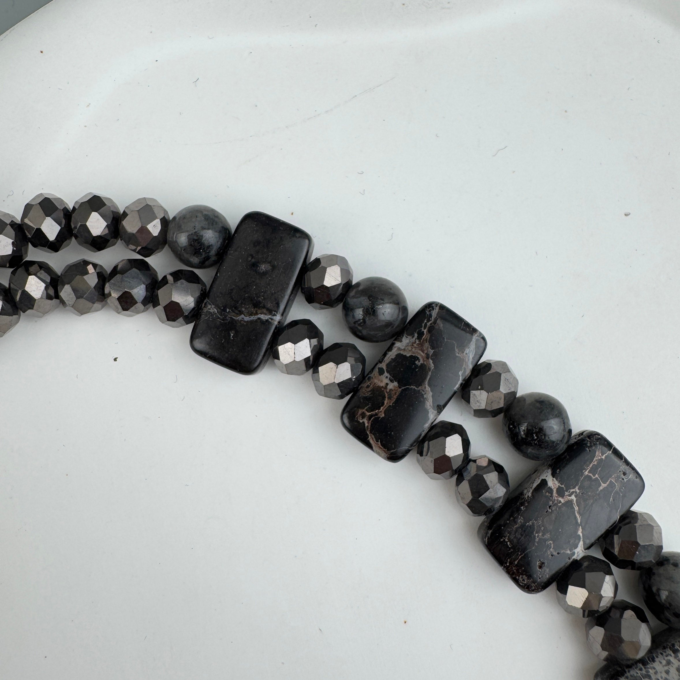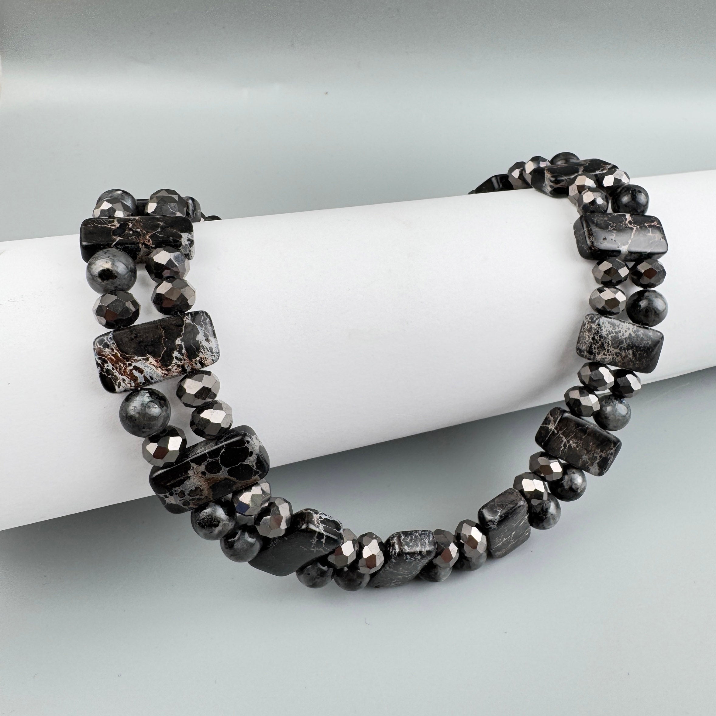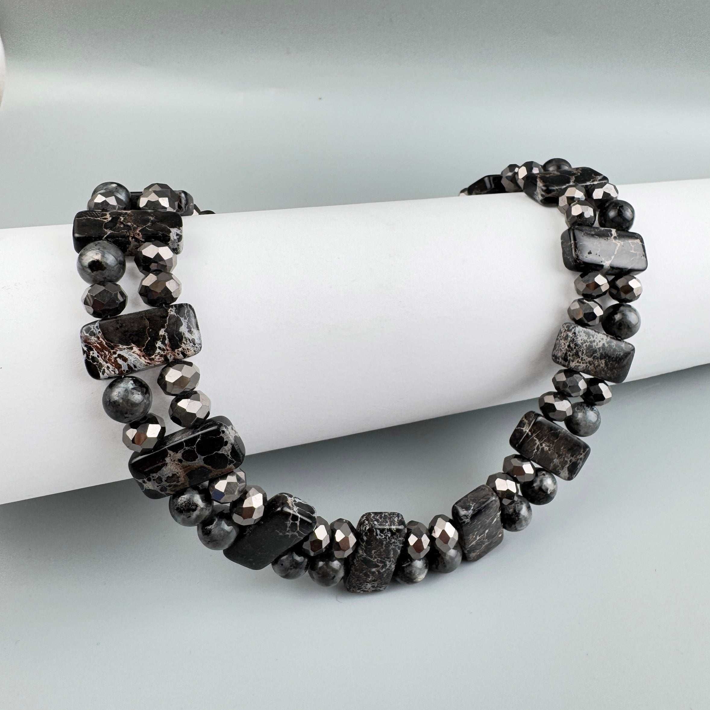 Handmade Black Emperor Jasper Beaded Choker Necklace N5579