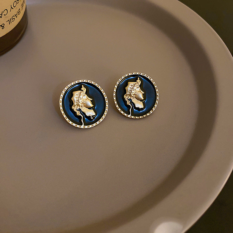 Pendientes de botón de aleación con retrato E5575