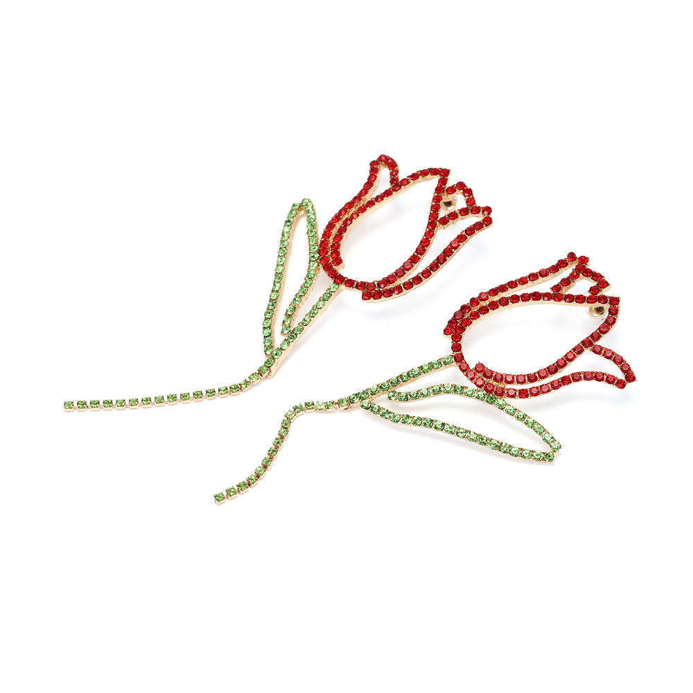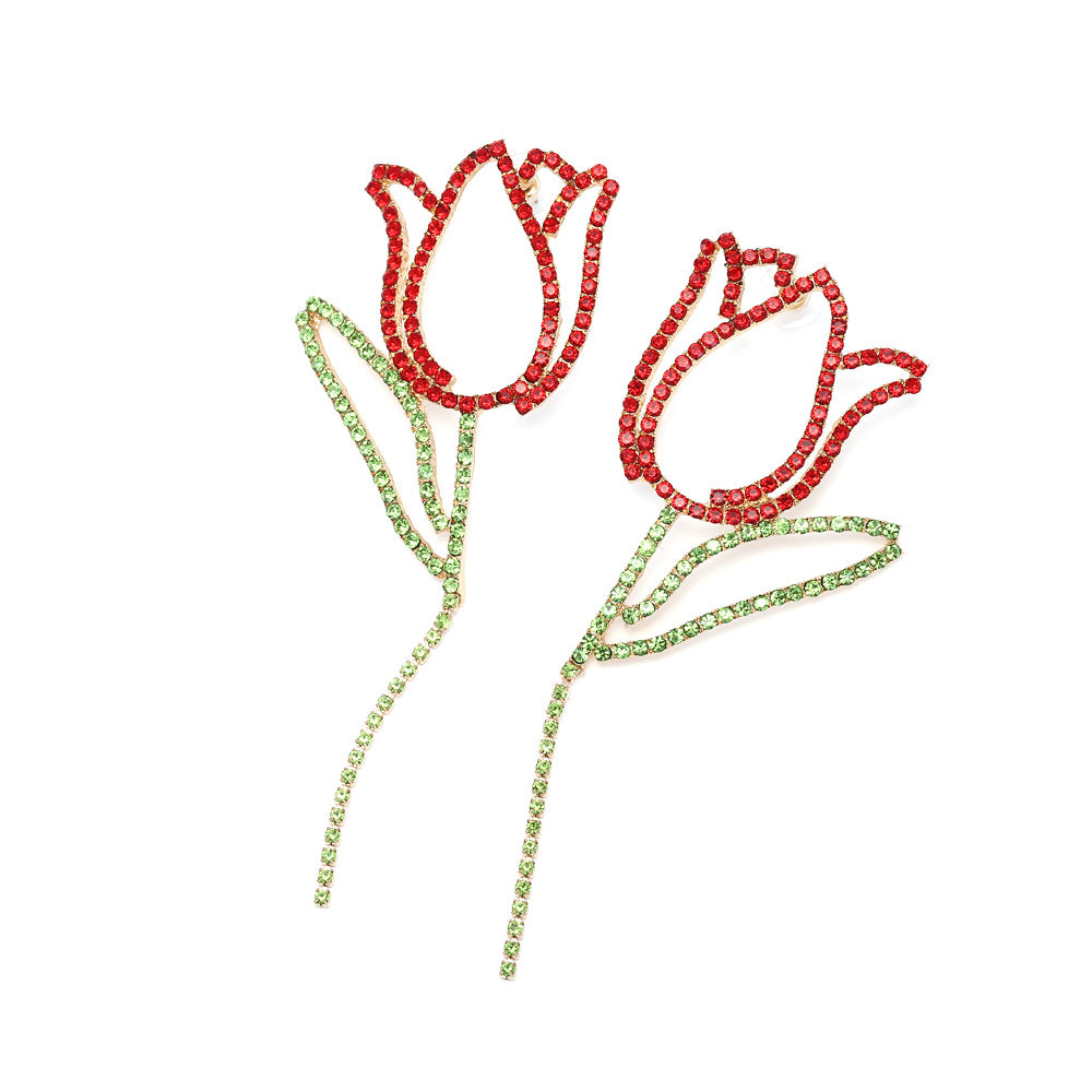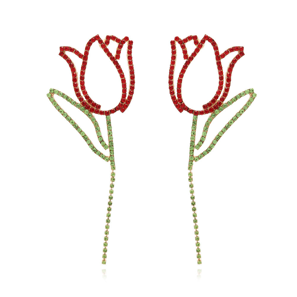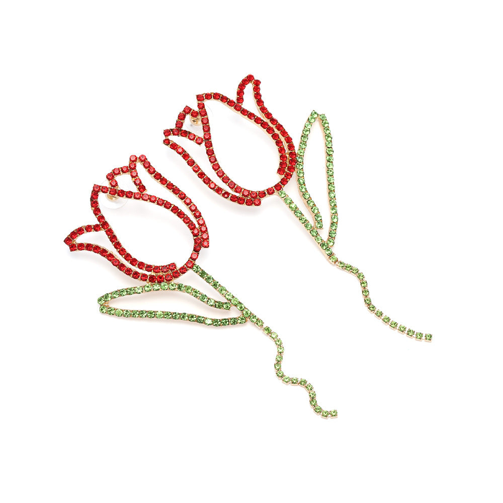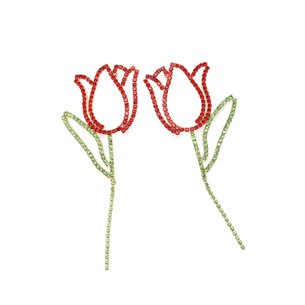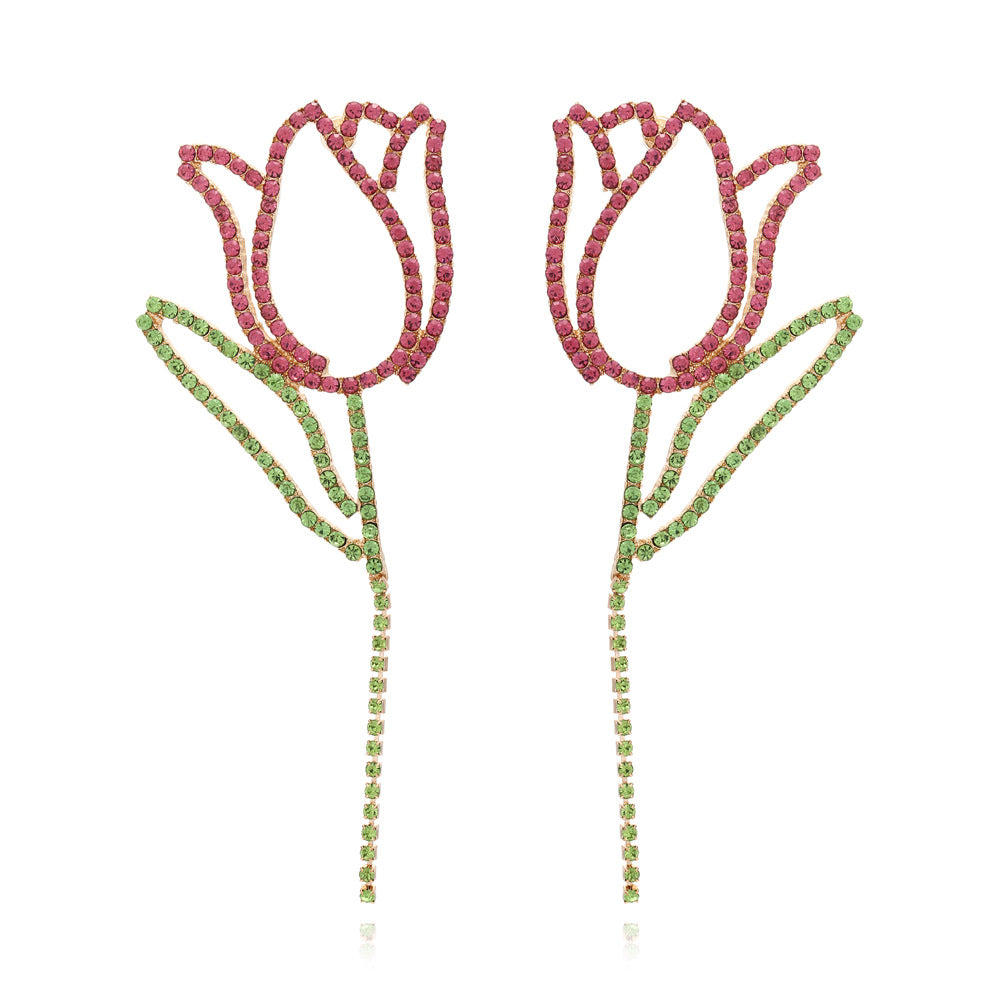 Pendientes de diamantes de imitación con forma de tulipán E7835