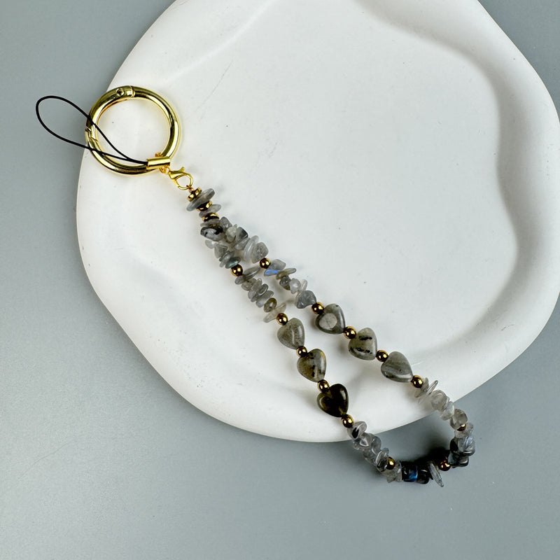 Natural Stone Phone Charm Keychain K1323-Labradorite
