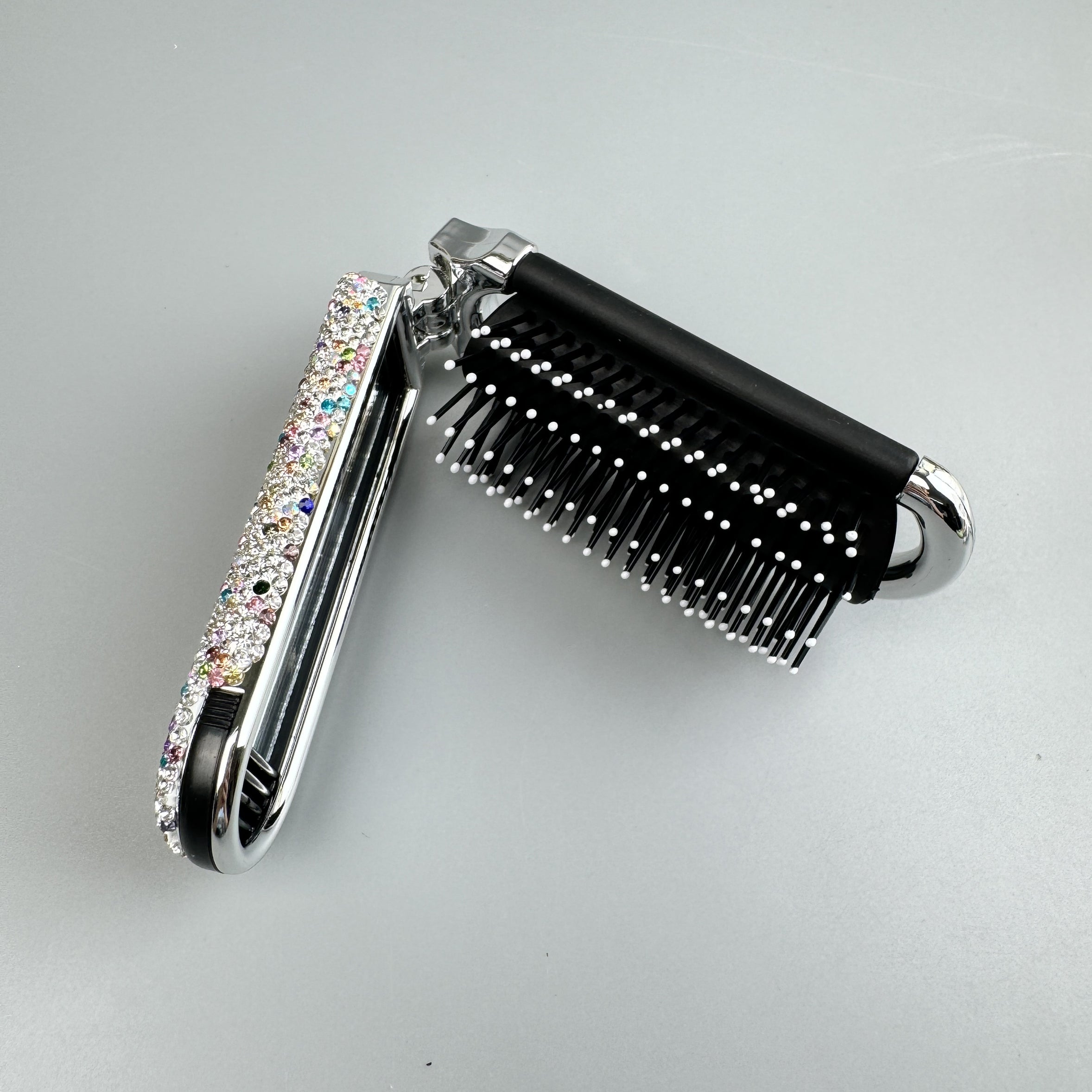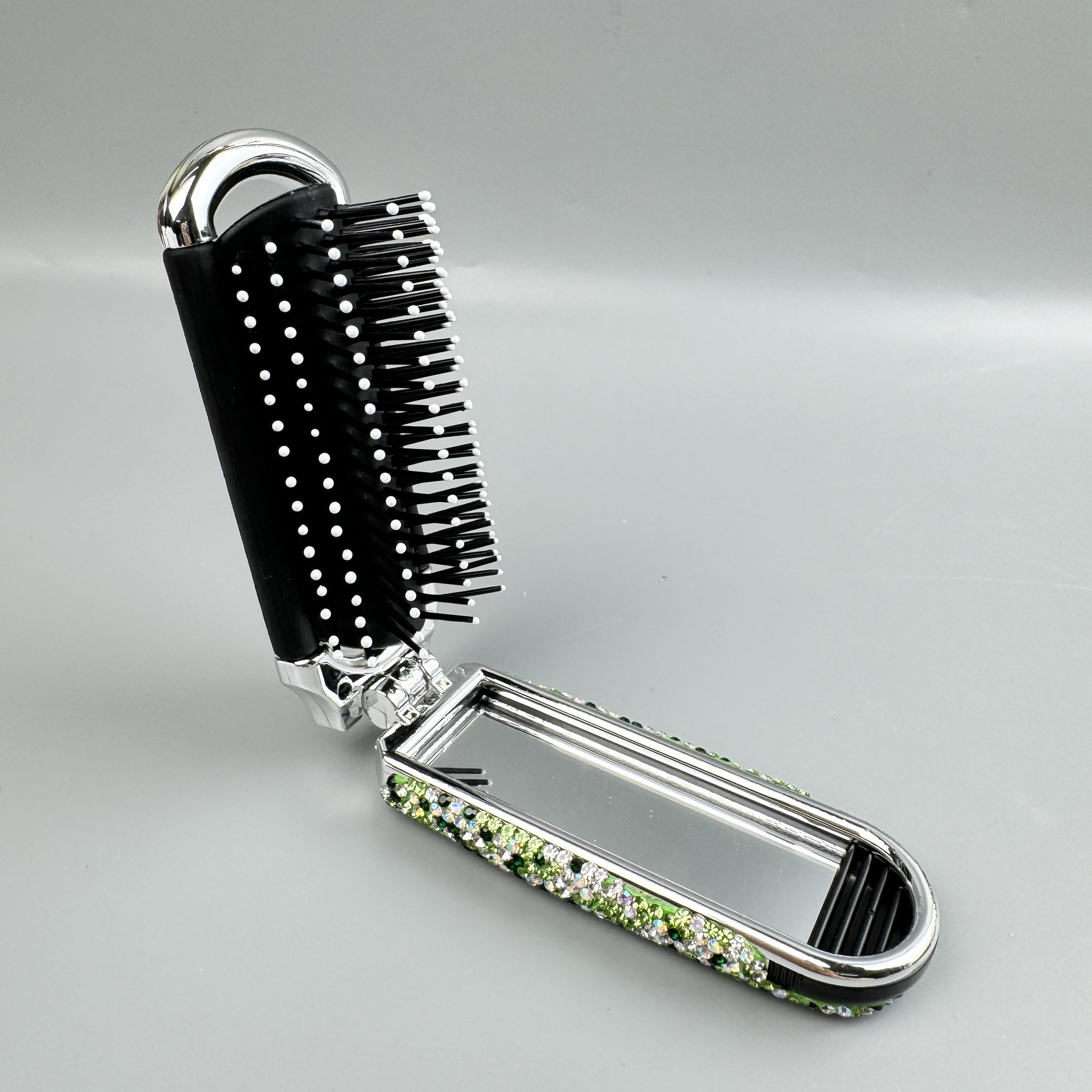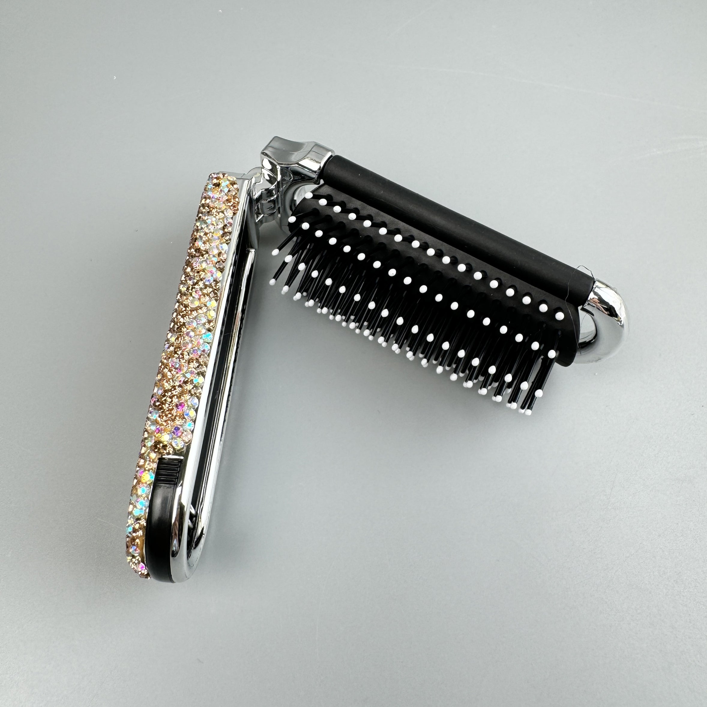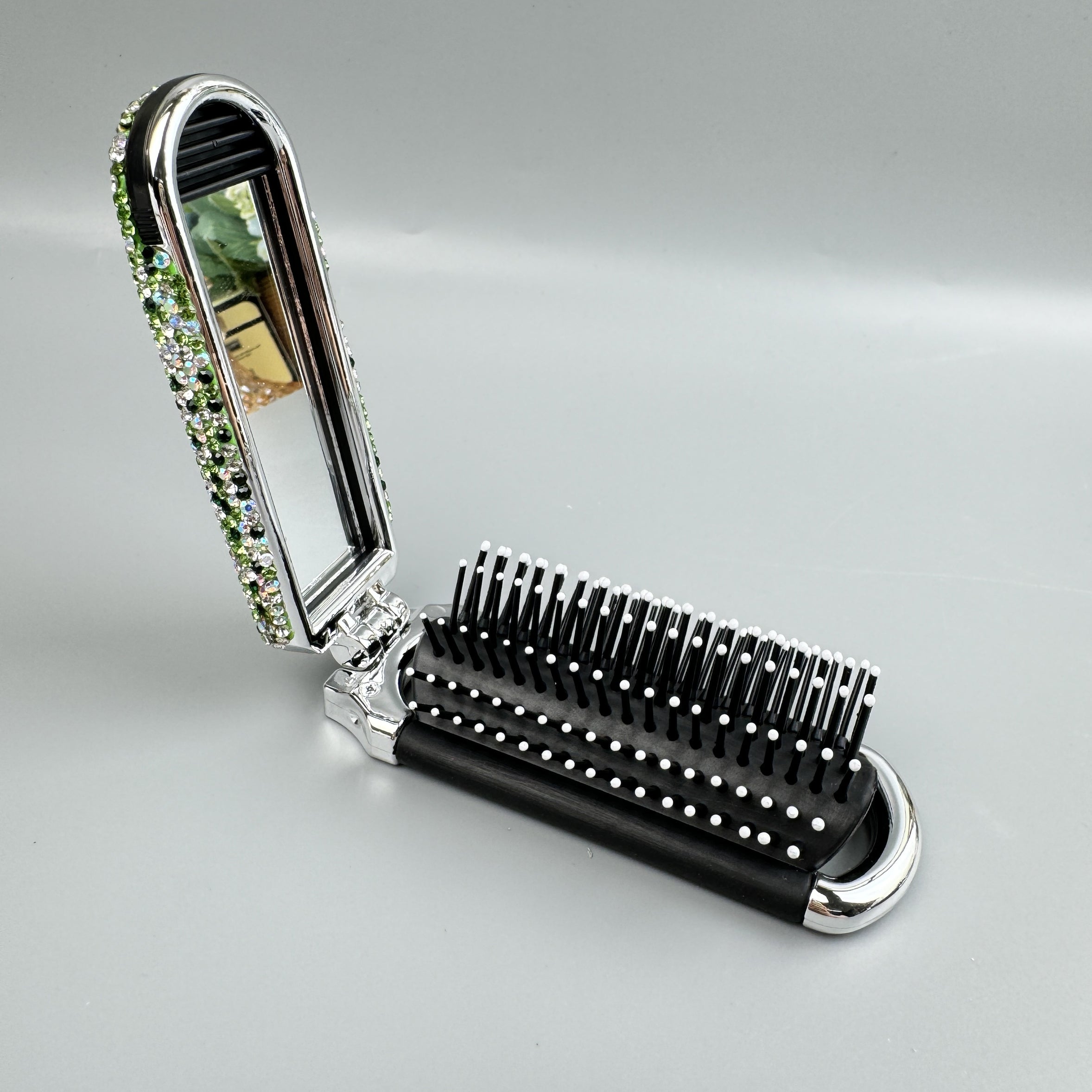 Cepillo de pelo y espejo de viaje plegables hechos a mano con diamantes de imitación MIS1009