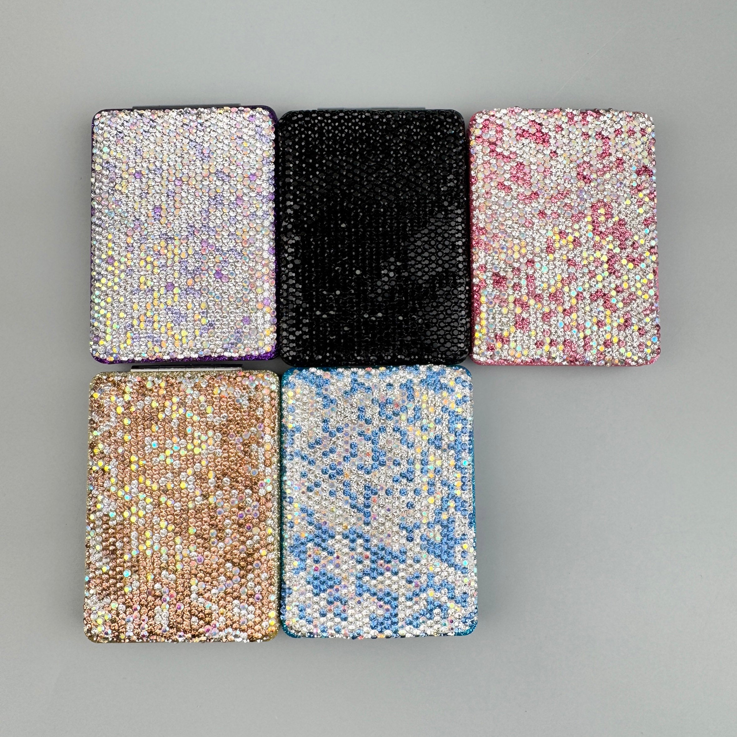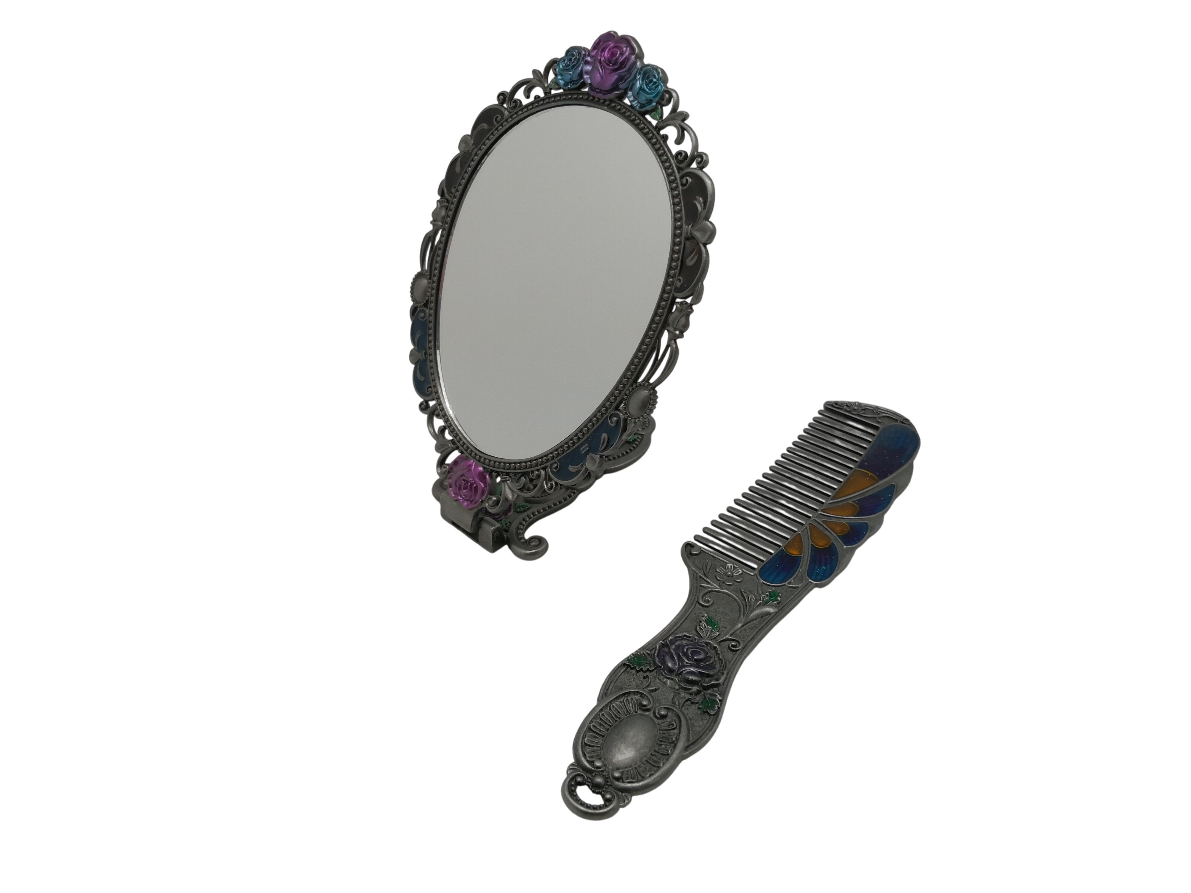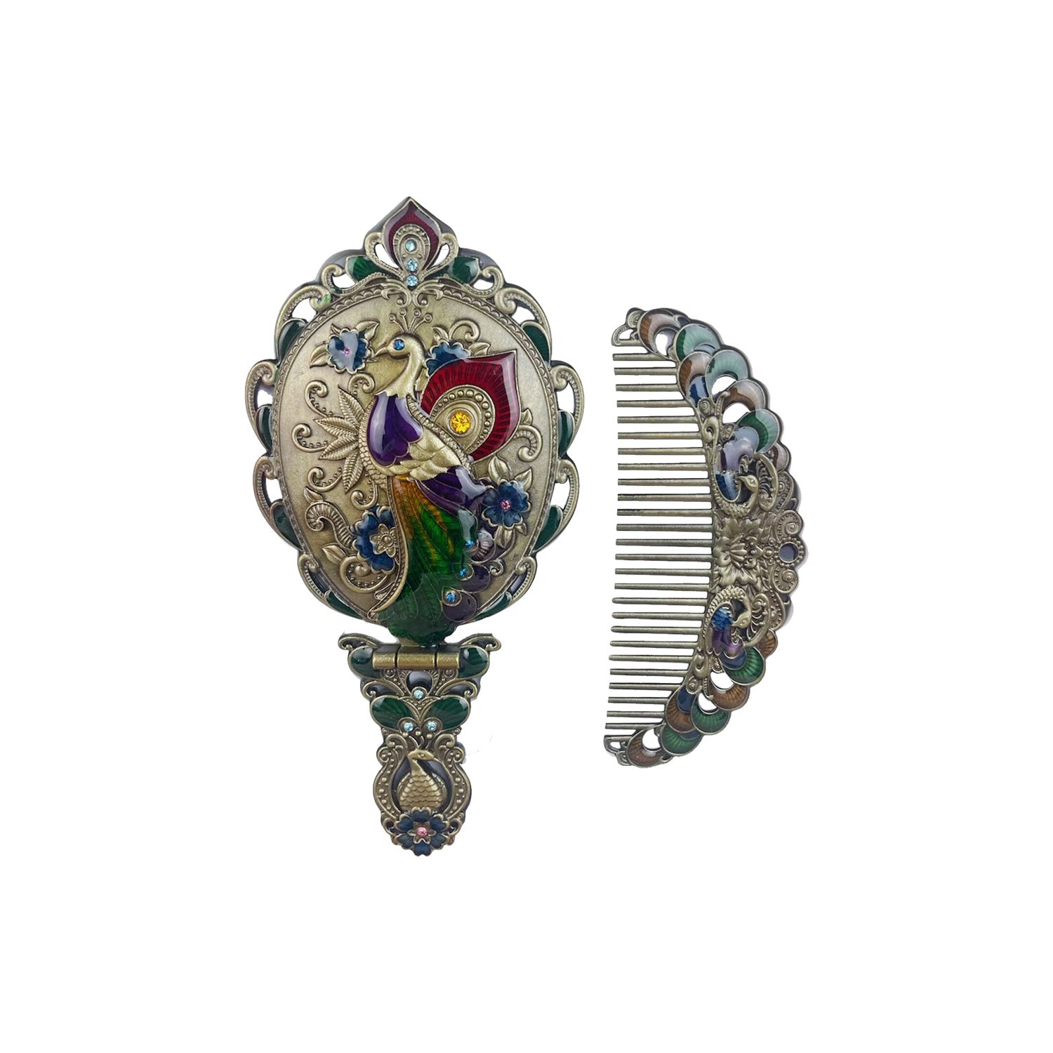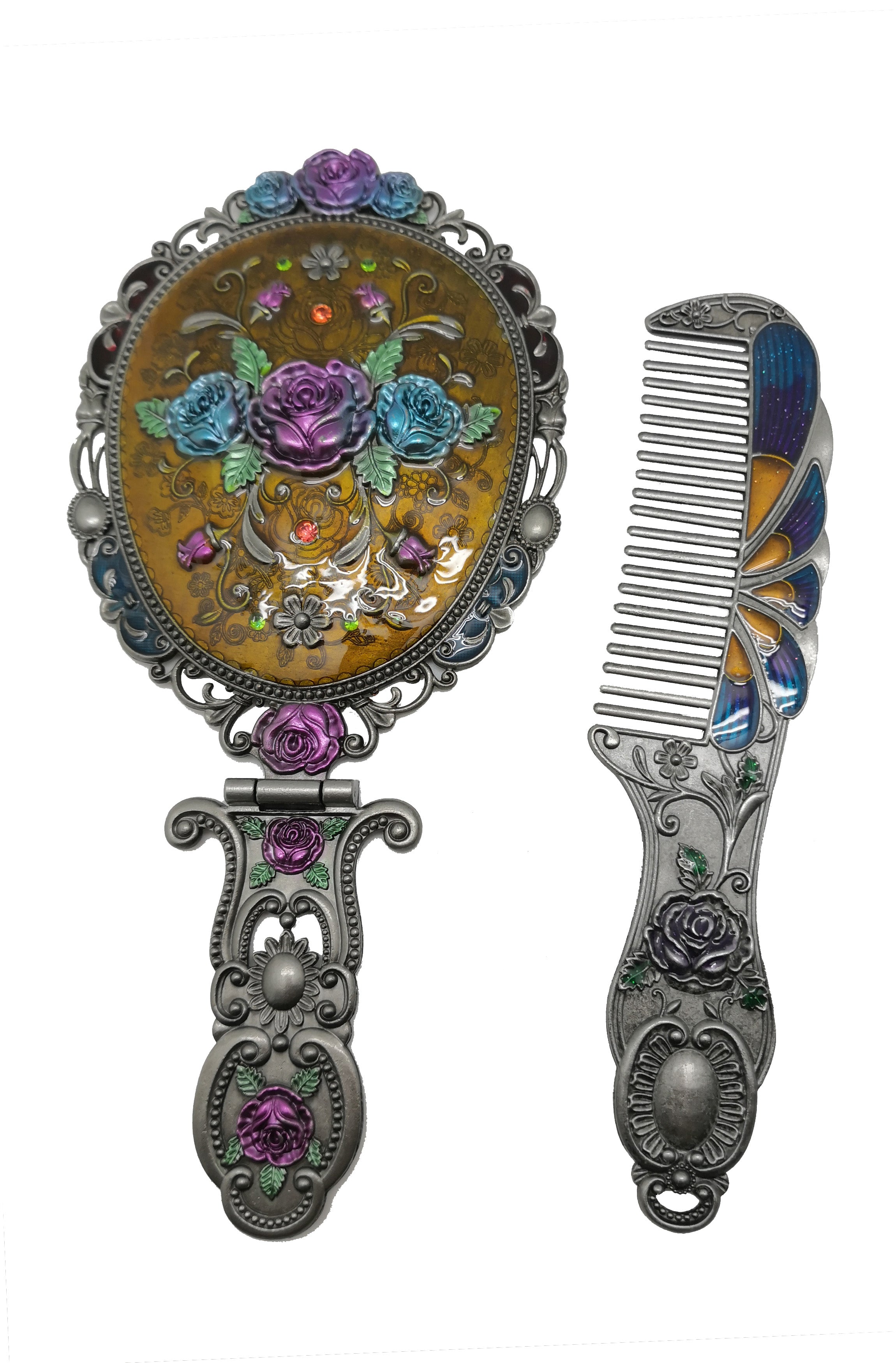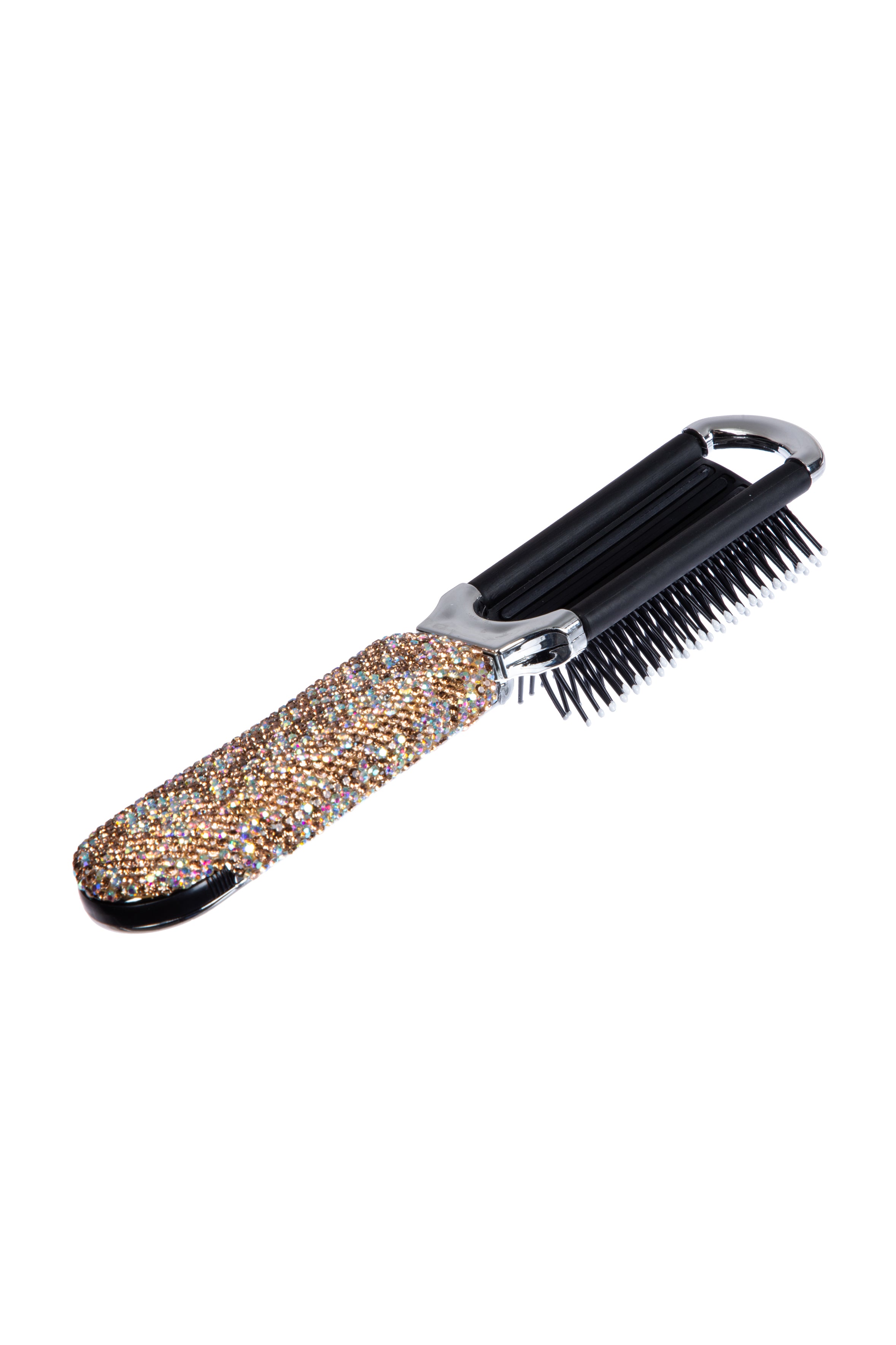 Cepillo de pelo y espejo de viaje plegables hechos a mano con diamantes de imitación MIS1009