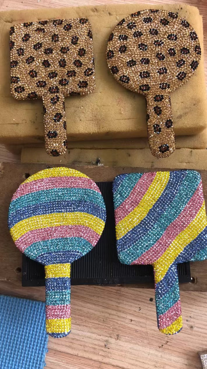 Espejo de mano con diamantes de imitación en forma de círculo M0436