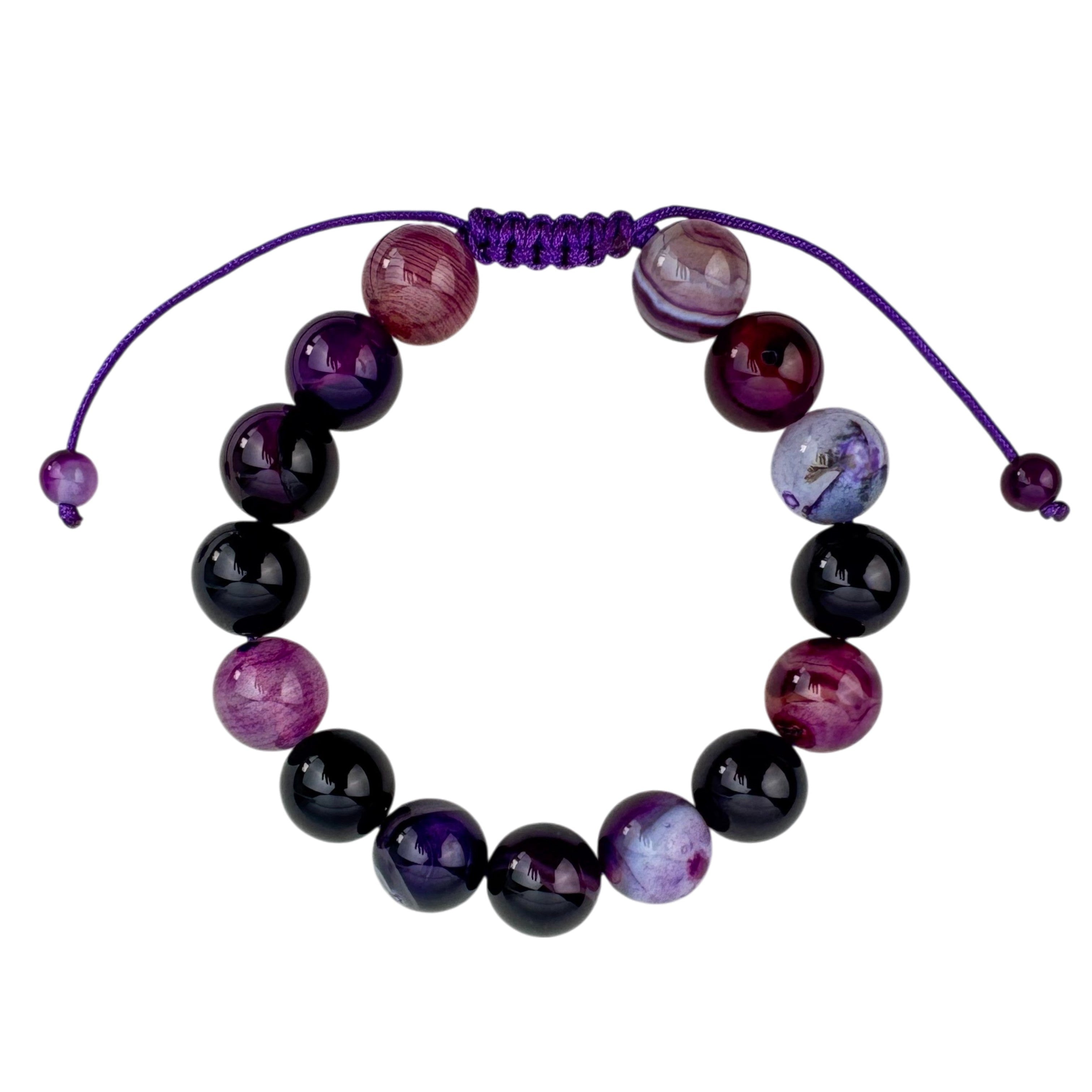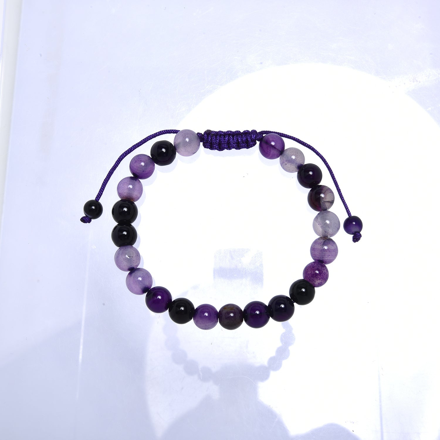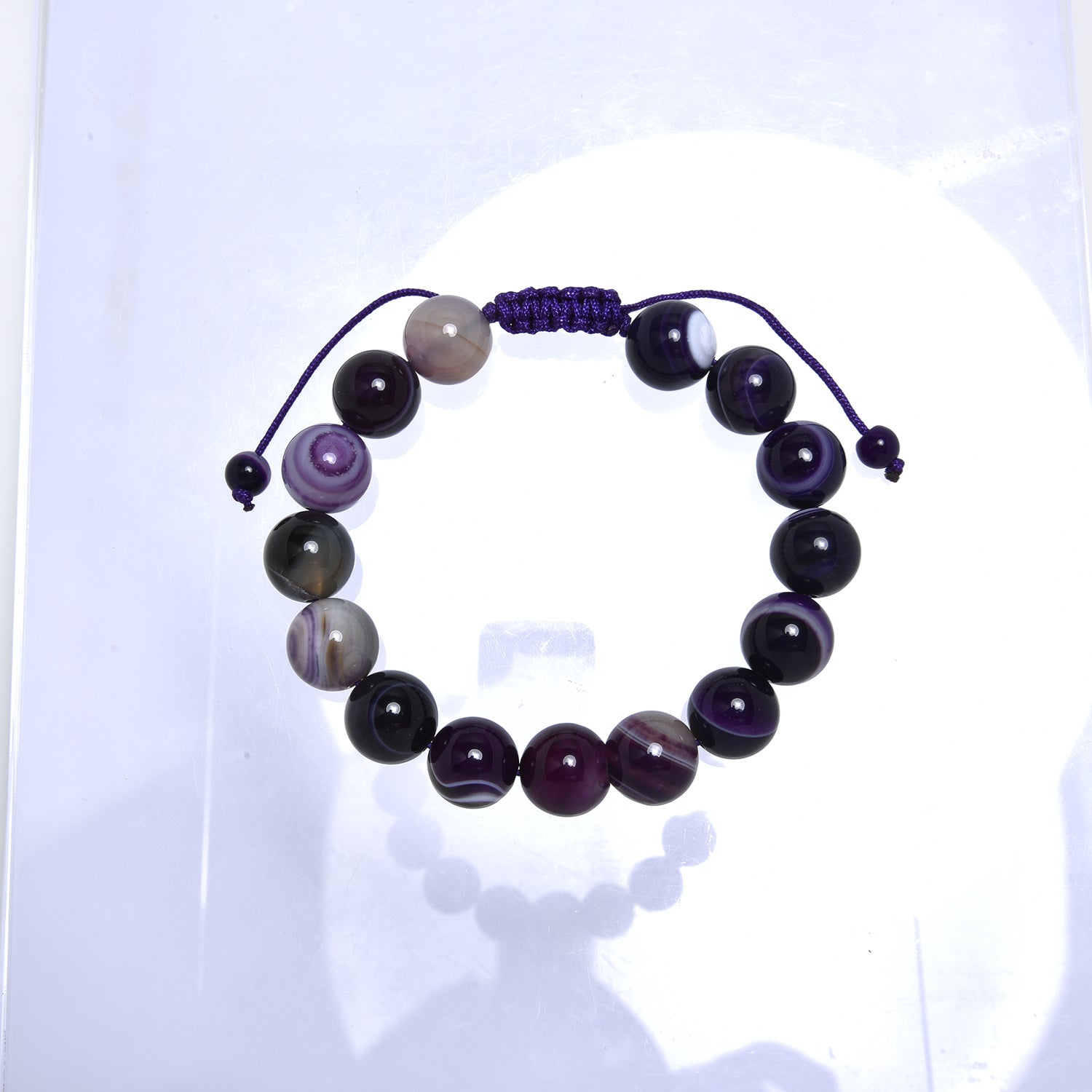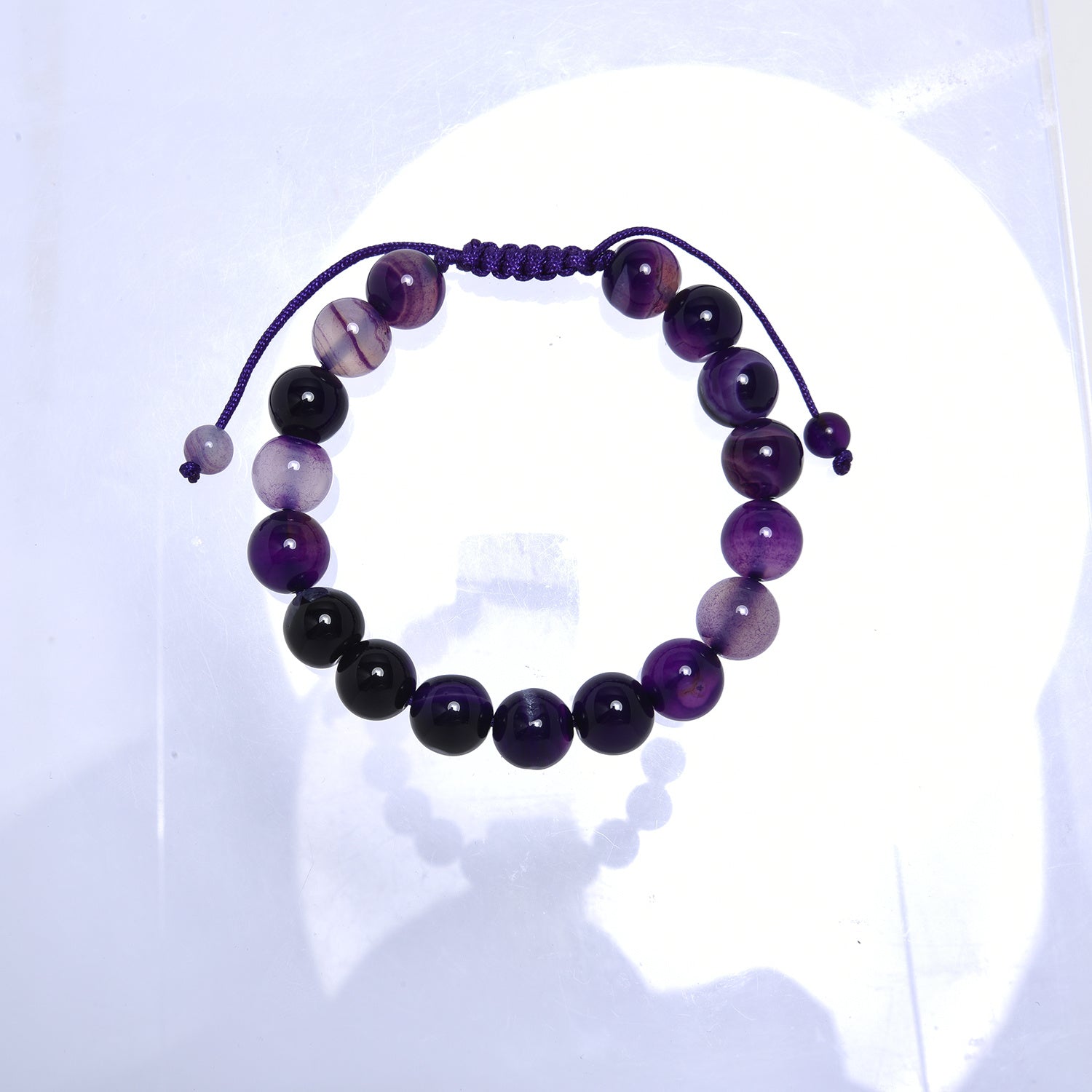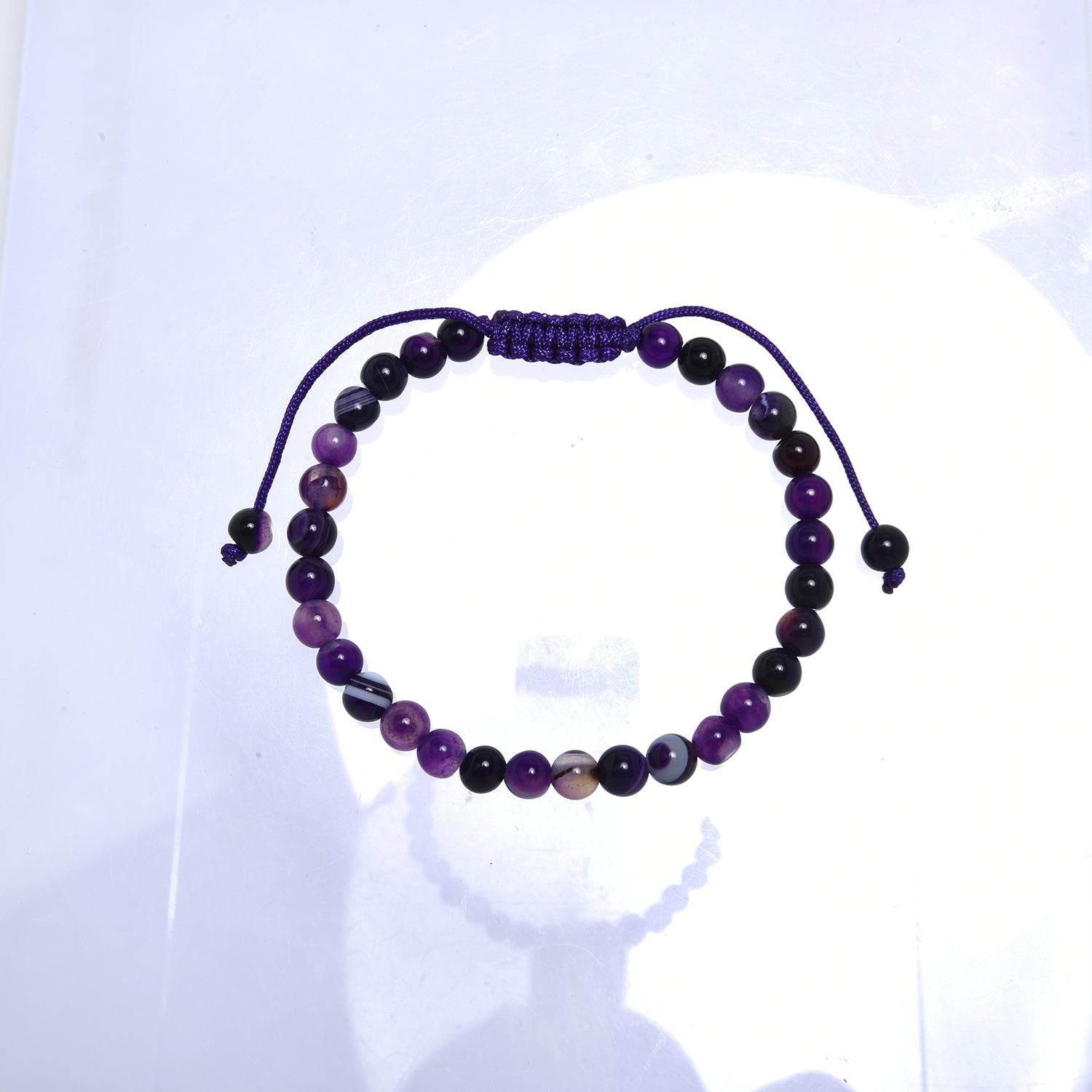 Pulsera trenzada con piedra amatista y dientes de perro B4149