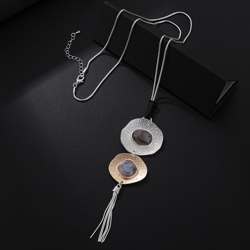 Collar con colgante de resina de aleación y borla ajustable de plata chapada en oro