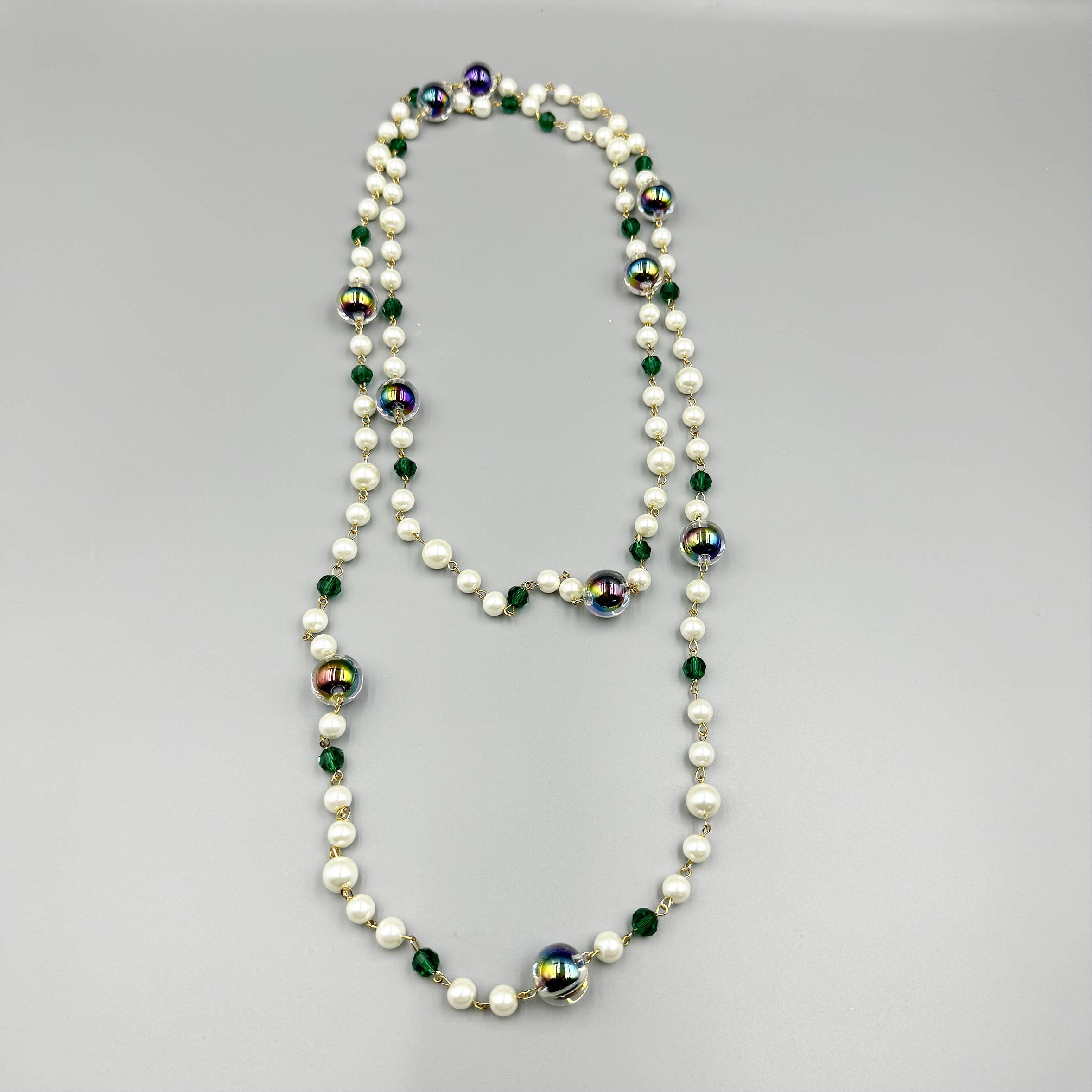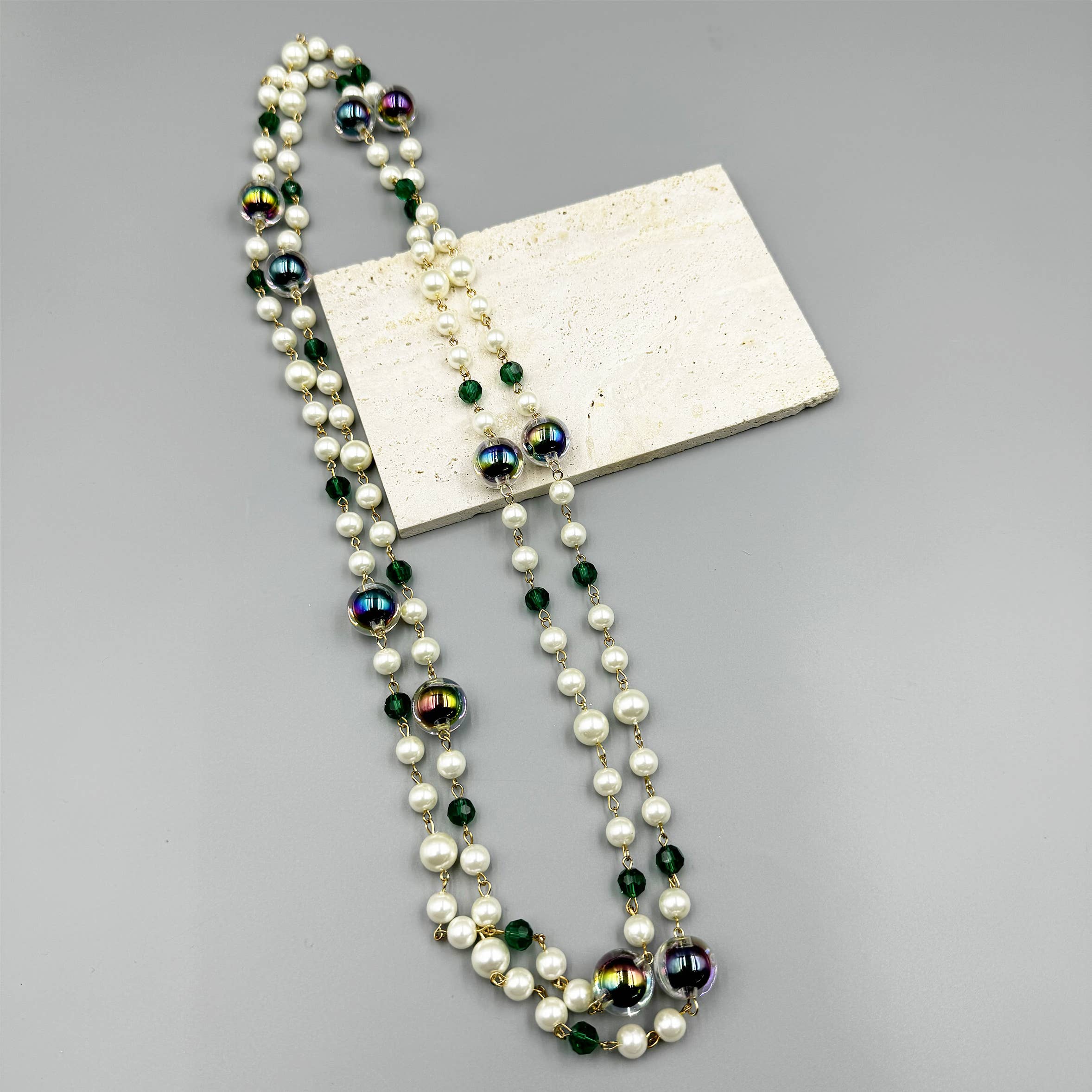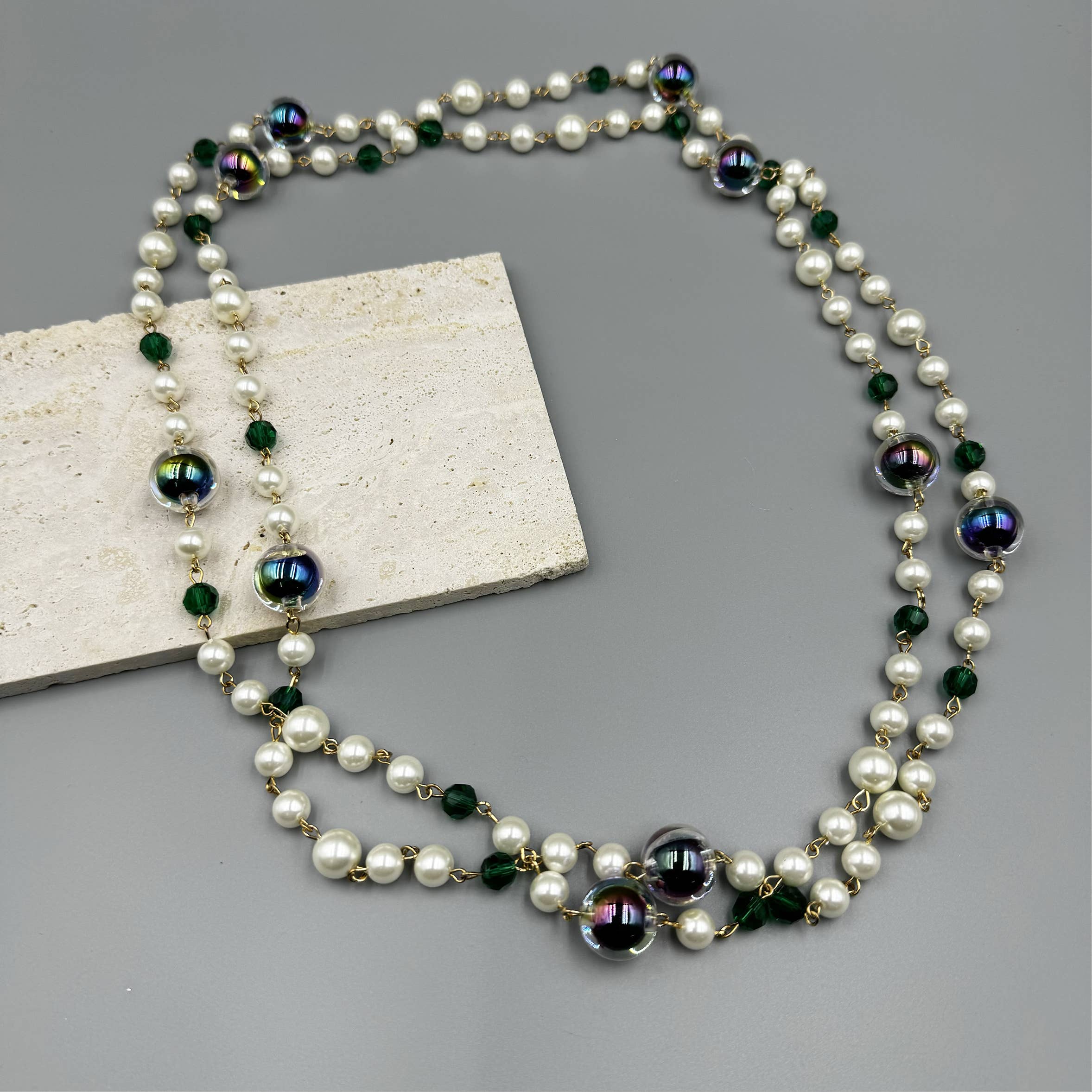 Collar de cadena con múltiples cuentas de perlas de vidrio N5330