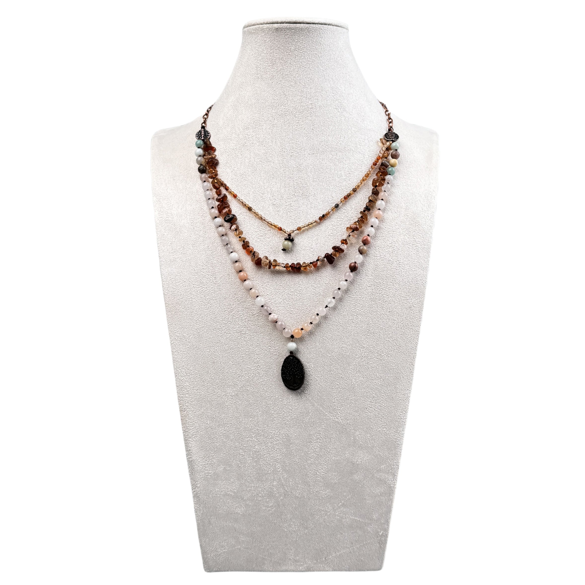 Conjunto de 3 collares largos con cadena de diamantes de imitación N5484