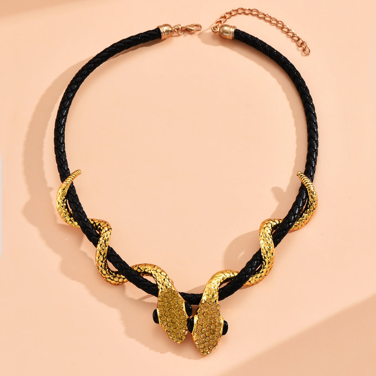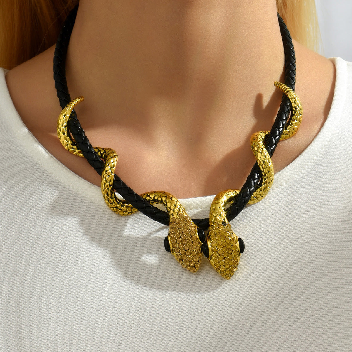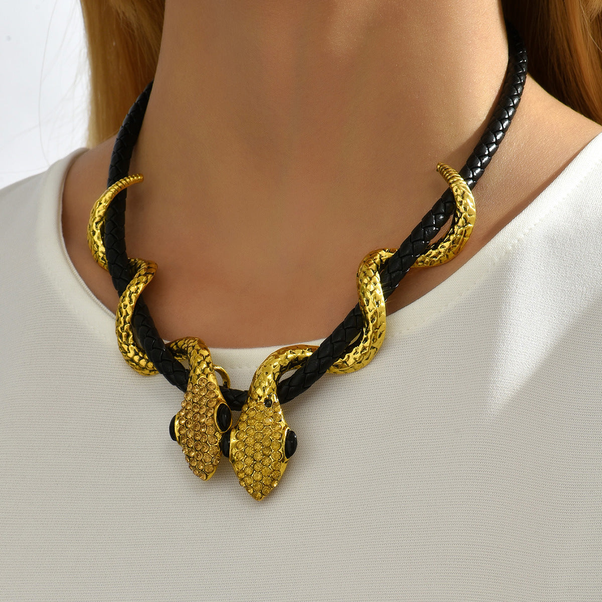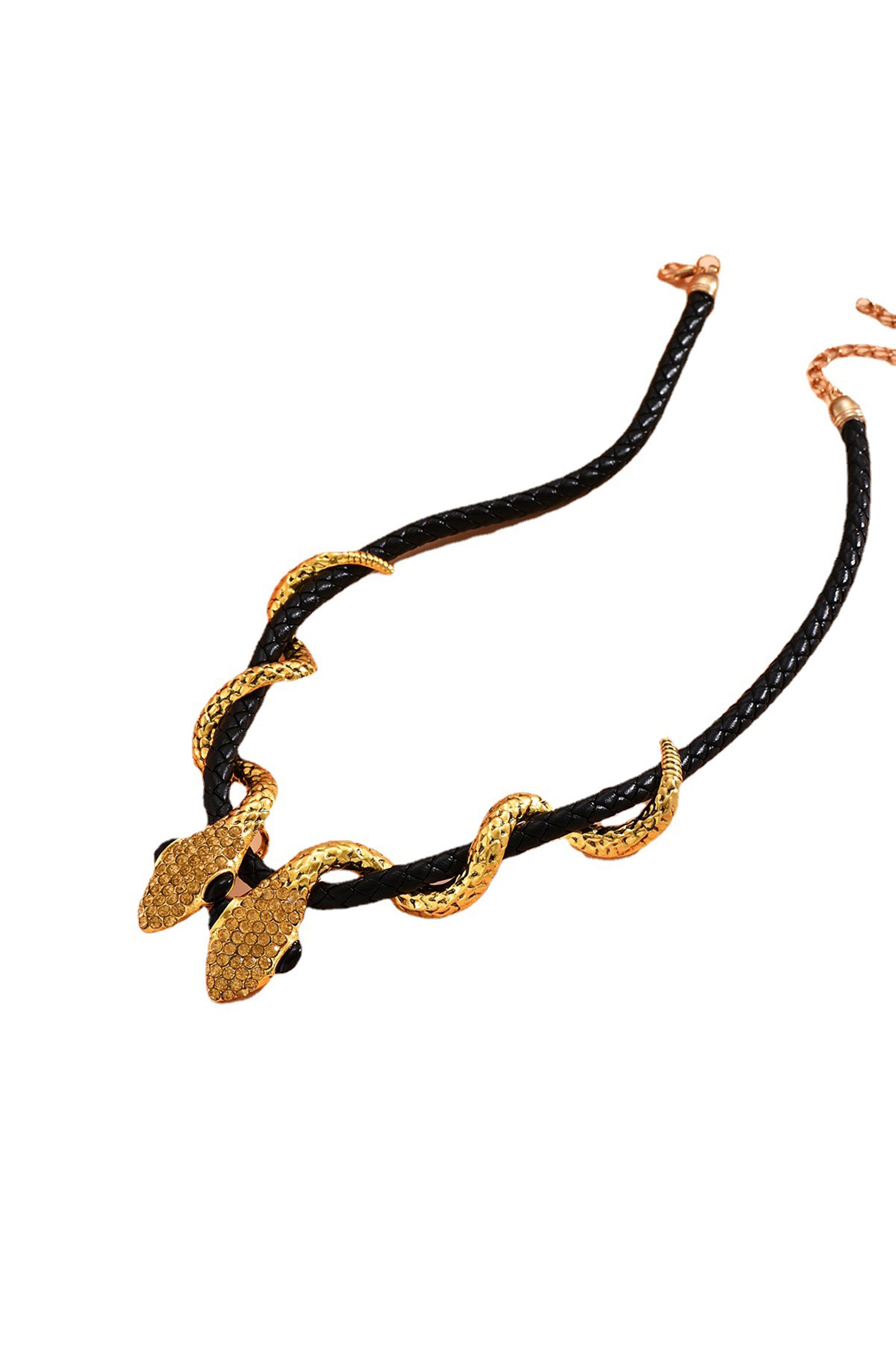 Snake Rhinestone Leather Necklace N4753