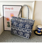 Elephant Rhombus Printed Canvas Tote Bag HB2049