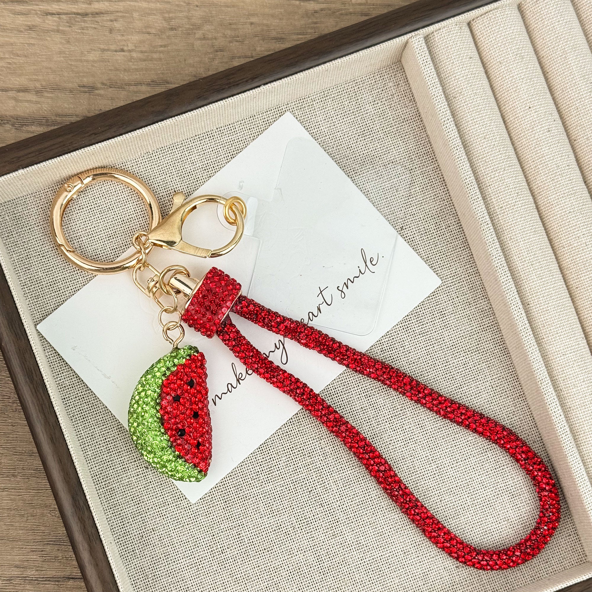 Watermelon Rhinestone Alloy Keychain Wristlet K1435