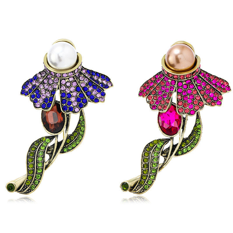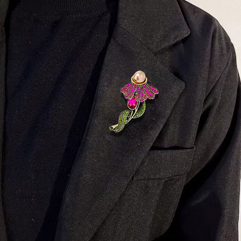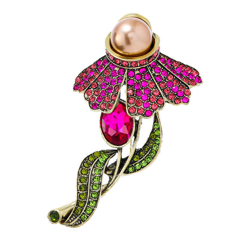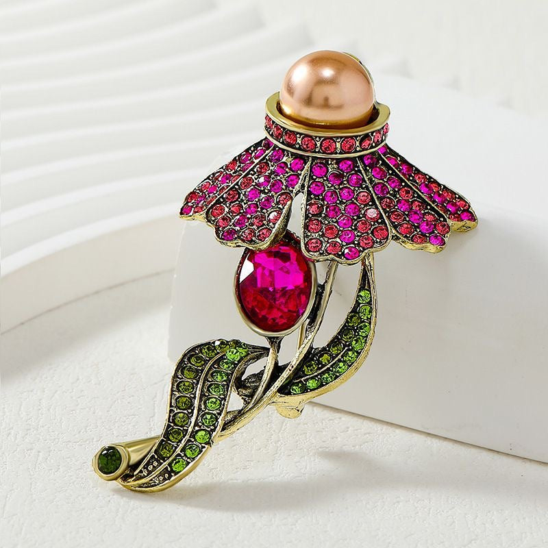 Rose Rhinestone Alloy Brooch PA5675
