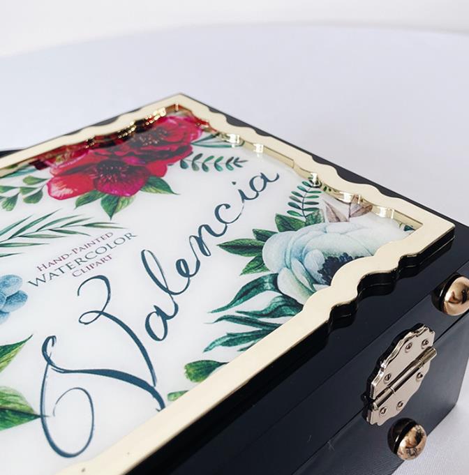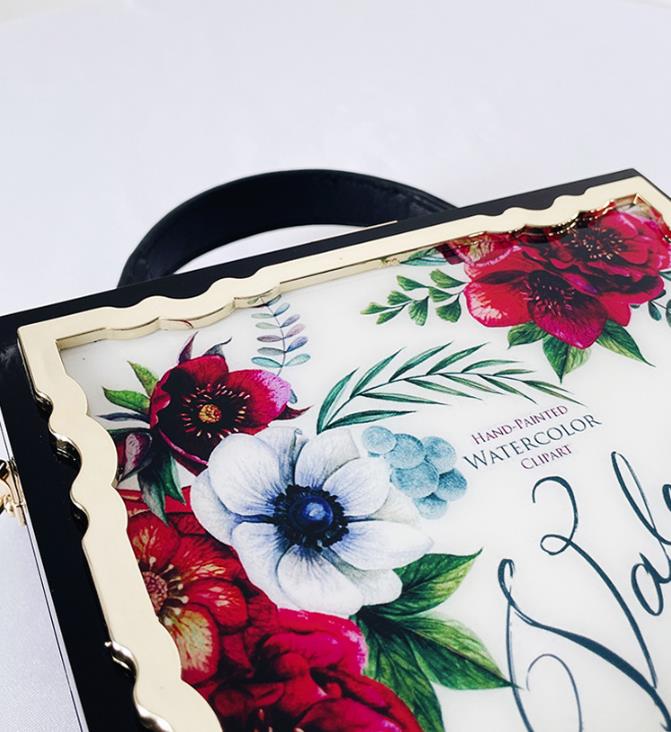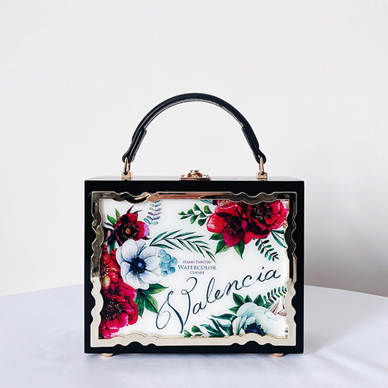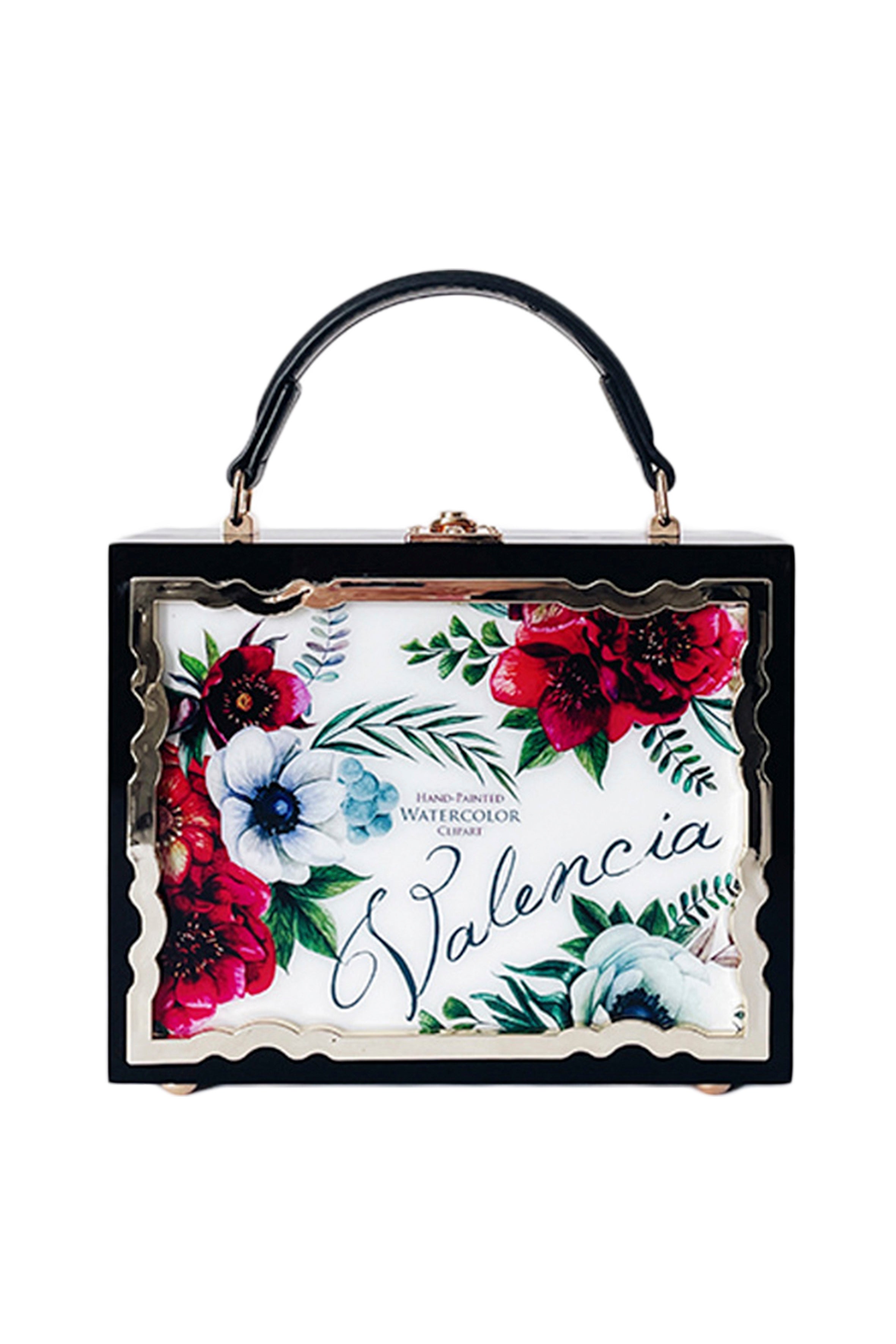 Bolso de mano de piel sintética con estampado floral cuadrado HB2297