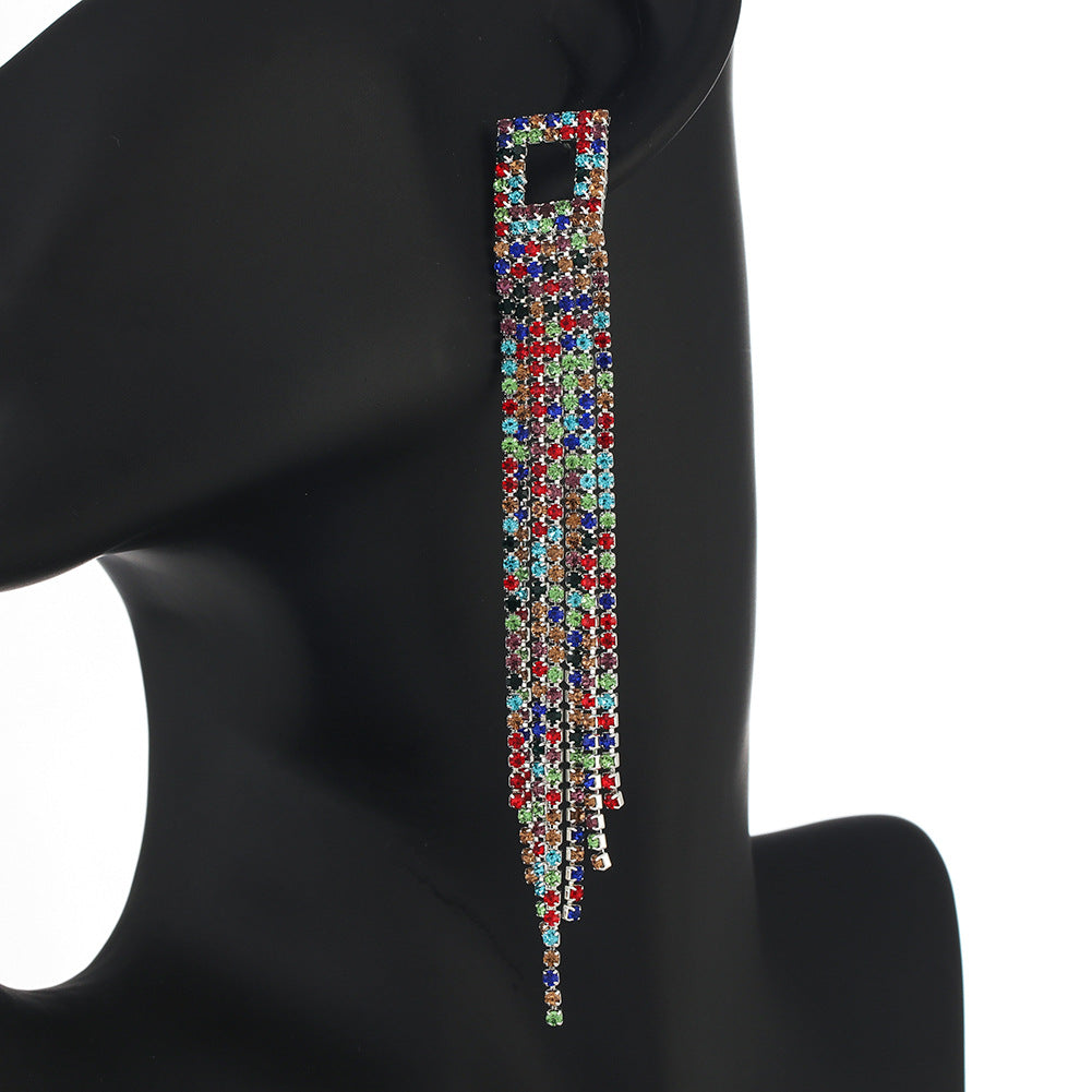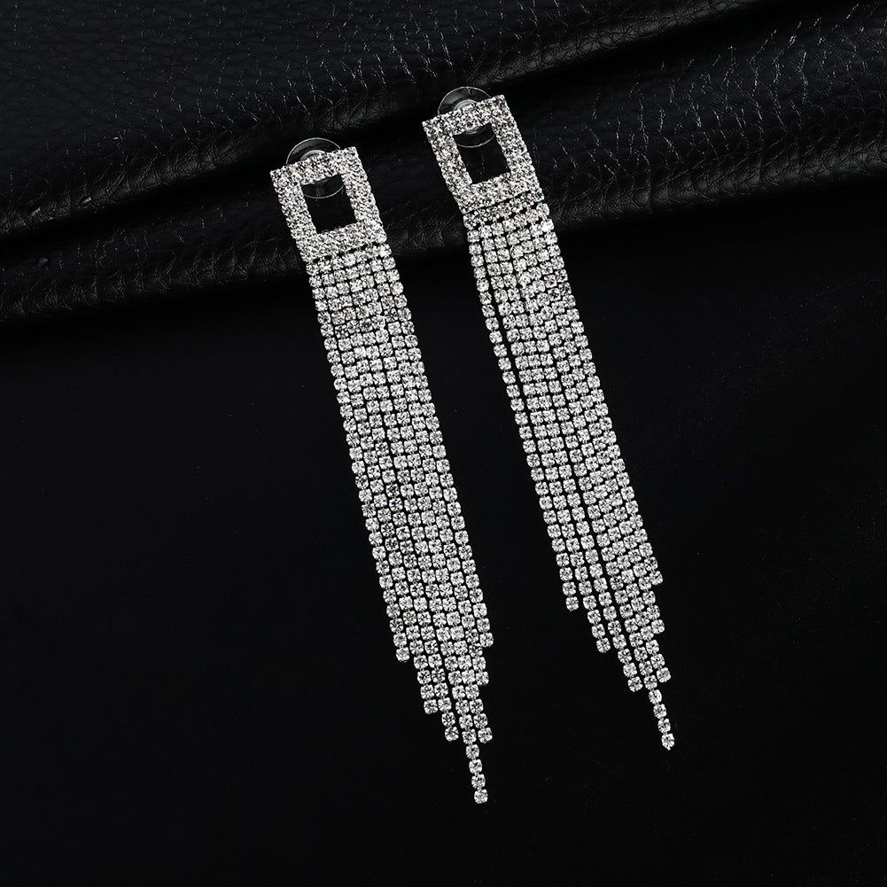 Pendientes con borlas y diamantes de imitación en forma de cruz E7305