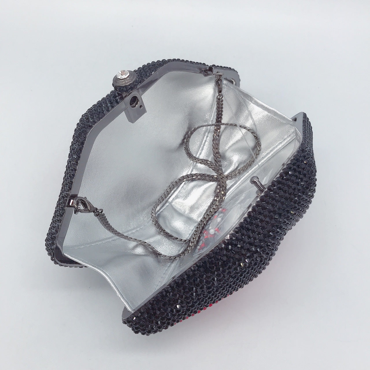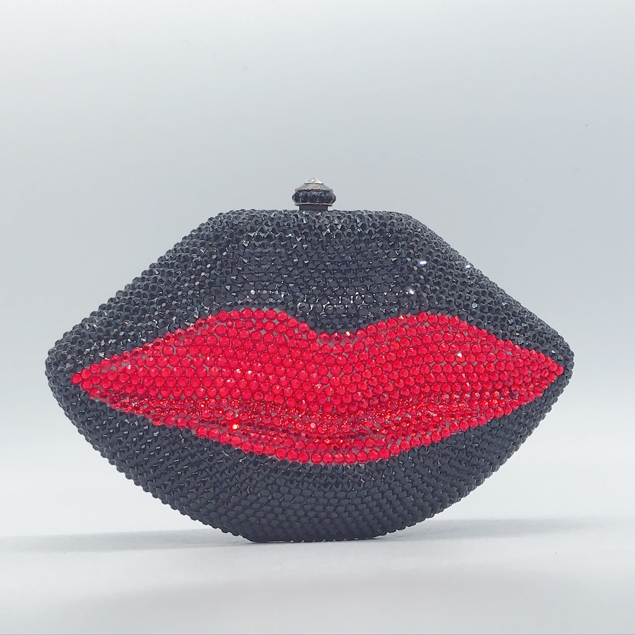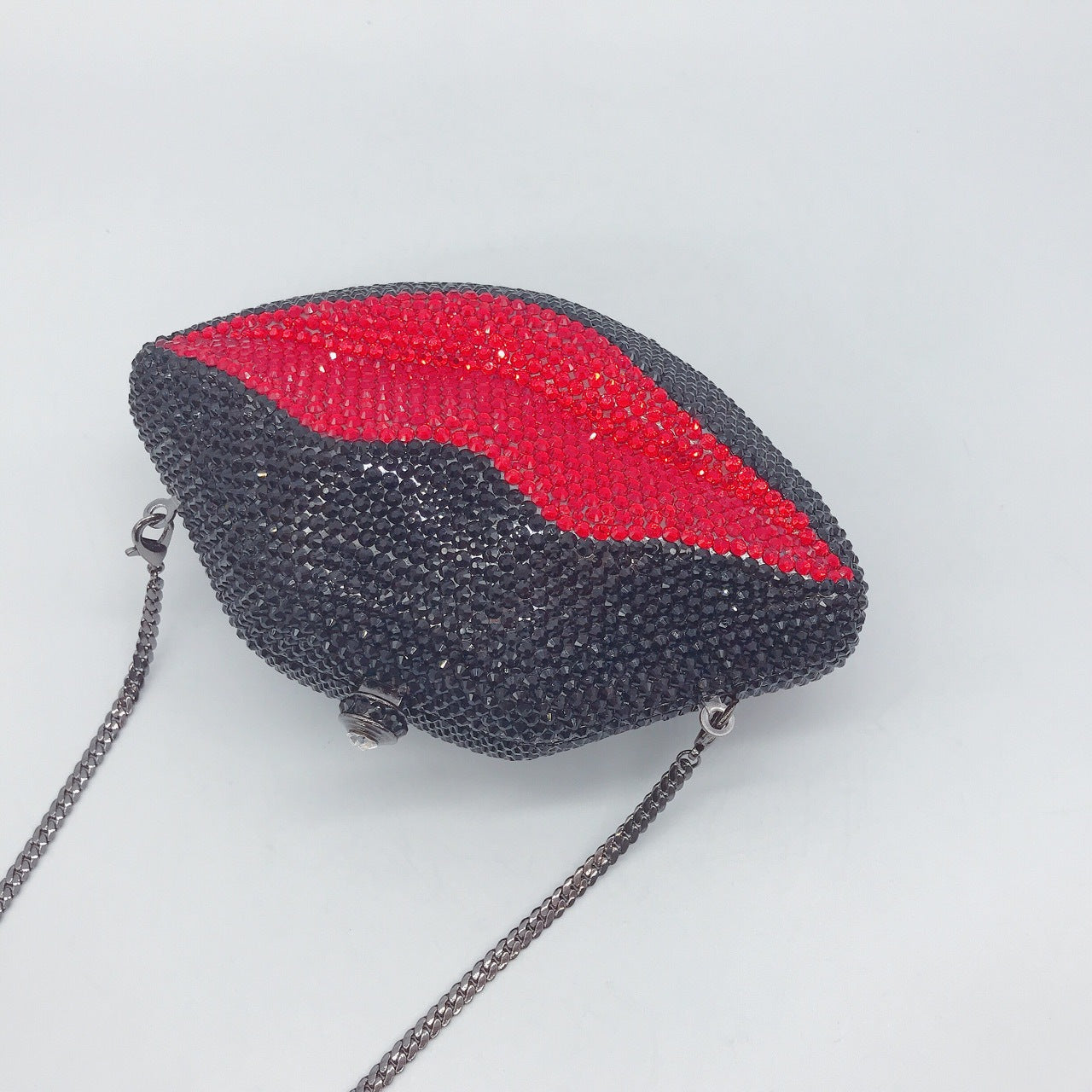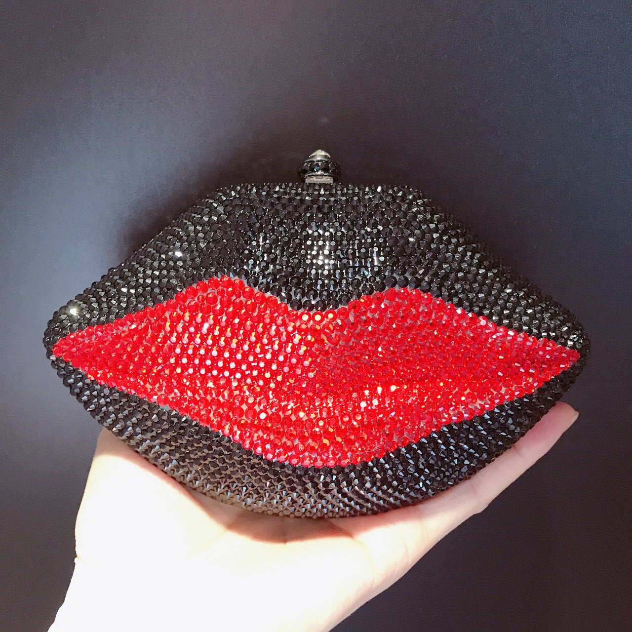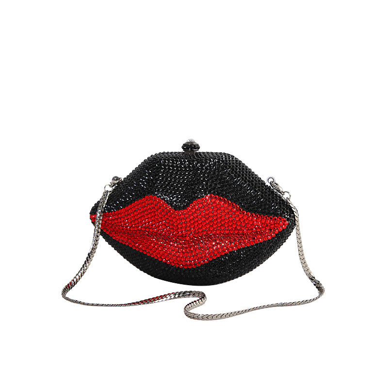 Bolso de noche con diamantes de imitación y pintalabios rojos HB1572