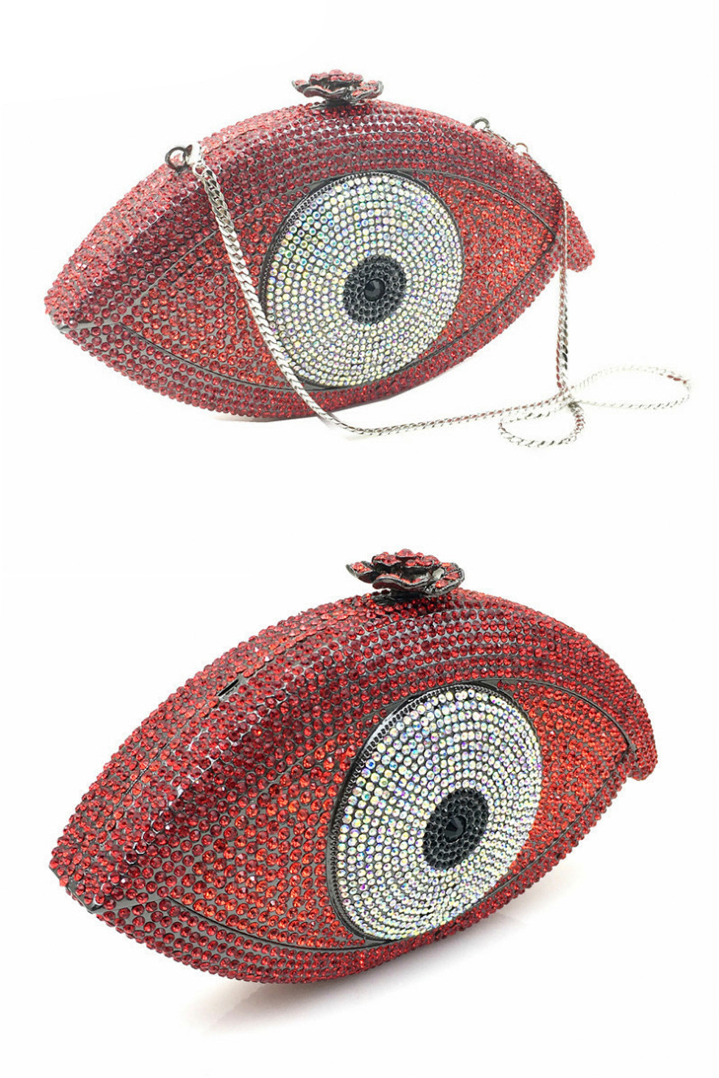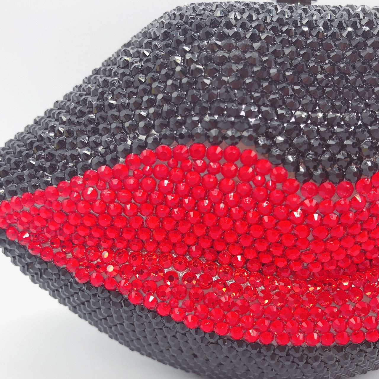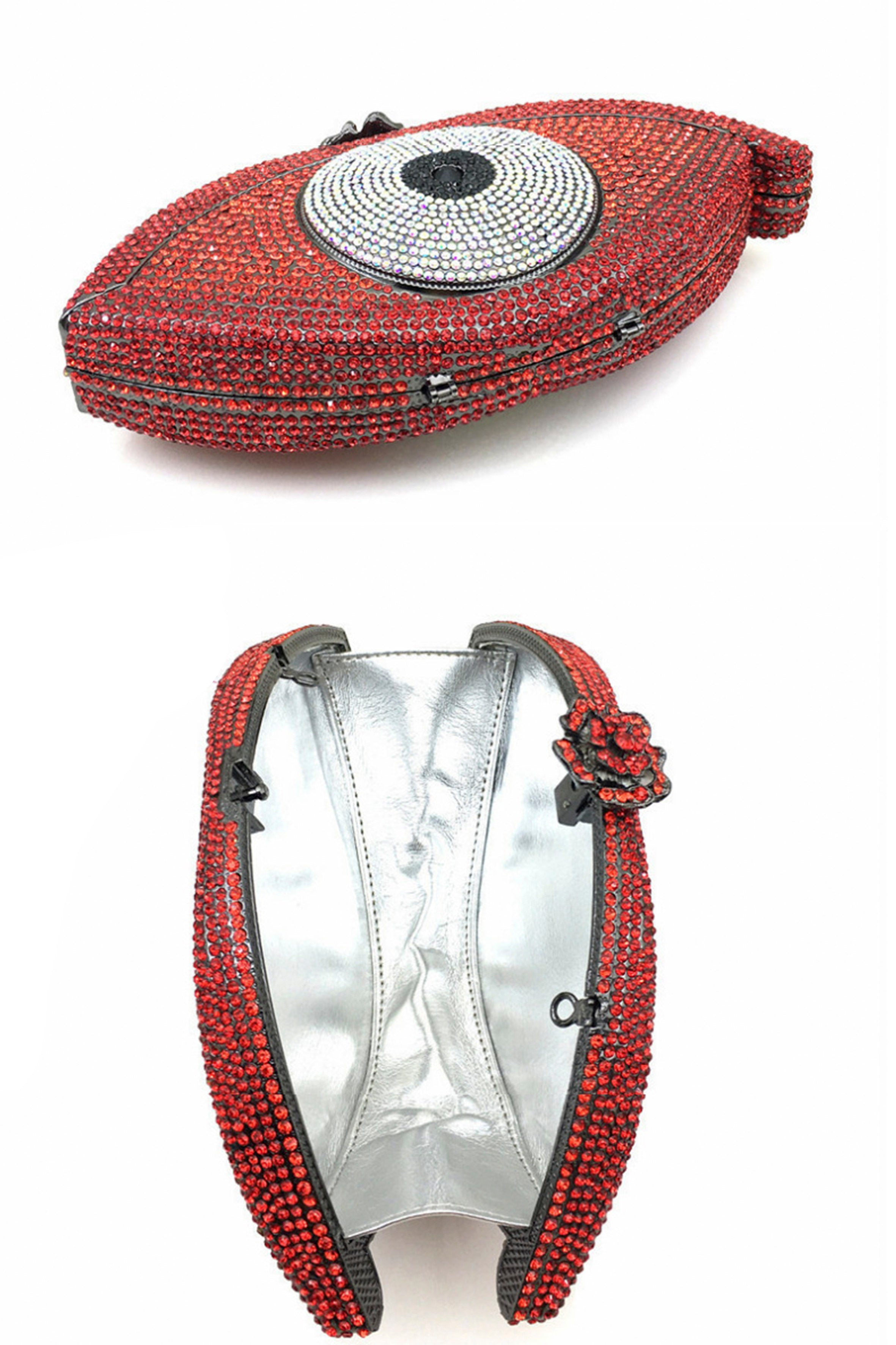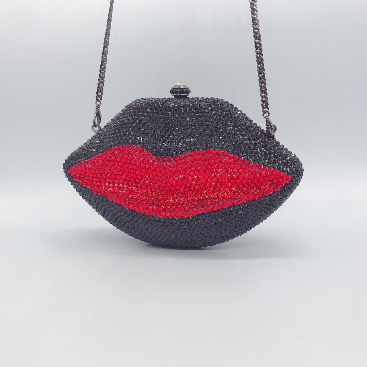 Bolso de noche con diamantes de imitación y pintalabios rojos HB1572