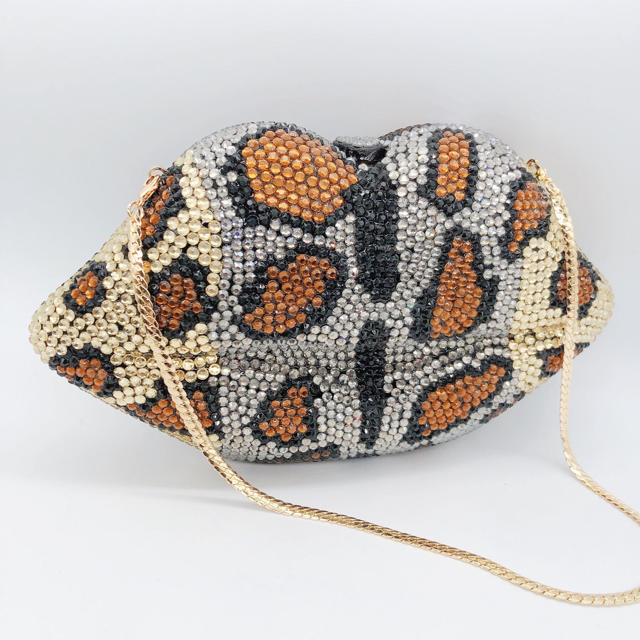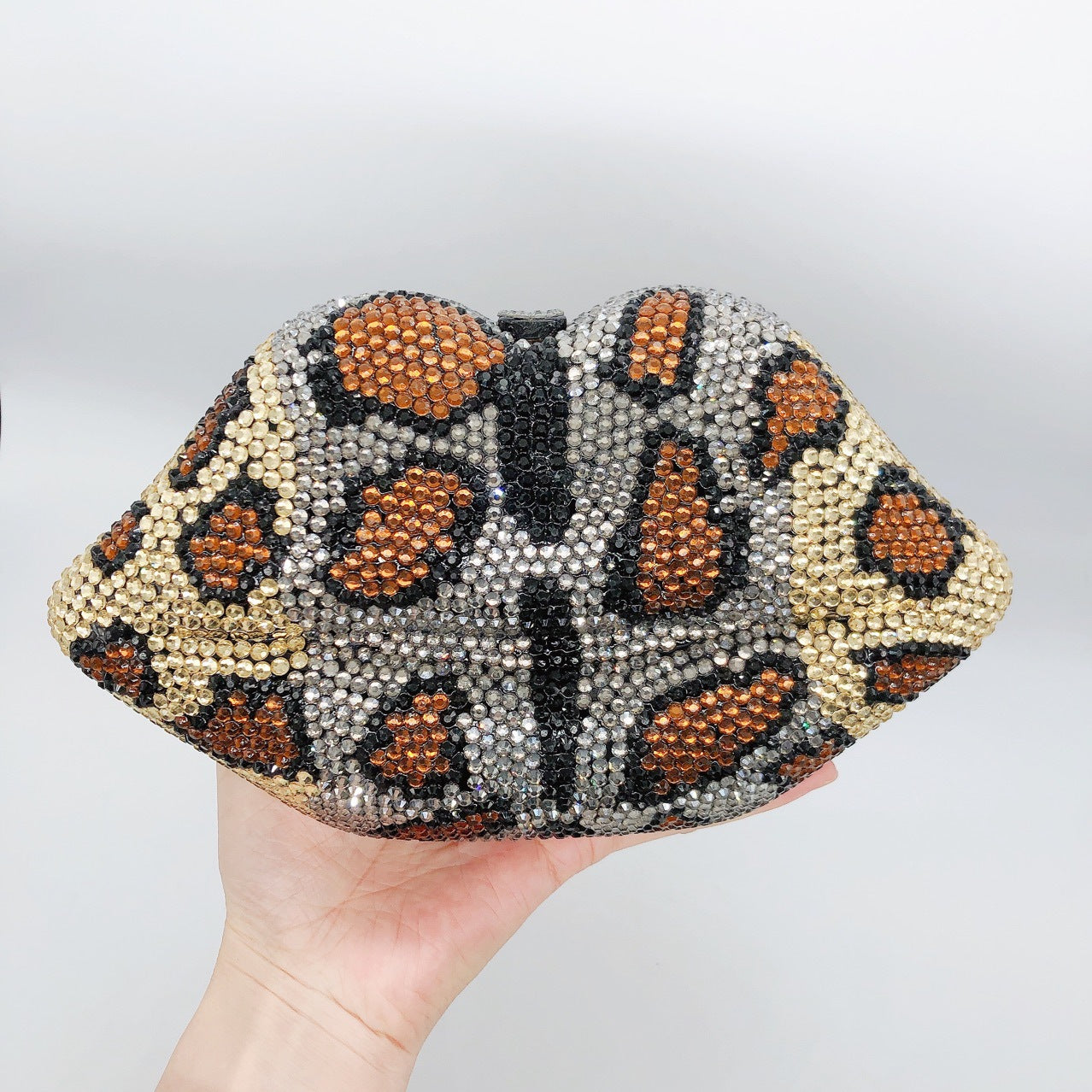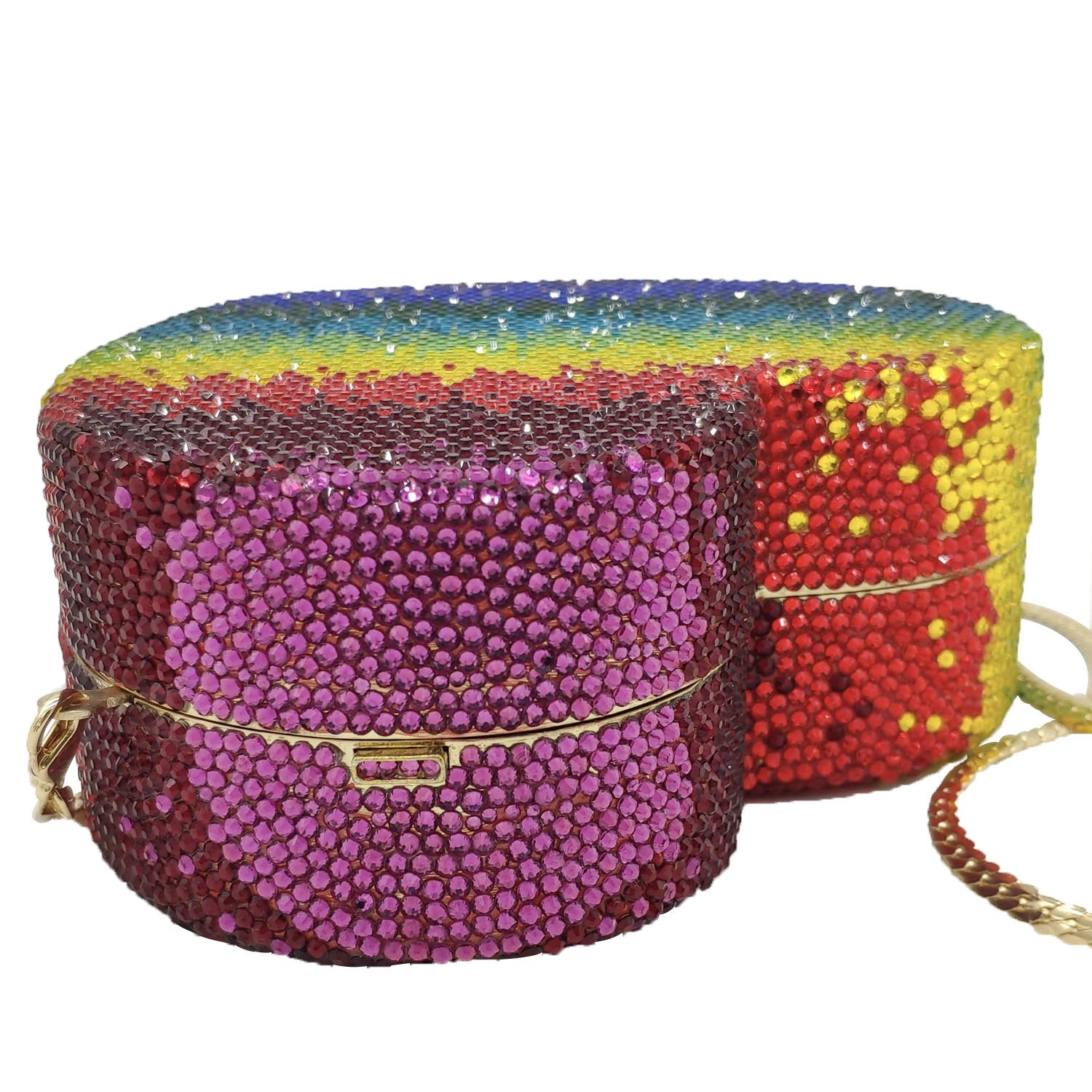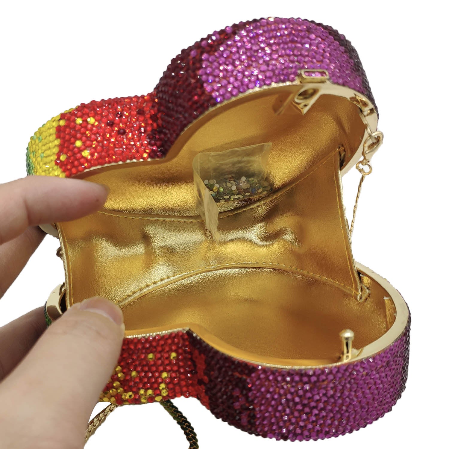 Bolso de noche con diamantes de imitación y pintalabios rojos HB1572