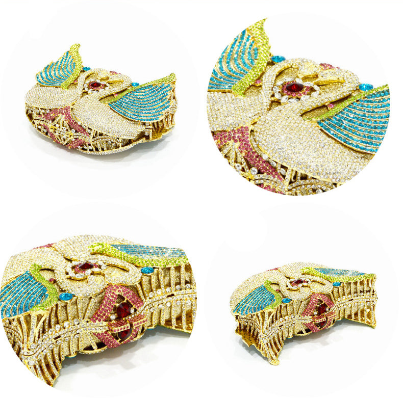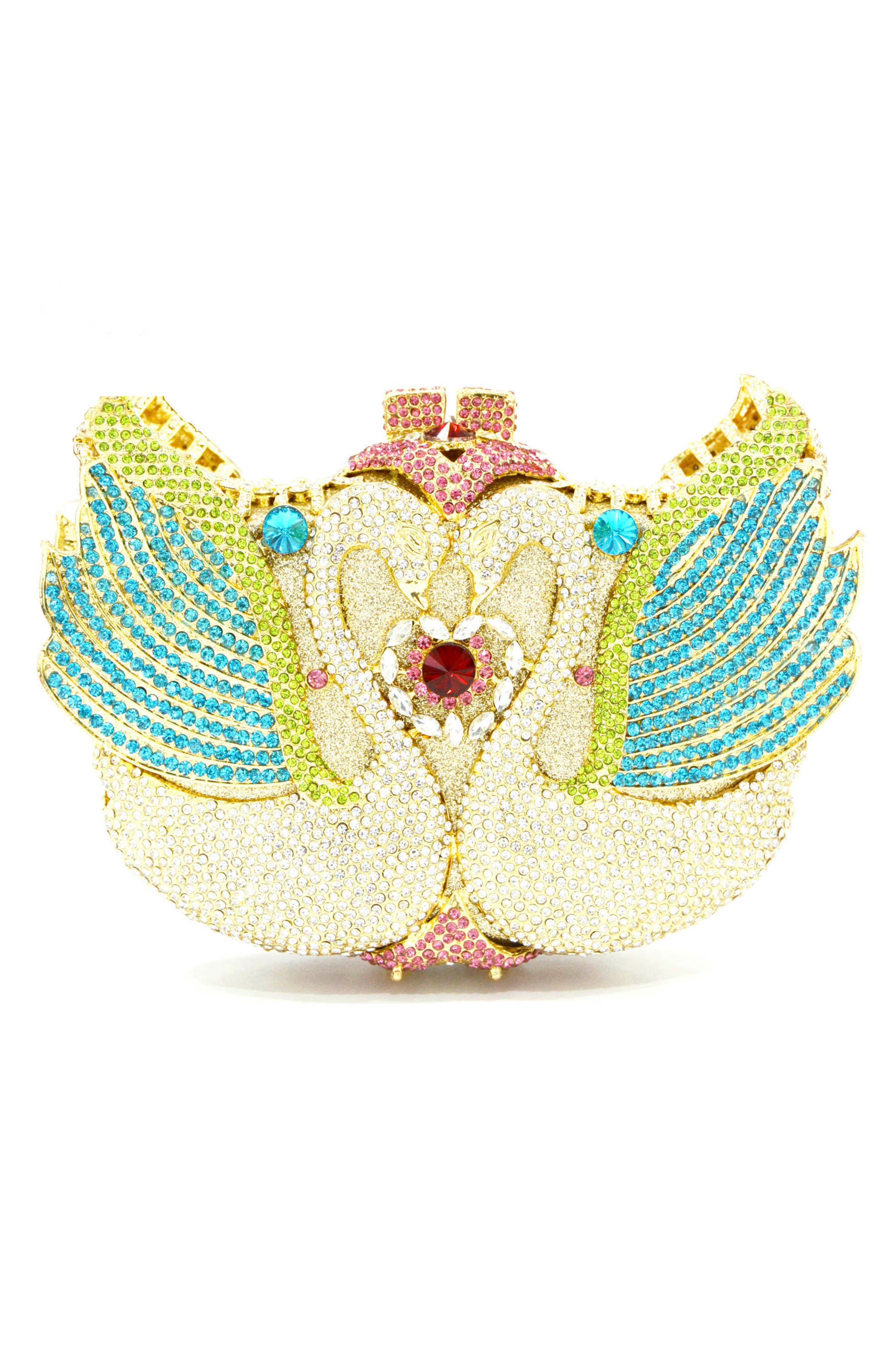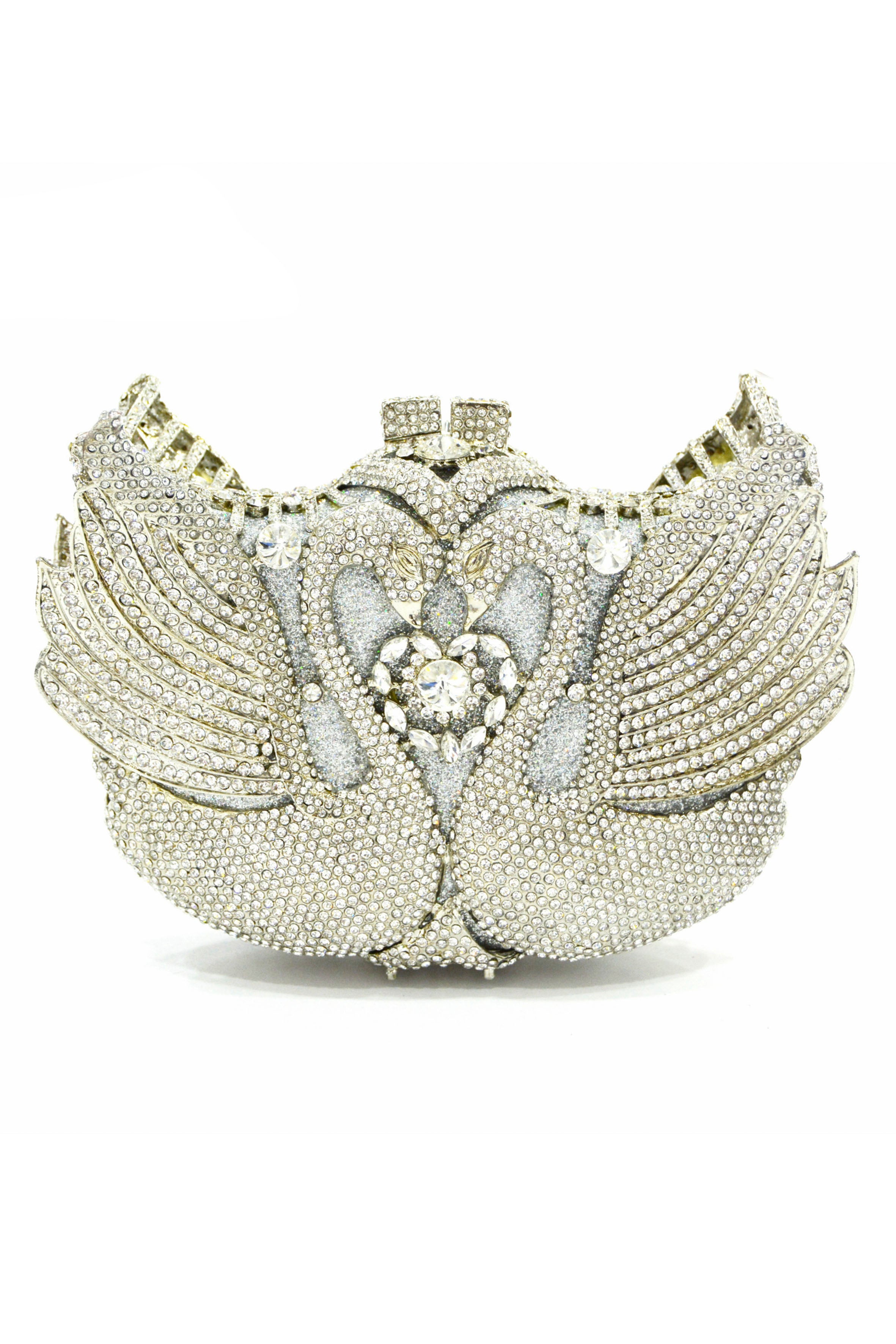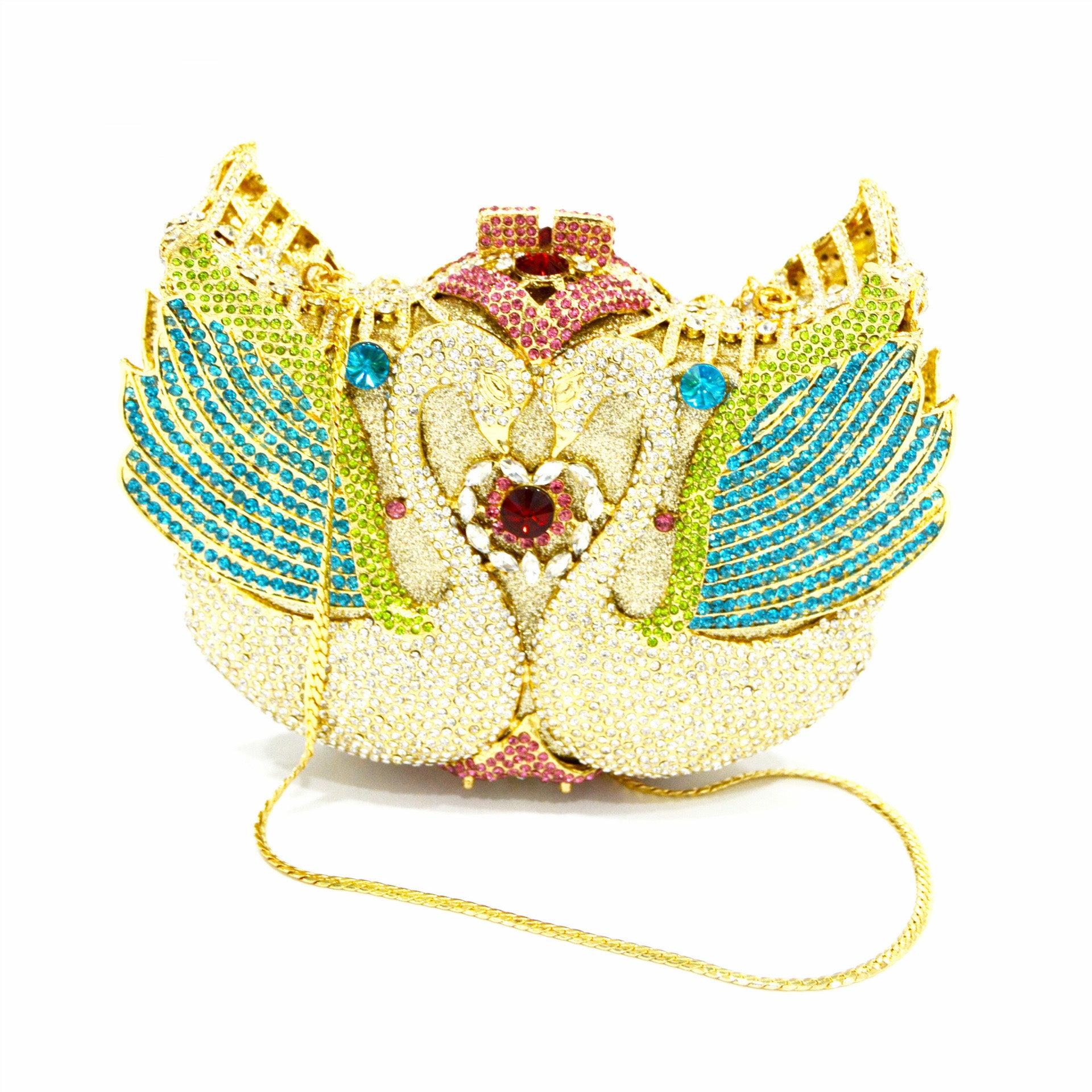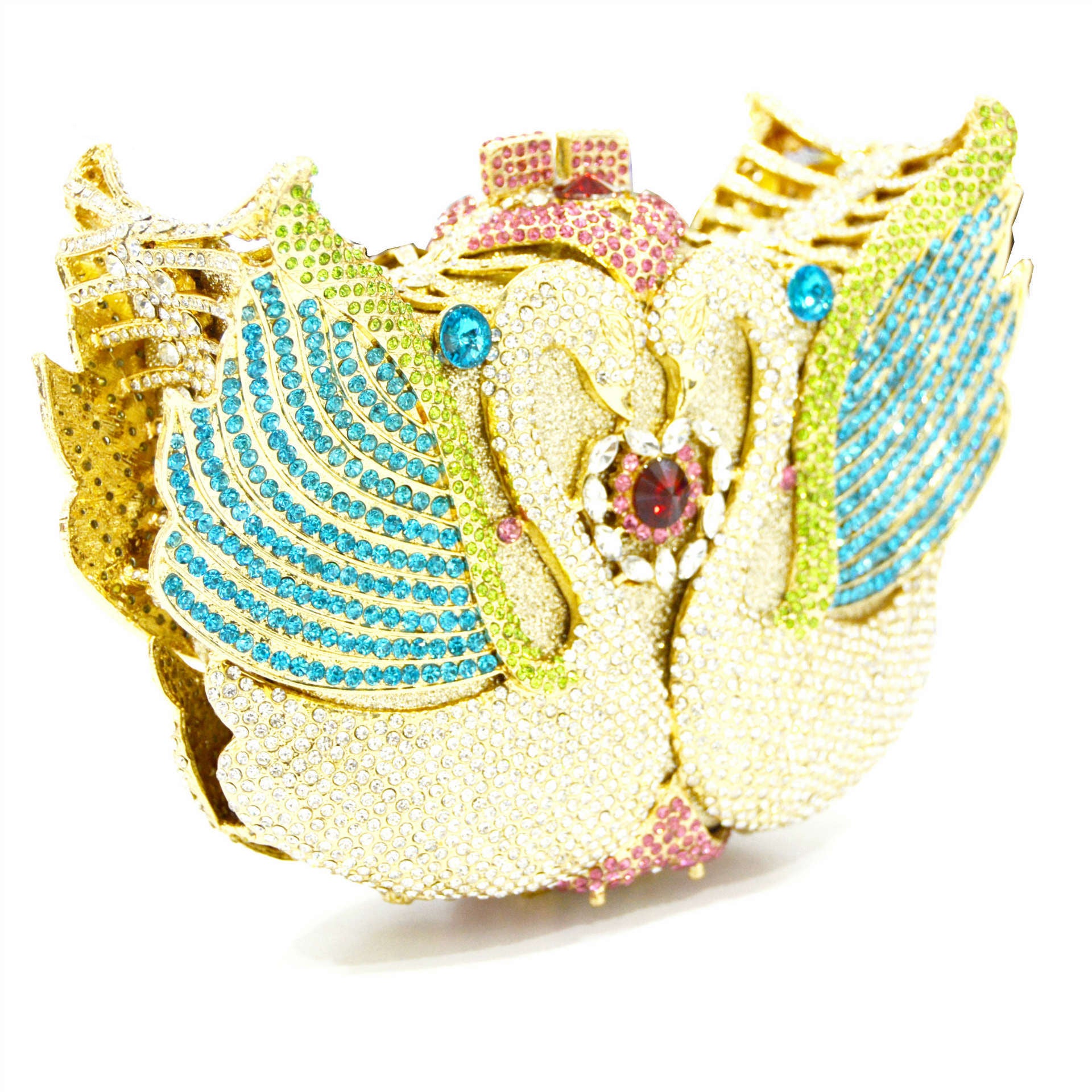 Bolsos de noche con diamantes de imitación y forma de cisne HB0980