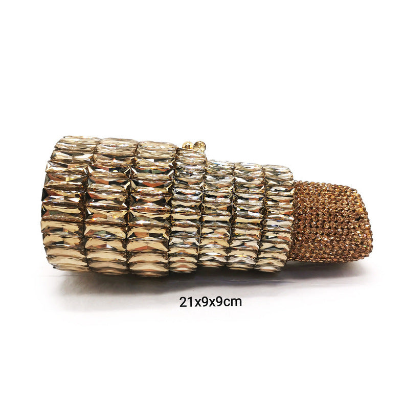 Bolso de noche con diamantes de imitación y forma de lápiz labial HB1727